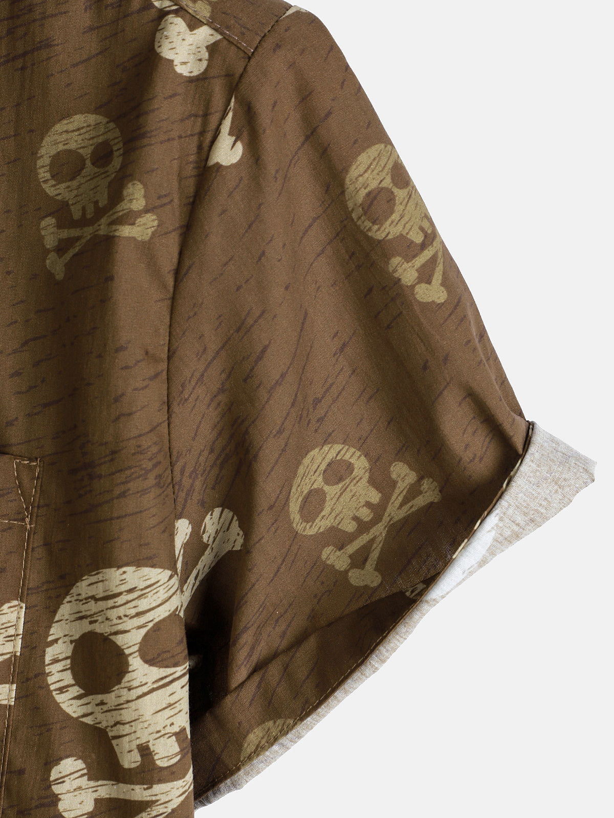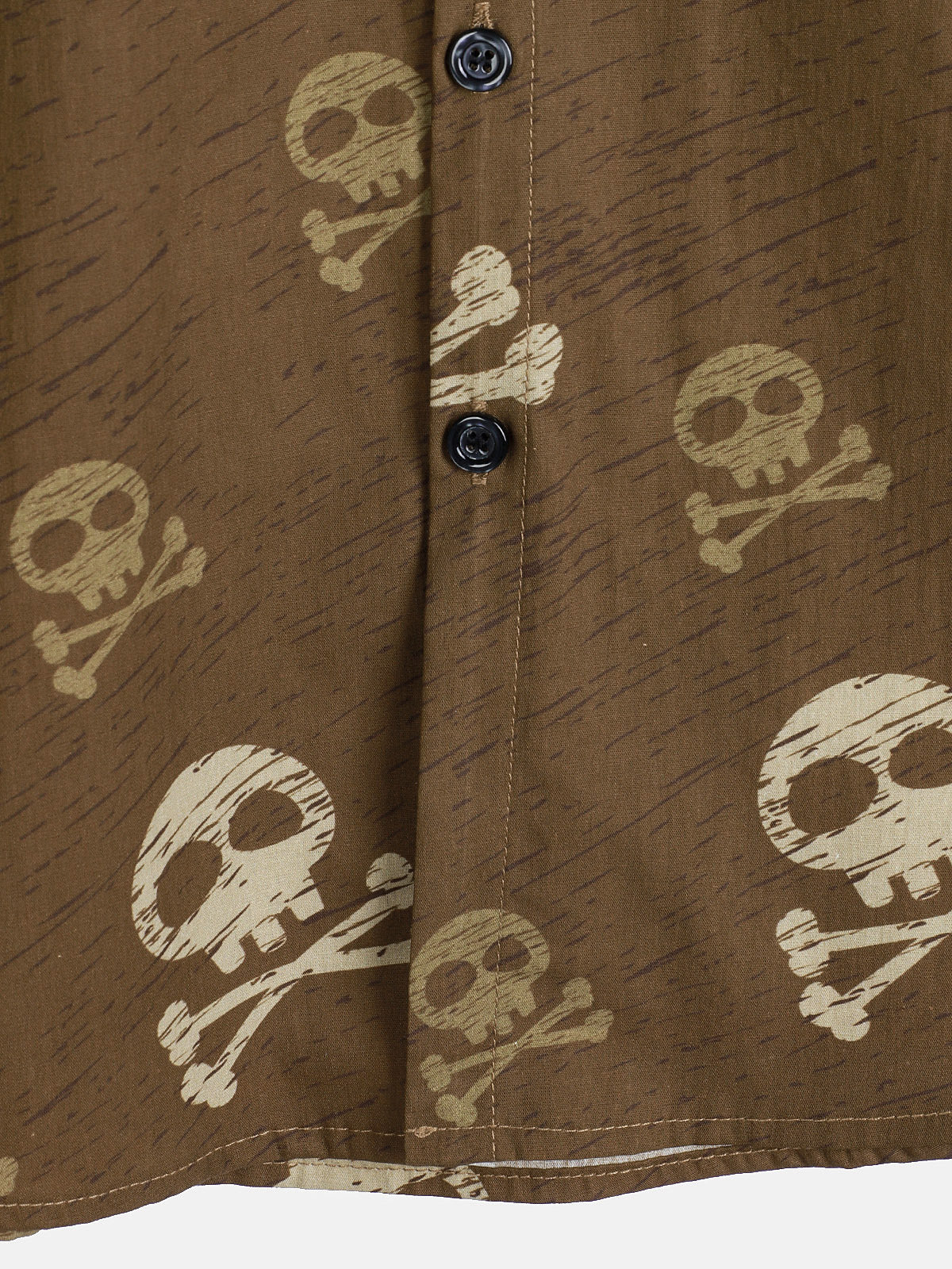 Men's Skull Brown Hawaiian Holiday Cool Short Sleeve Shirt