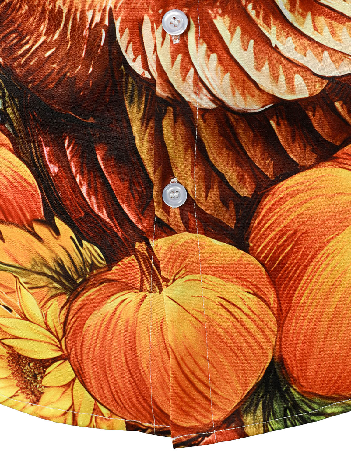 Men's Thanksgiving Day Party Turkey Pumpkin Button Long Sleeve Shirt