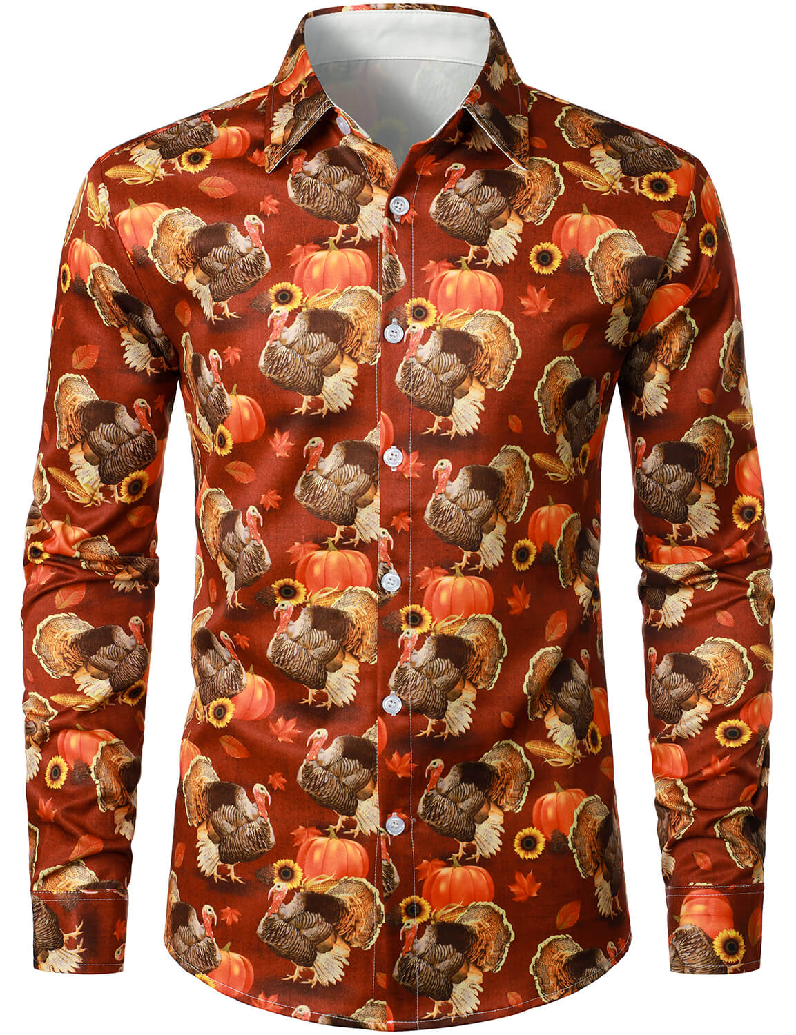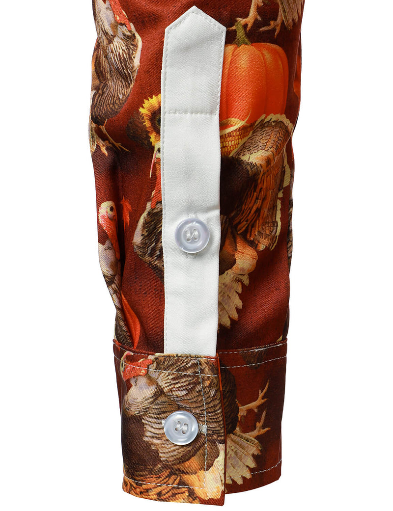 Men's Thanksgiving Gift Funny Turkey Holiday Button Long Sleeve Shirt