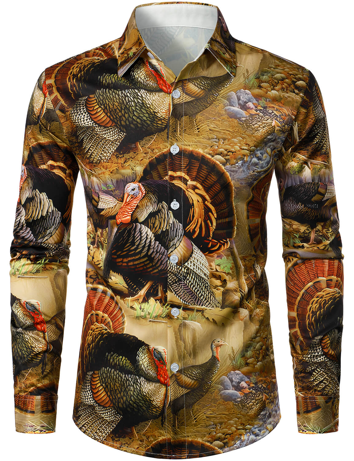Men's Turkey Thanksgiving Festival Animal Holiday Button Up Long Sleeve Shirt