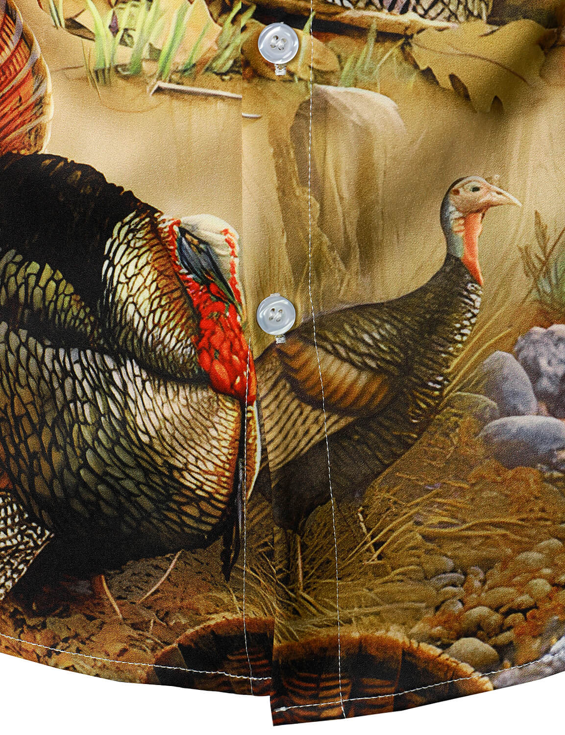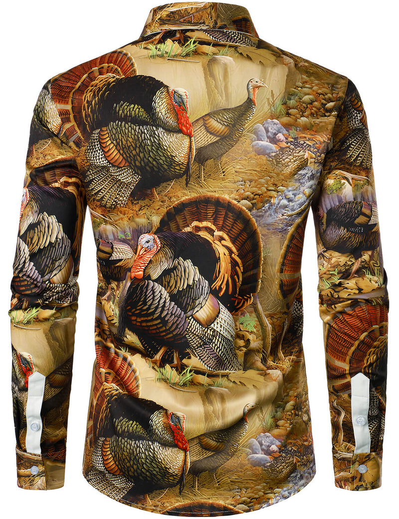 Men's Turkey Thanksgiving Festival Animal Holiday Button Up Long Sleeve Shirt