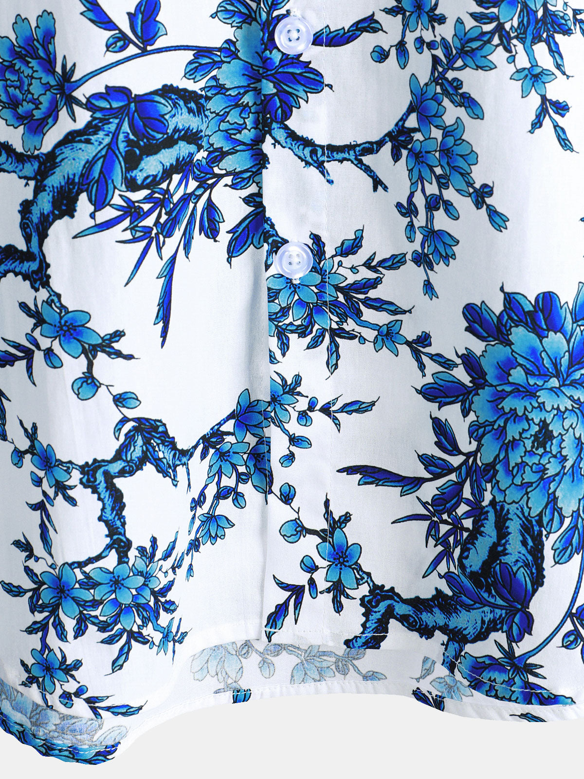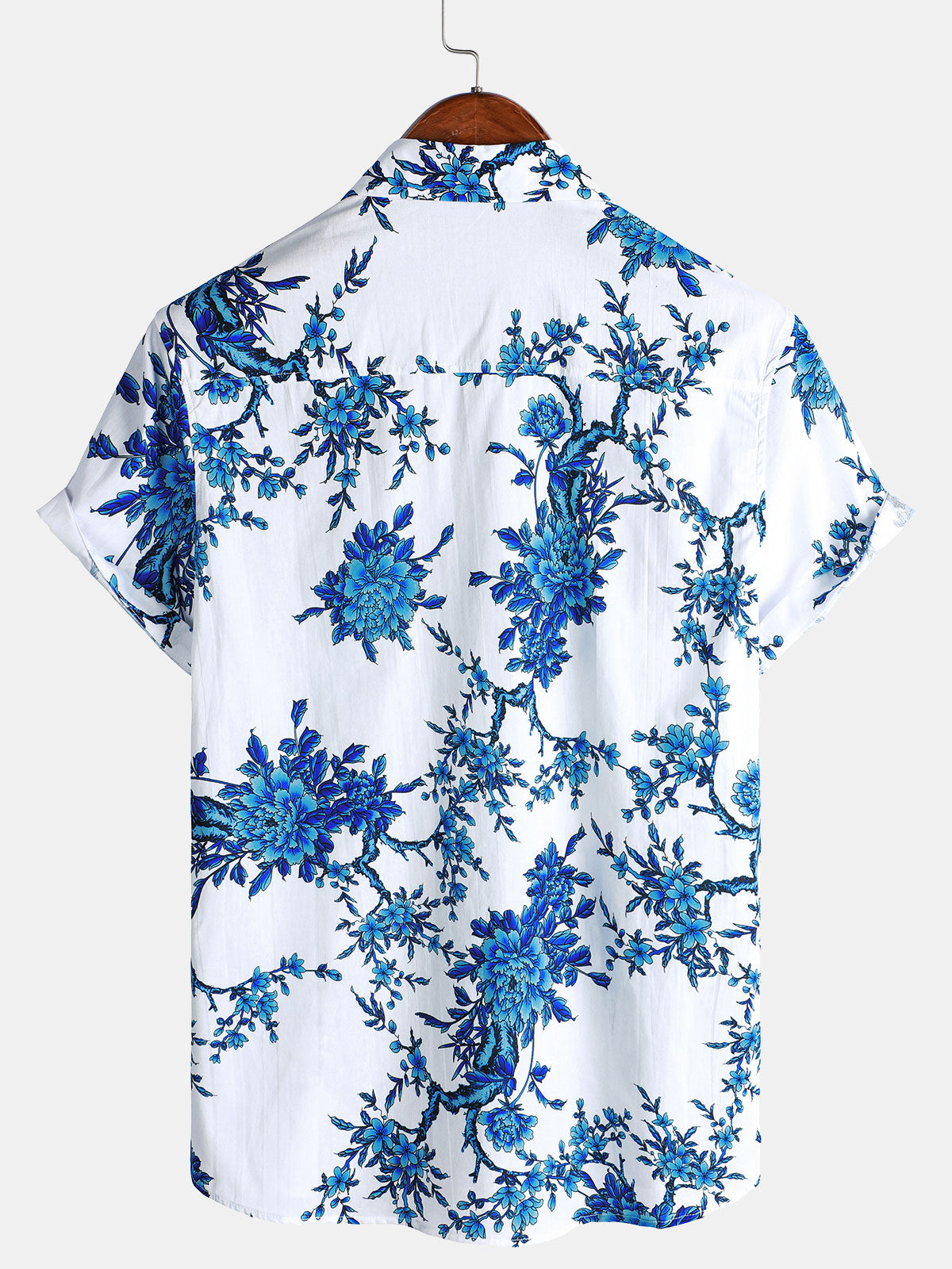 Men's Blue Blossom Holiday Cotton Short Sleeve Shirt