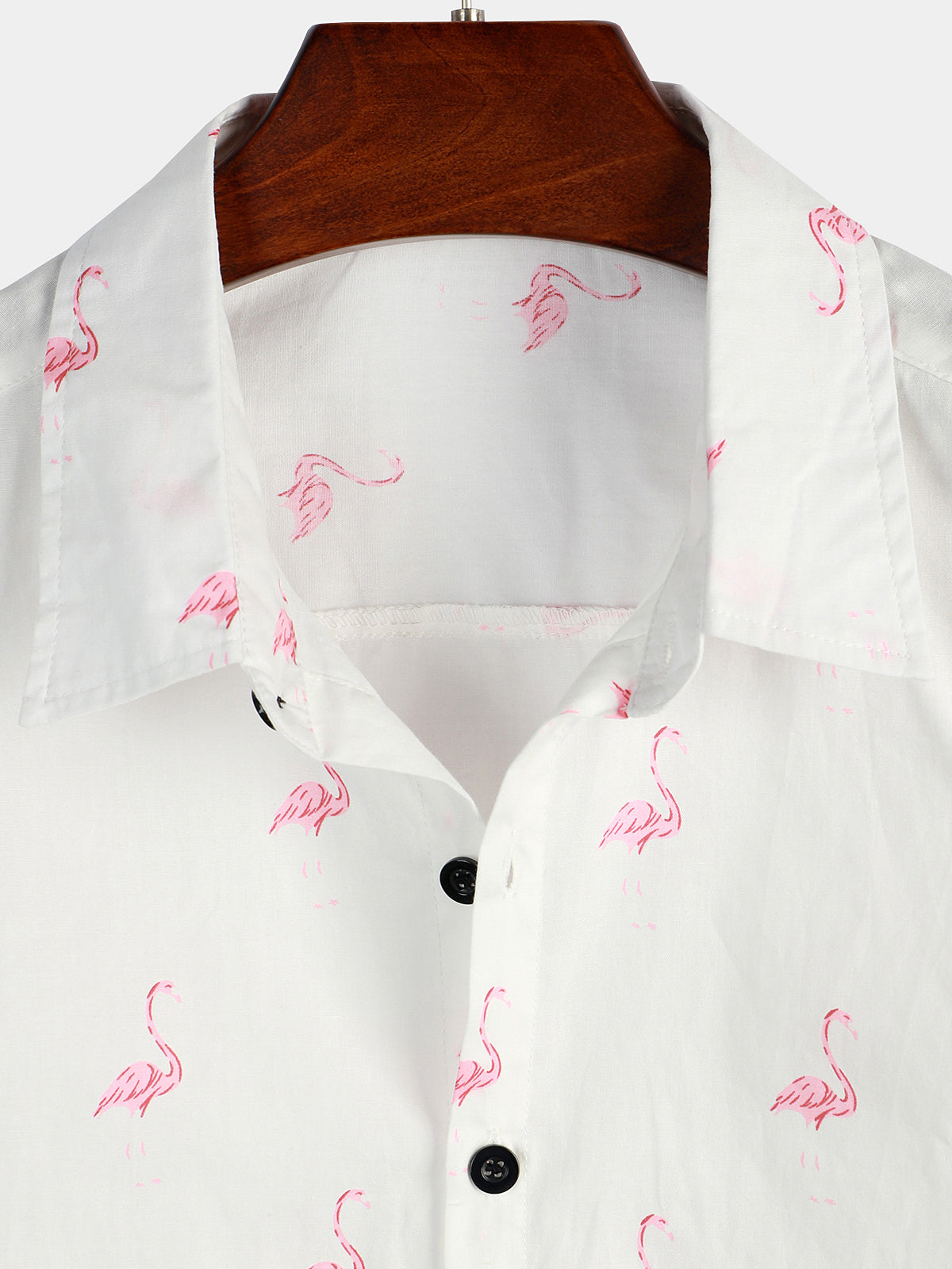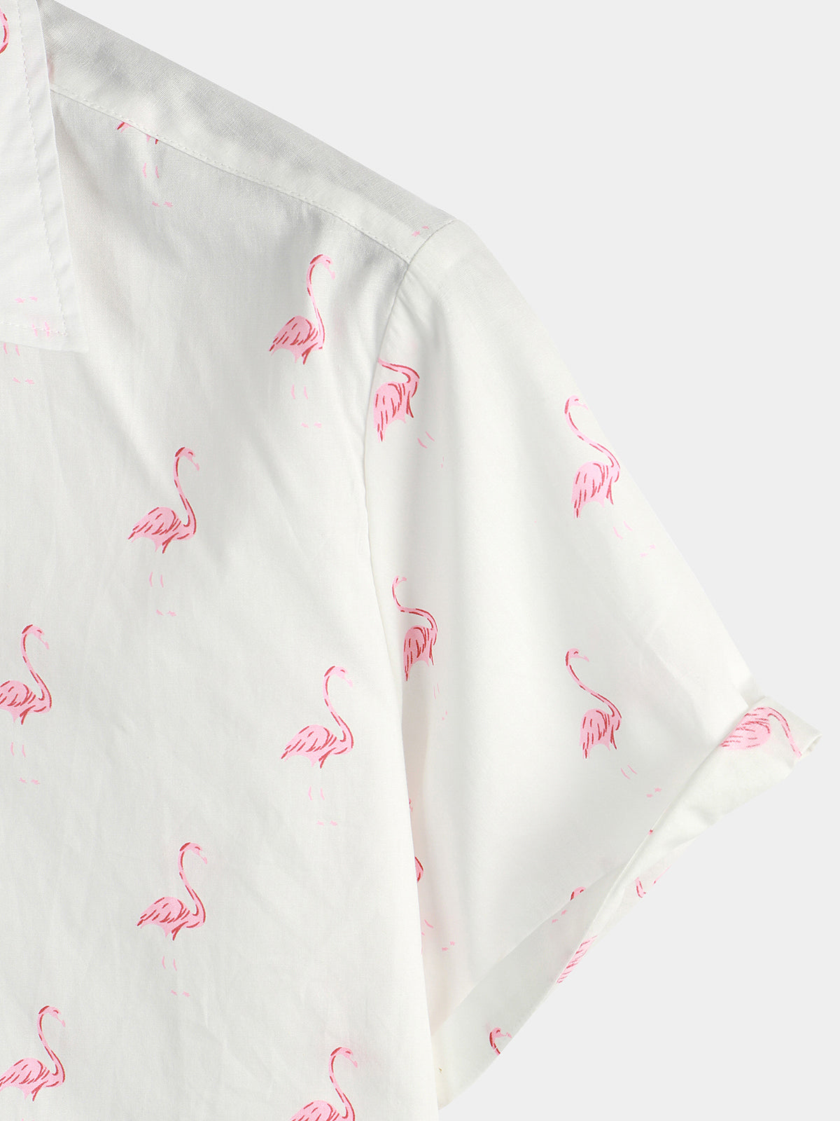 Men's Pink Flamingo Print Short Sleeve Button Up Shirt