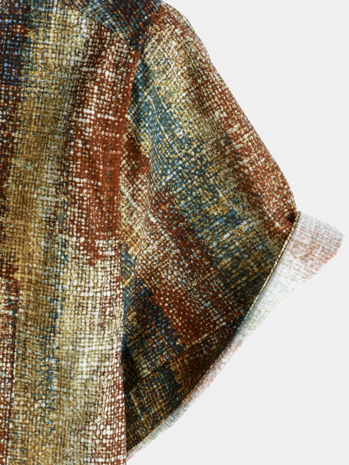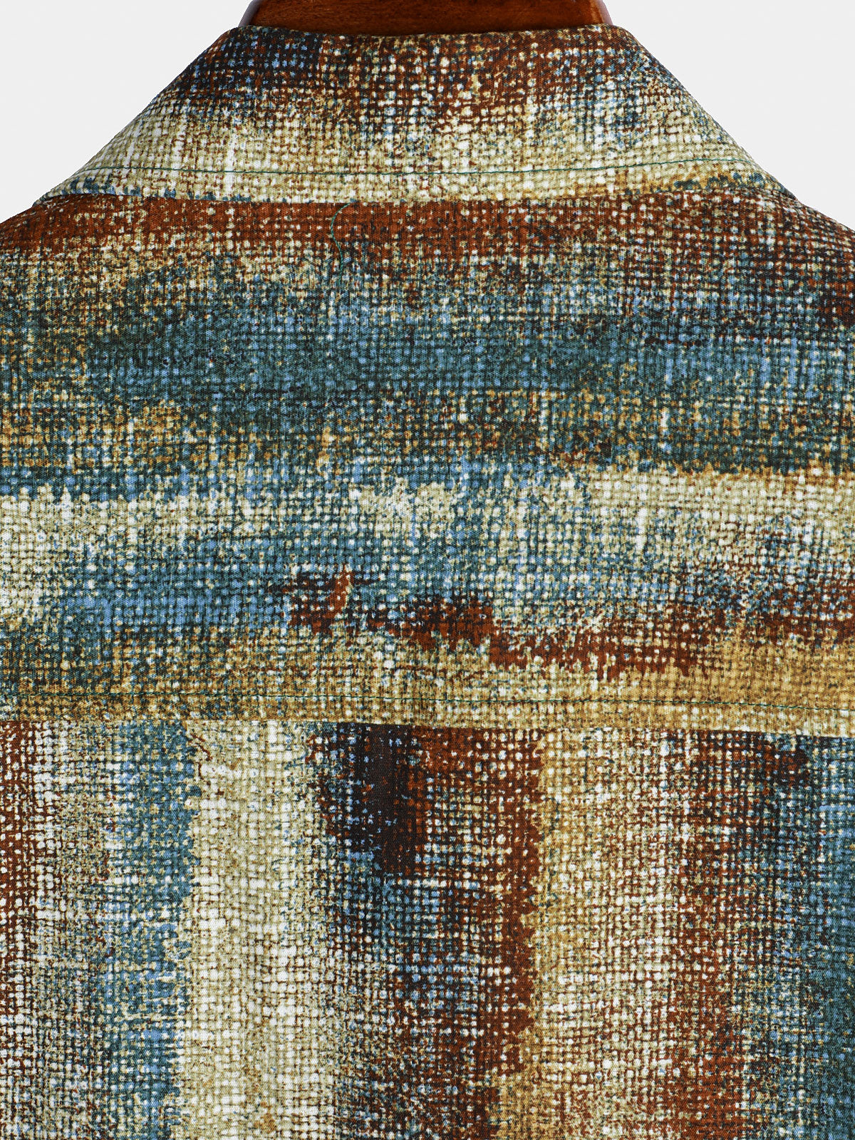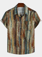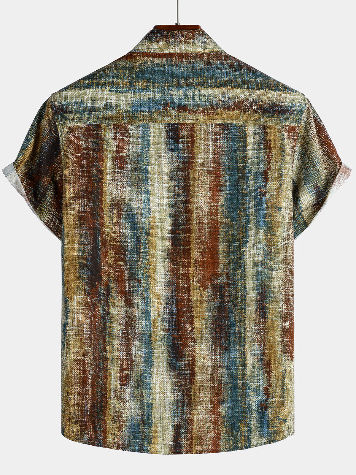 Men's Striped Holiday Button Up Pocket Short Sleeve Shirt
