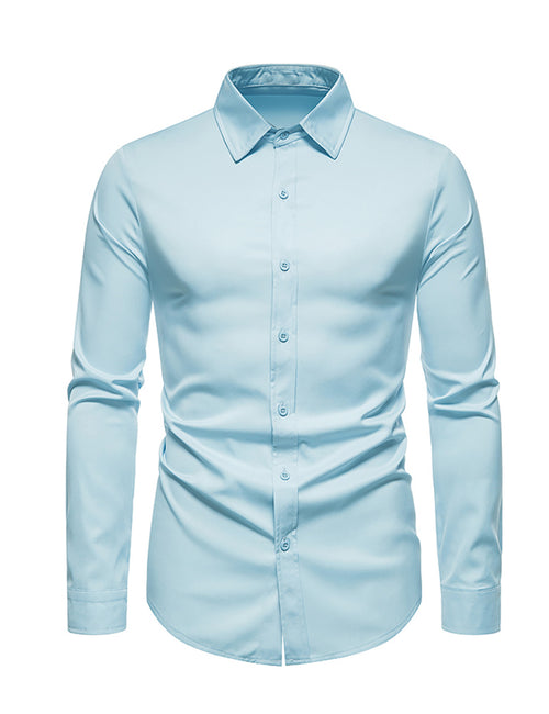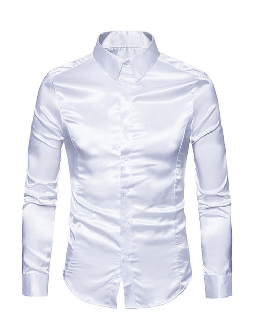 Men's Satin Smooth Button Up Tuxedo Long Sleeve Party Dress Shirt