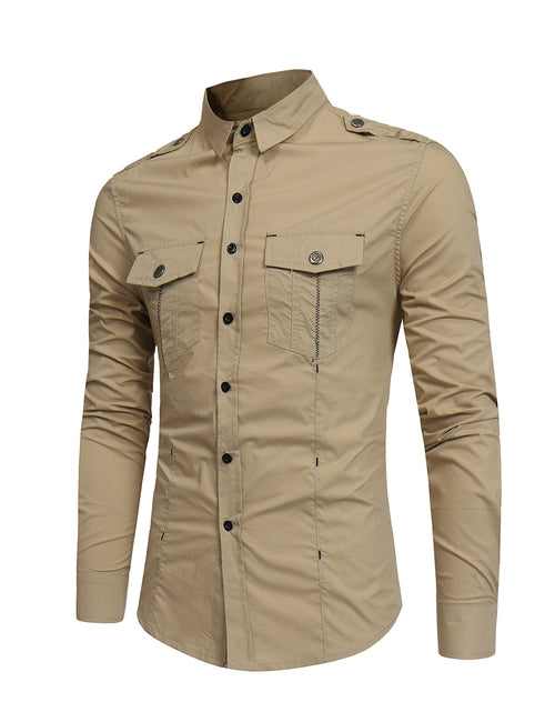 Men's Military Outdoor Leisure Lapel Cotton Long Sleeve Shirt