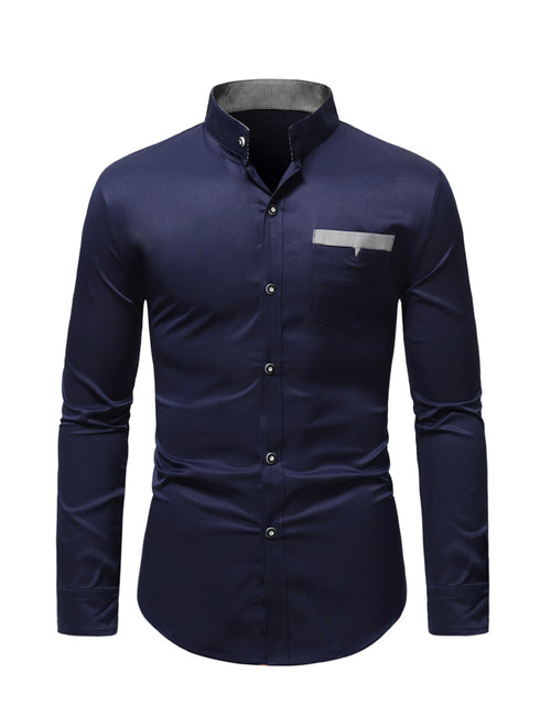 Men's Solid Color Collar Embroidered Long Sleeve Shirt