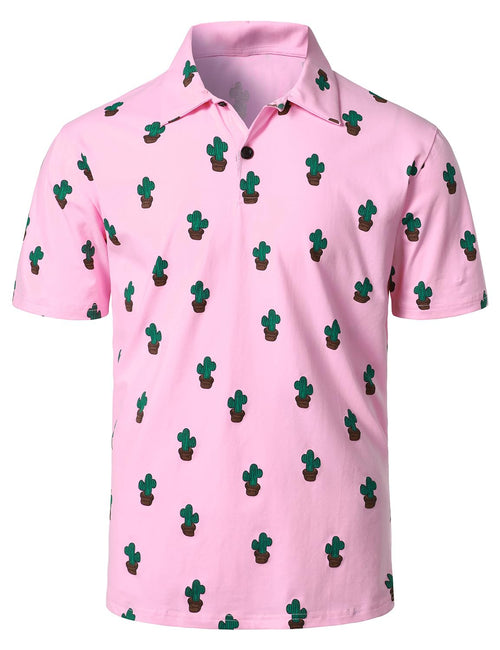 Men's Cactus Print Cotton Holiday Sports Golf Short Sleeve Polo Shirt