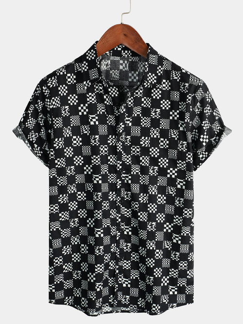 Men's Short Sleeve Animal Striped Patchwork Pocket Casual Shirt