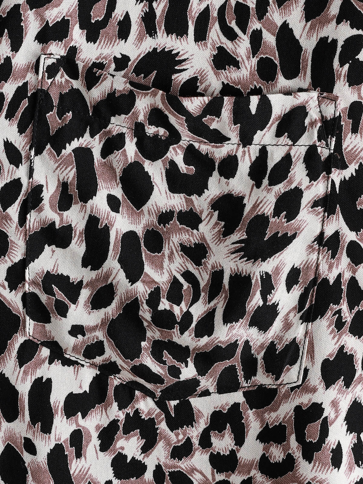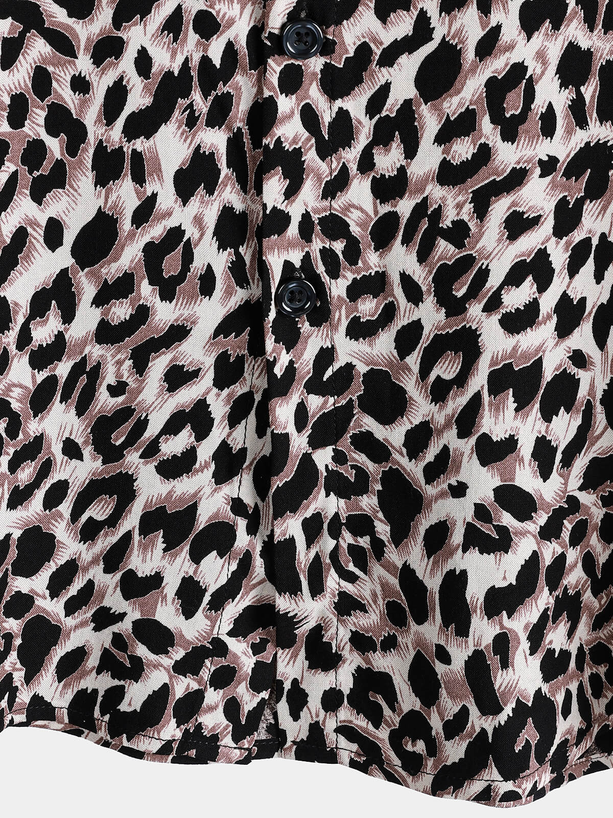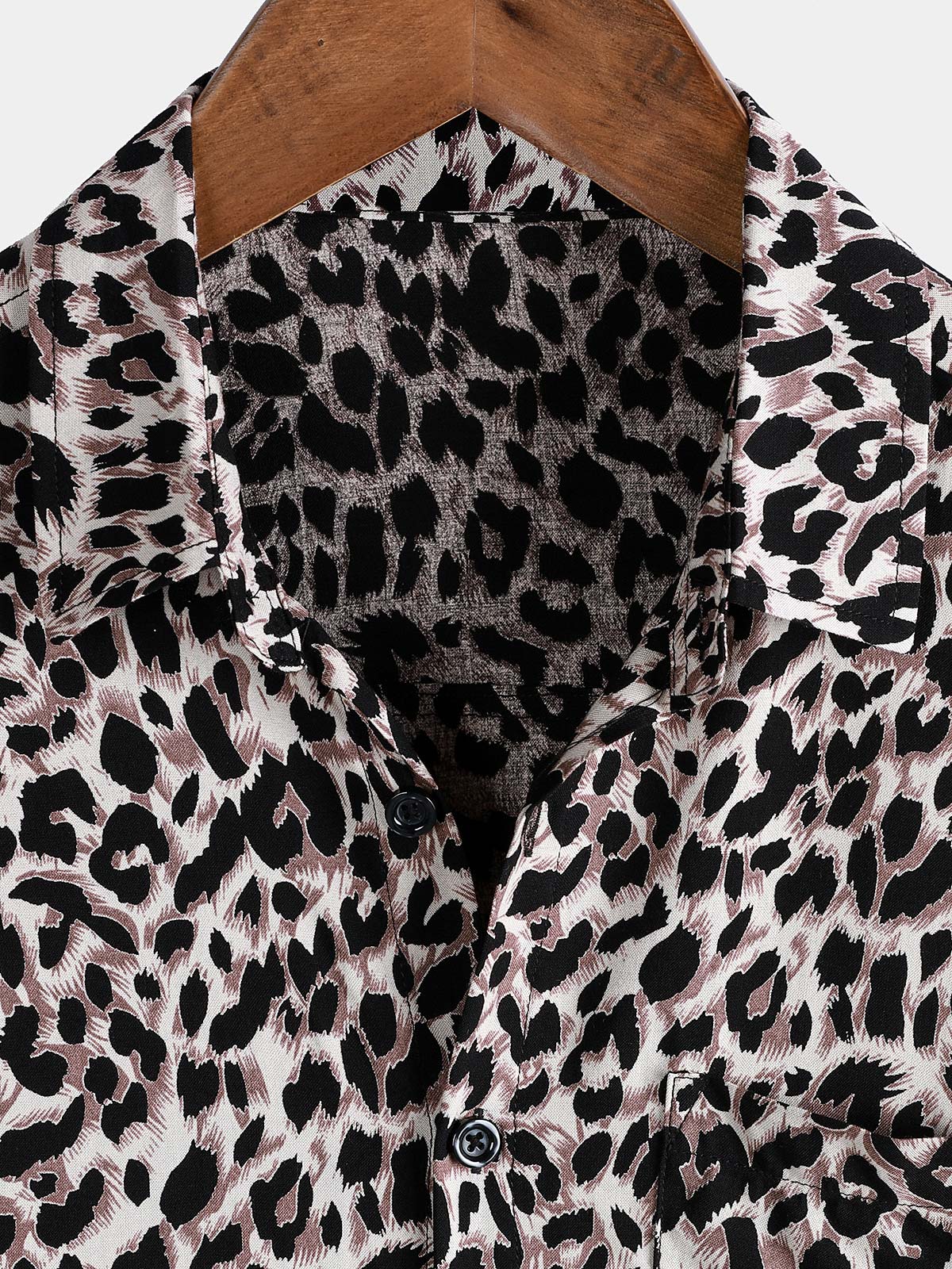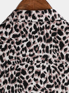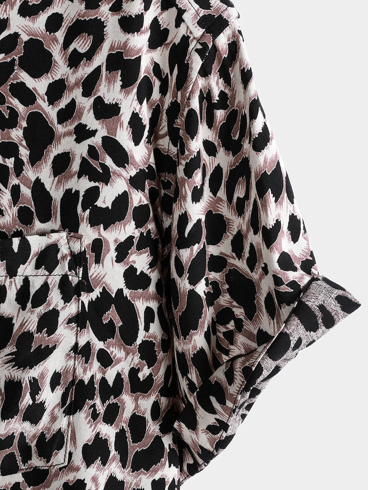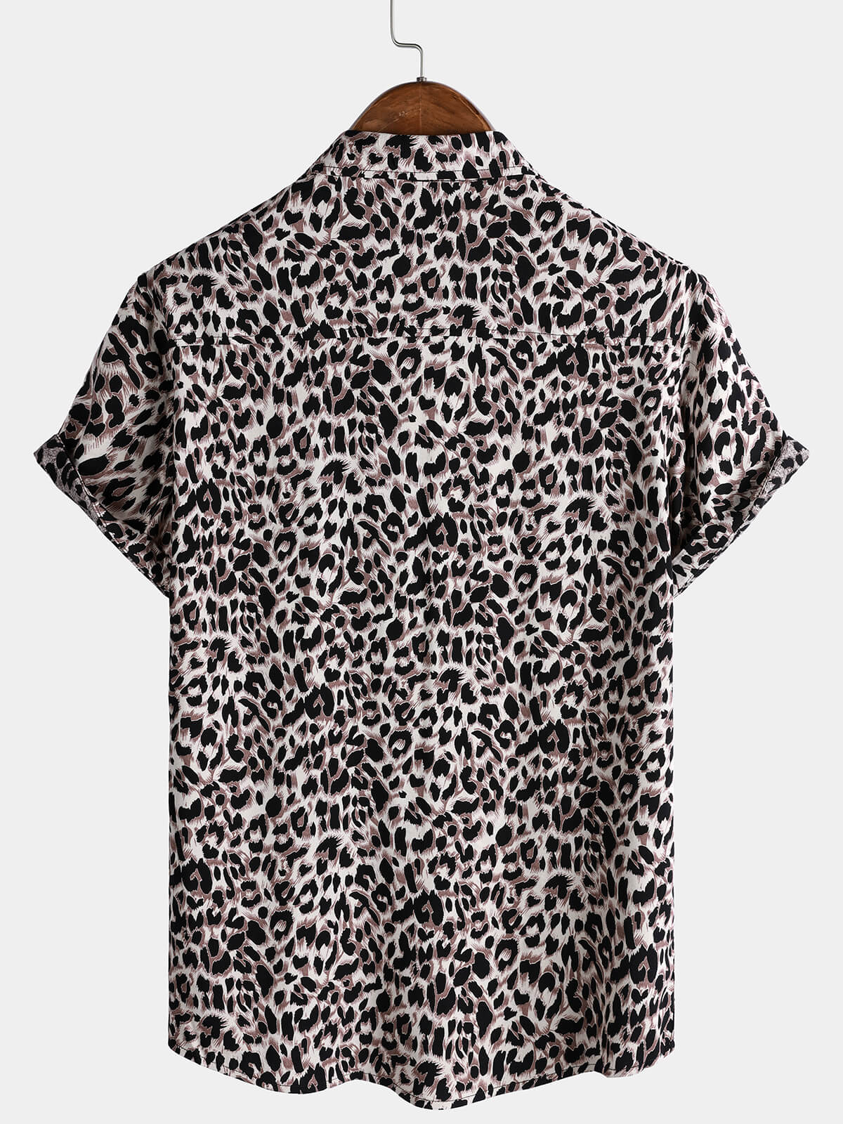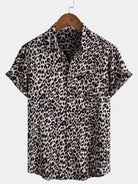 Men's Retro Leopard Print Rayon Pocket Short Sleeve Shirt