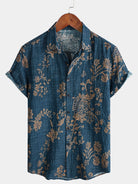 Men's Blue Floral Short Sleeve Breathable Button Up Shirt