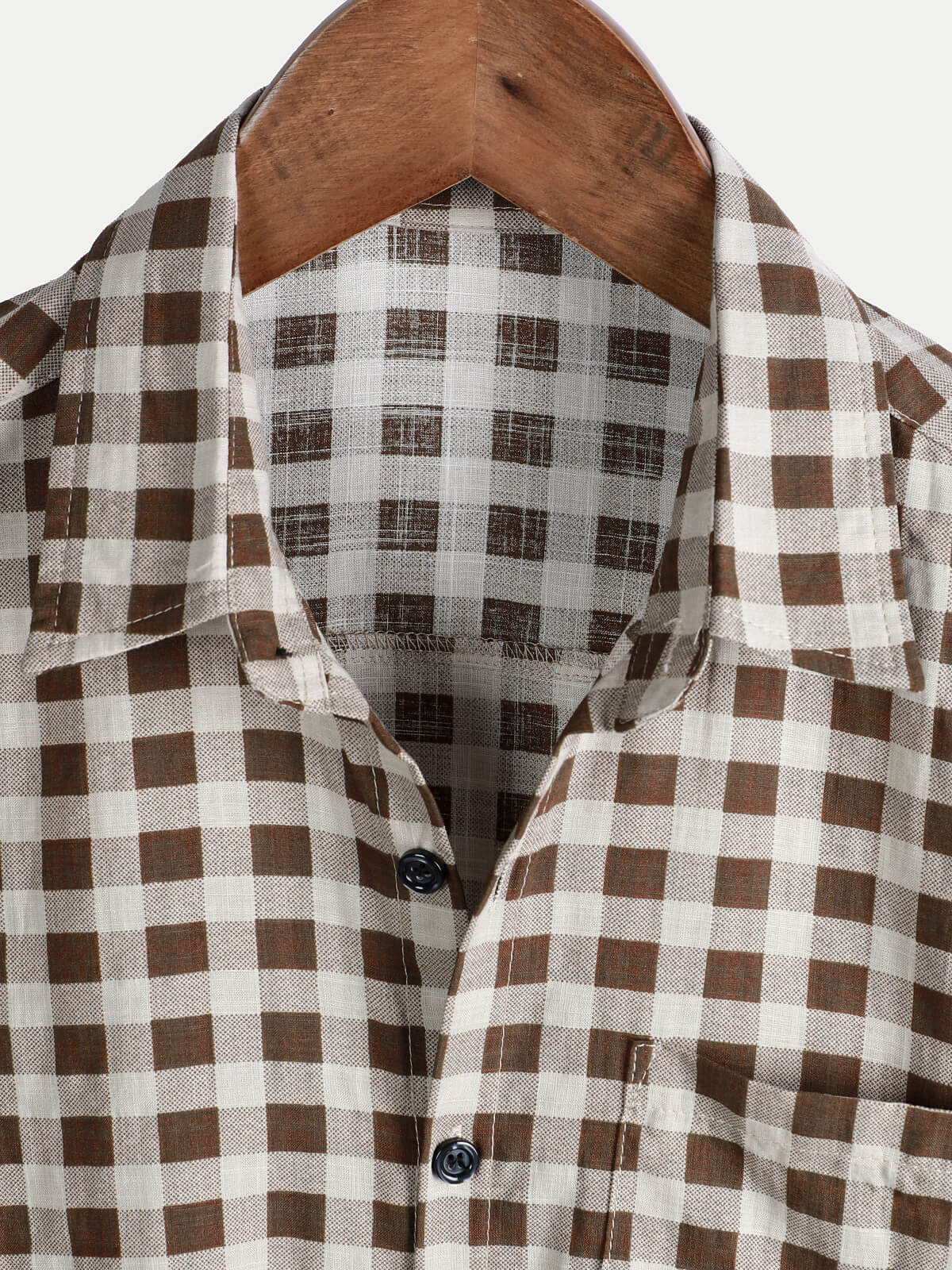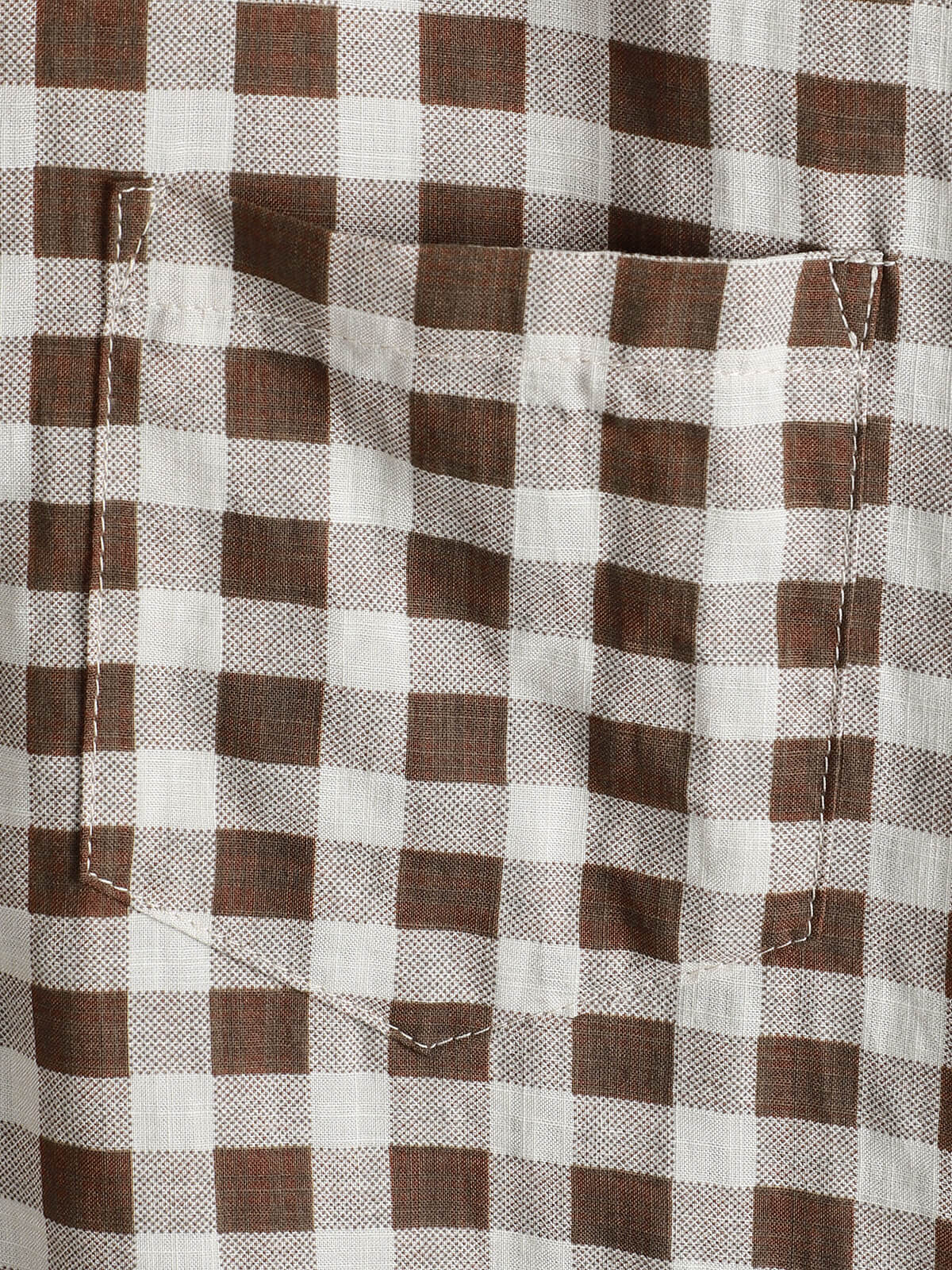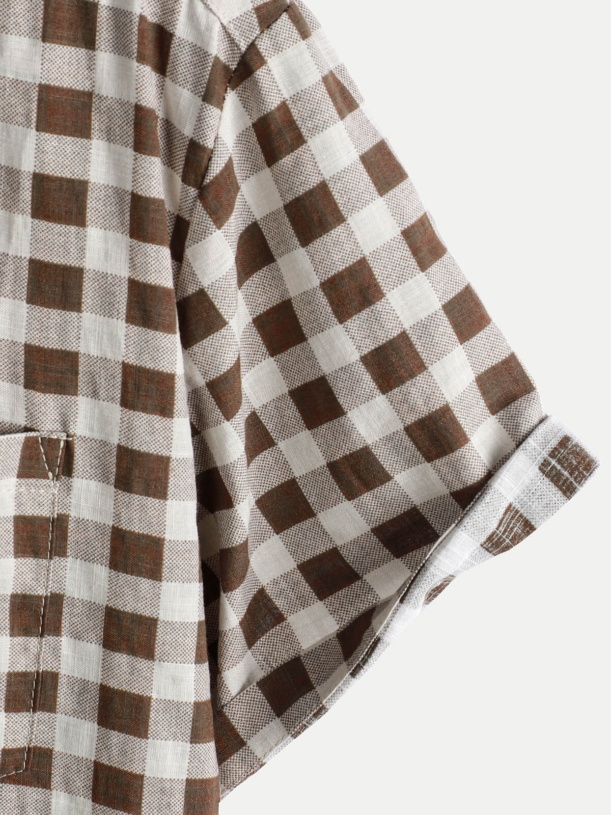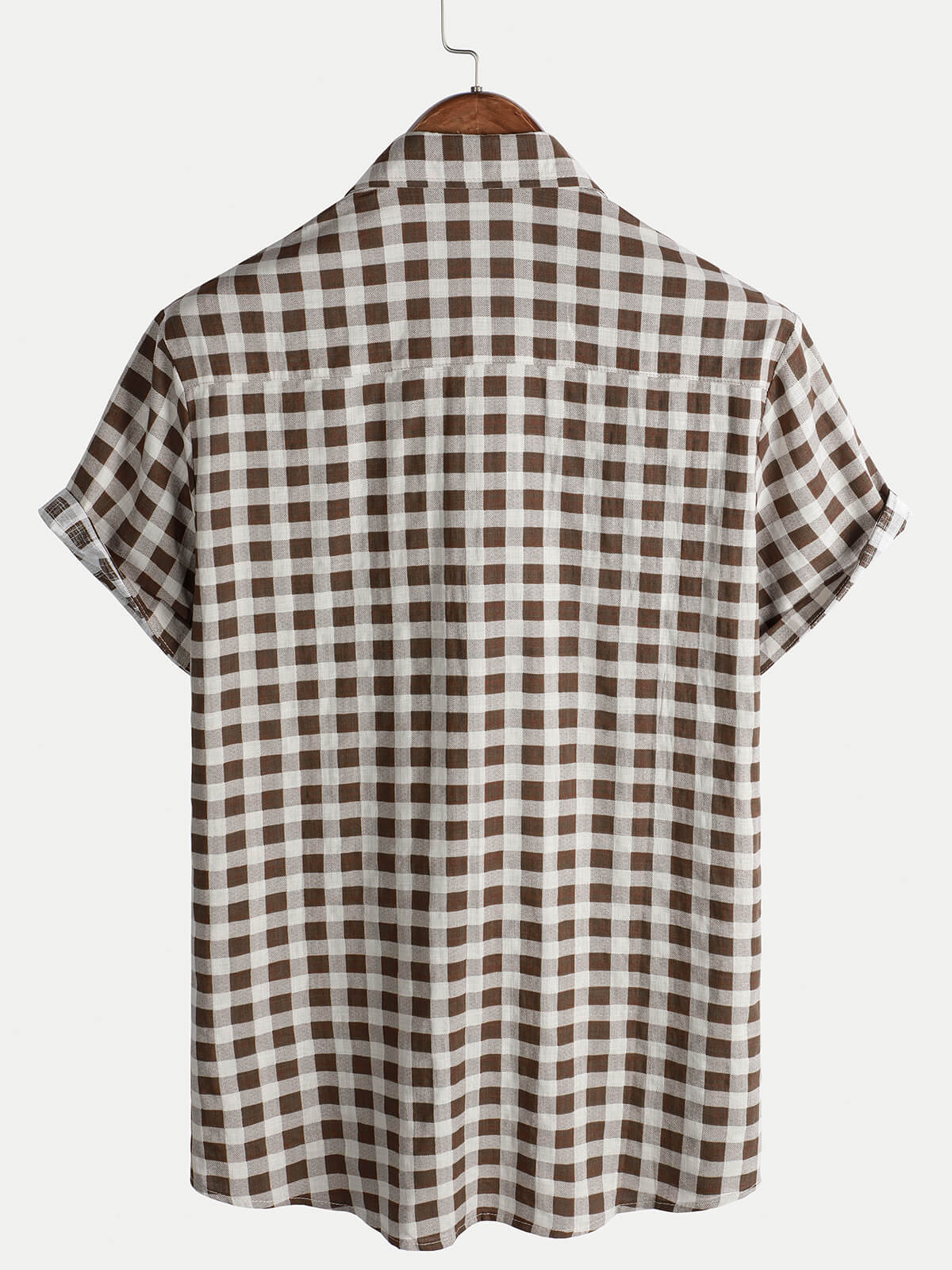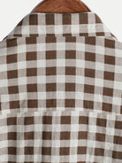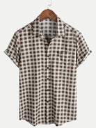 Men's Brown Check Print Cotton Pocket Short Sleeve Shirt