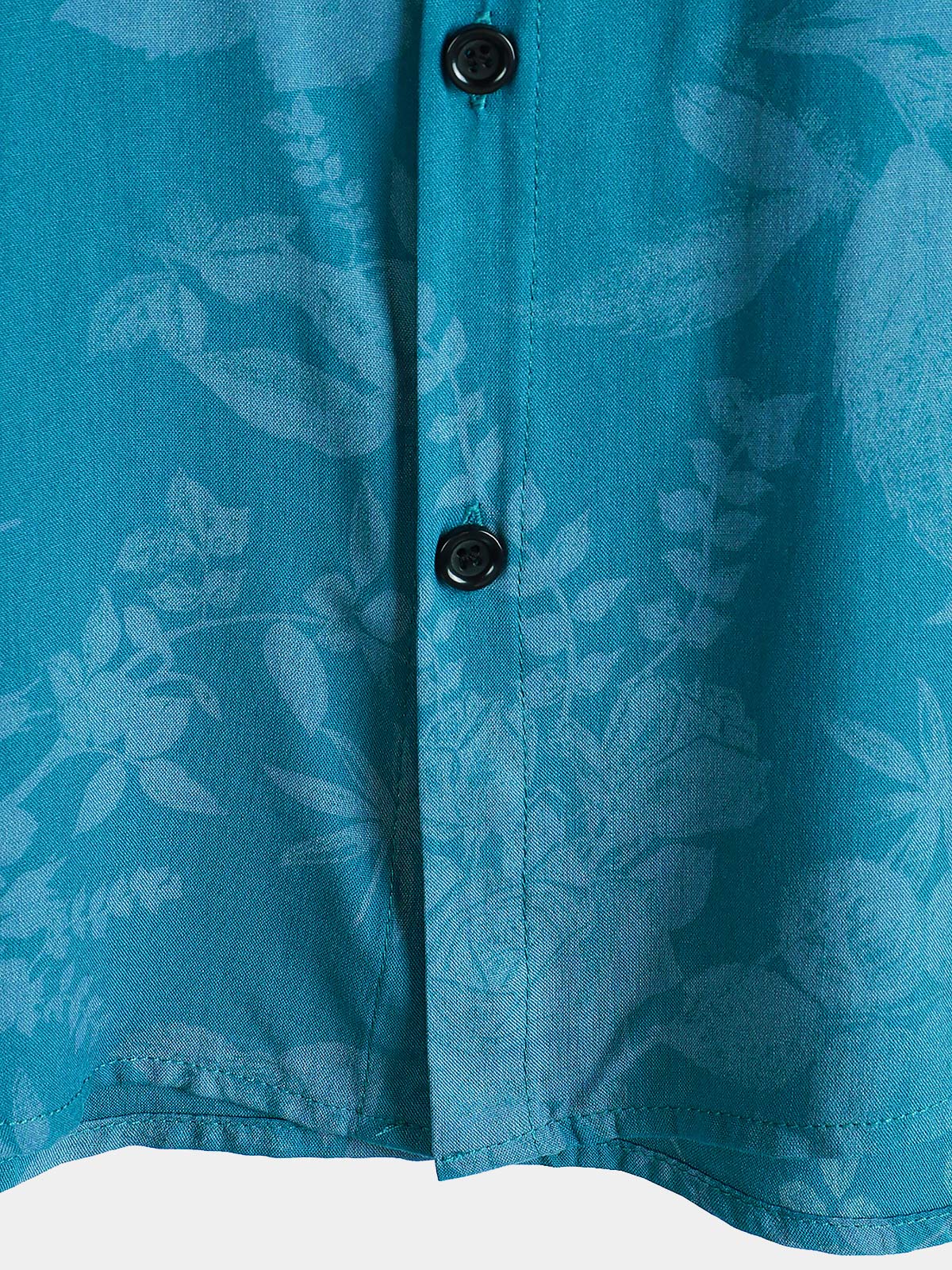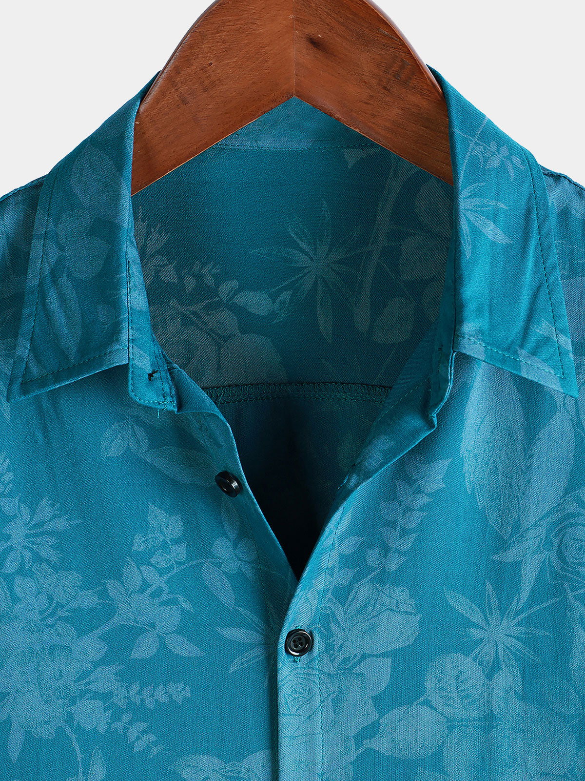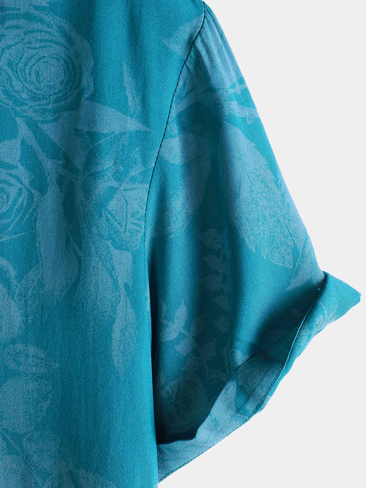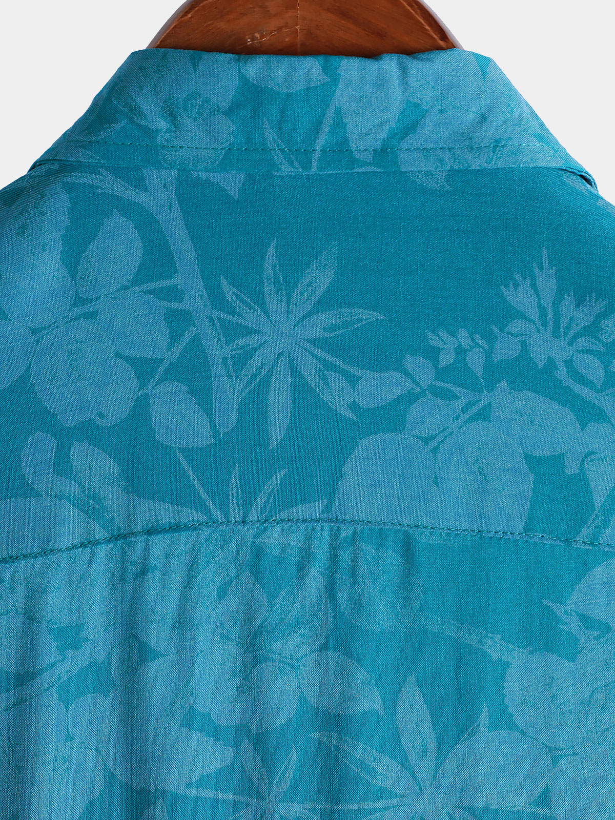Men's Hawaiian Blue Floral Summer Beach Short Sleeve Shirt
