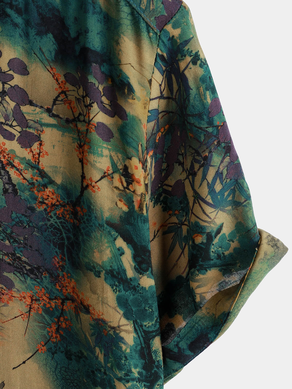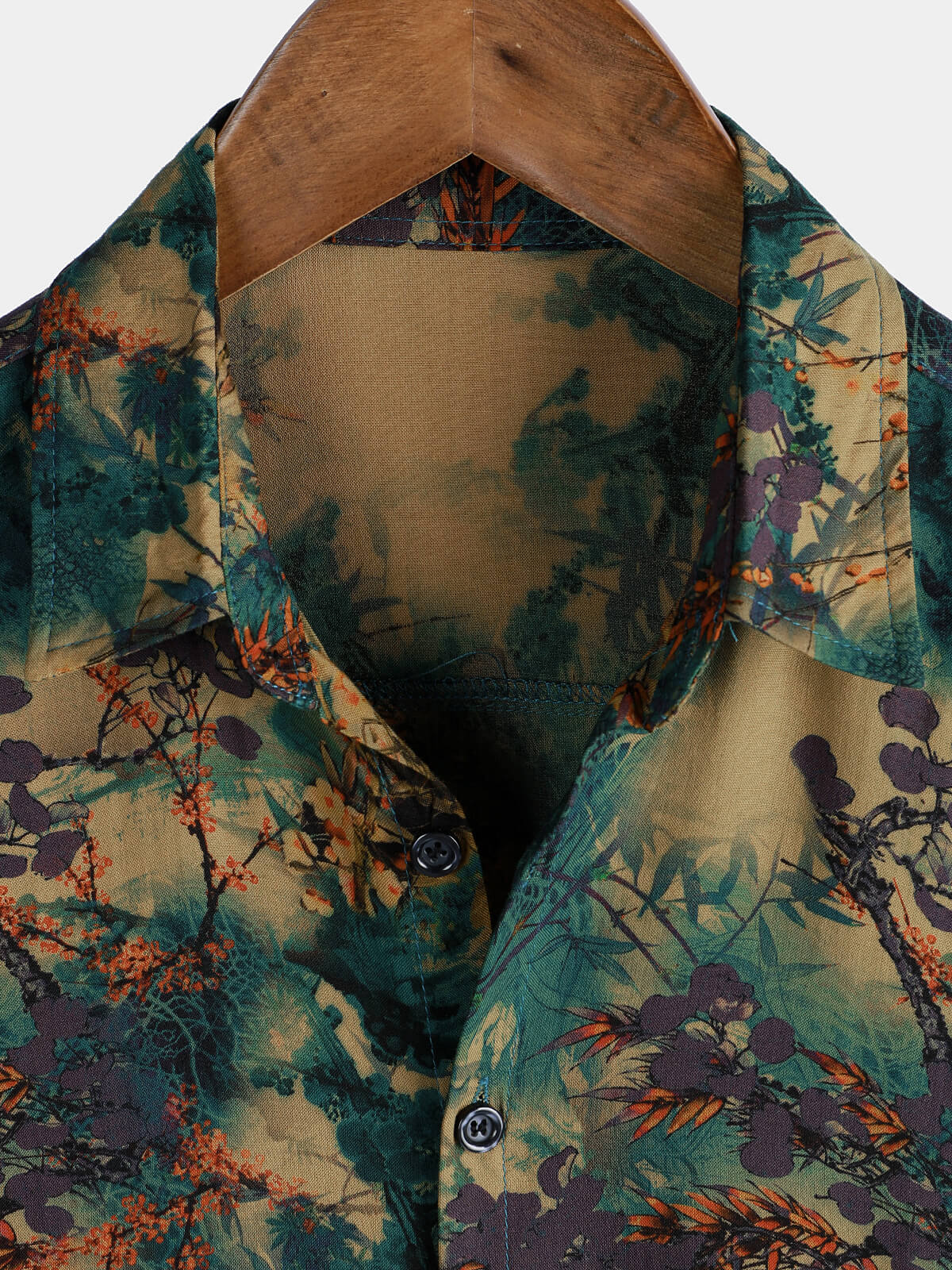 Men's Rayon Summer Retro Floral Short Sleeve Shirt