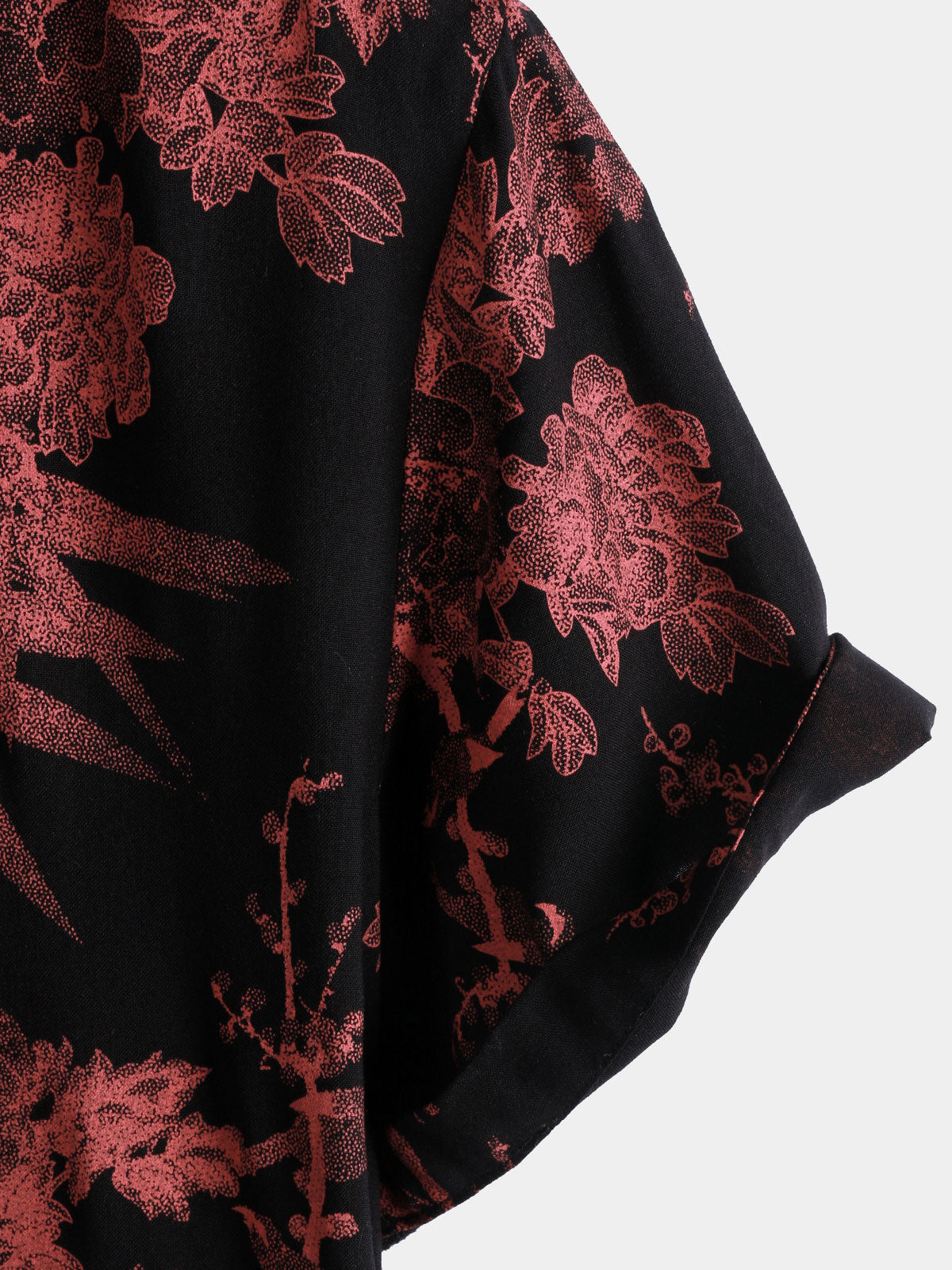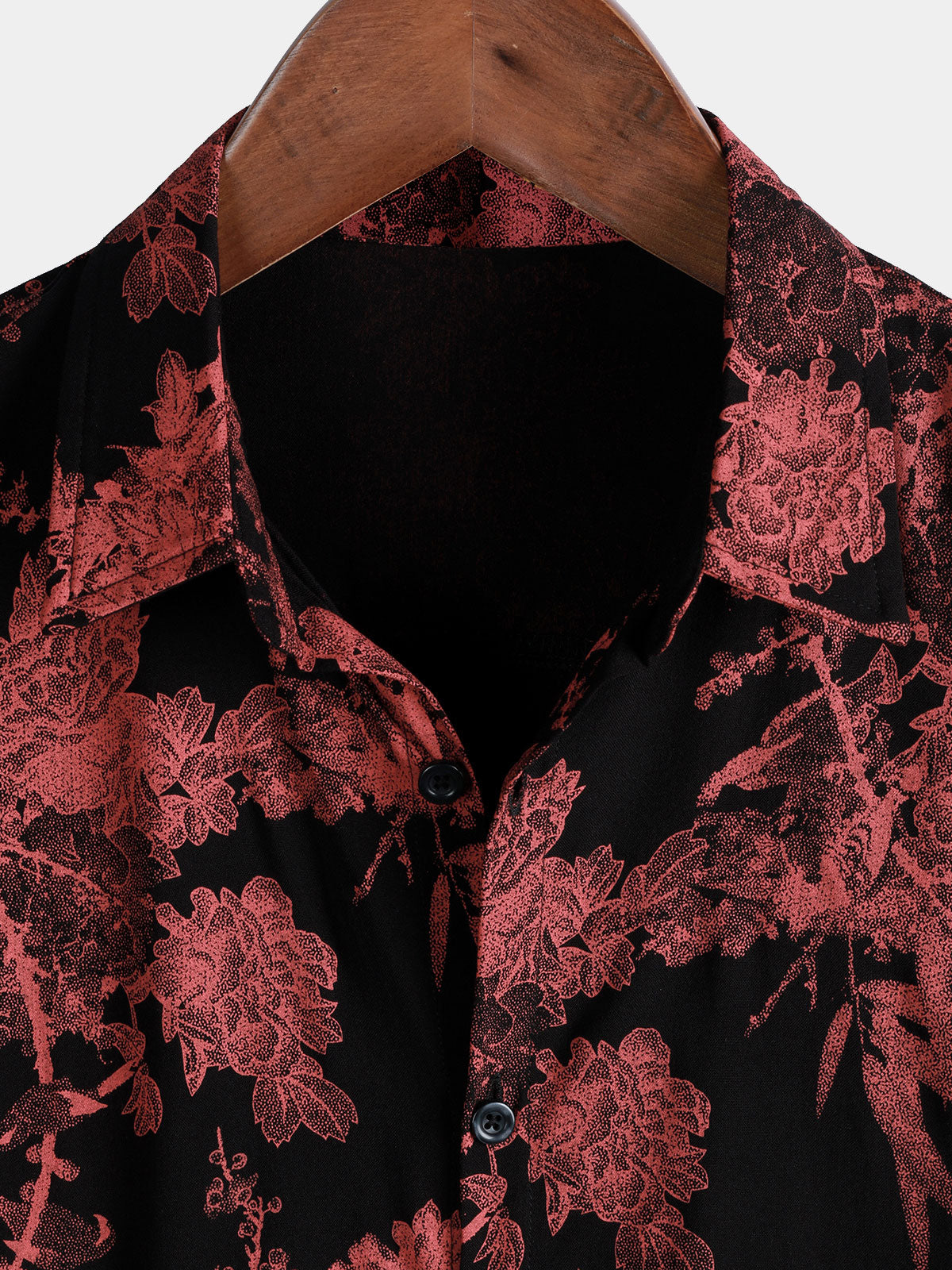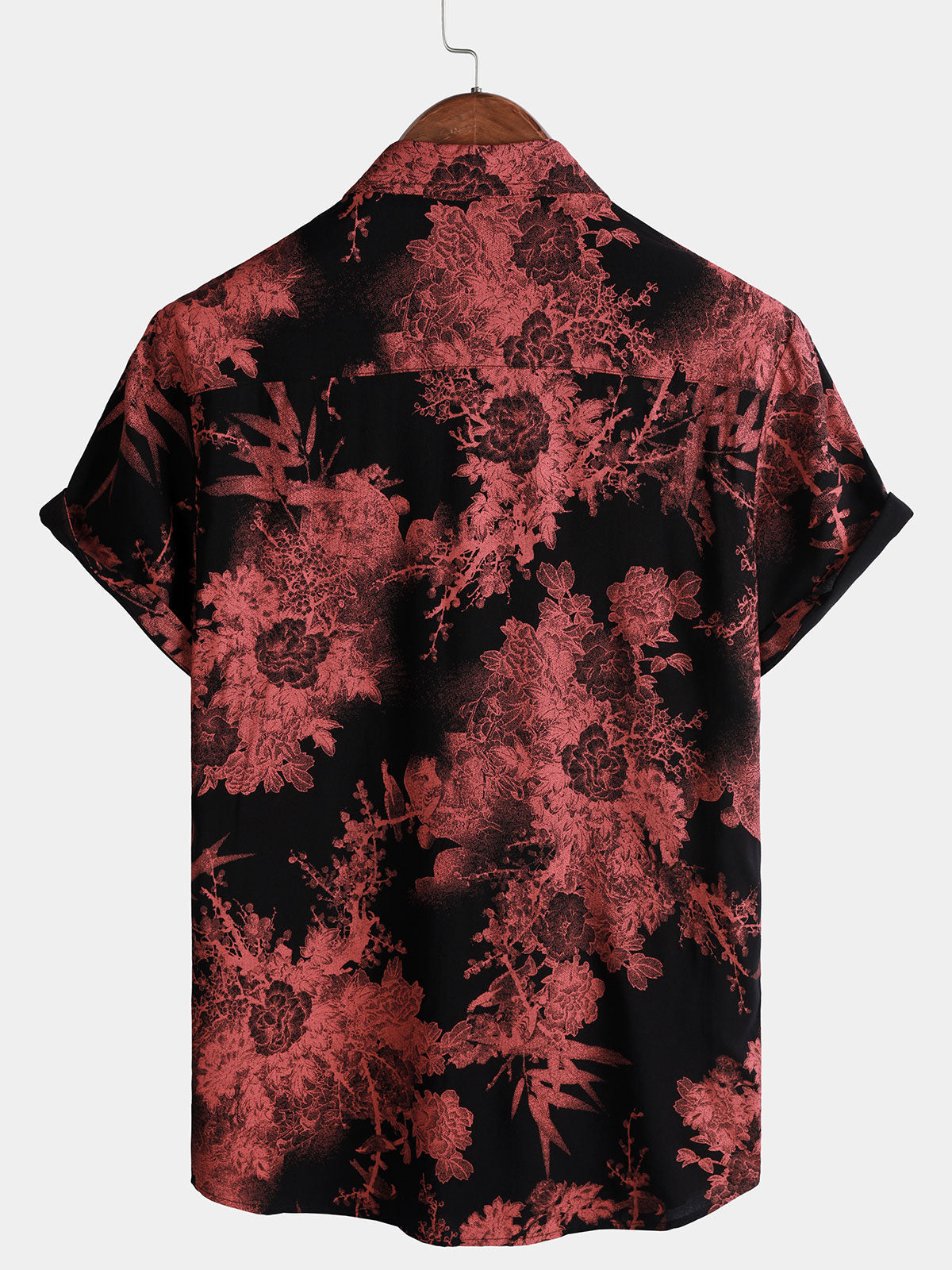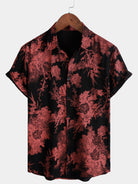 Men's Red & Black Retro Floral Button Up Beach Shirt