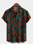 Men's Retro Floral Print Short Sleeve Button Up Shirt