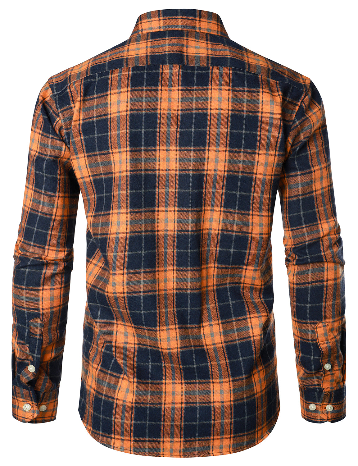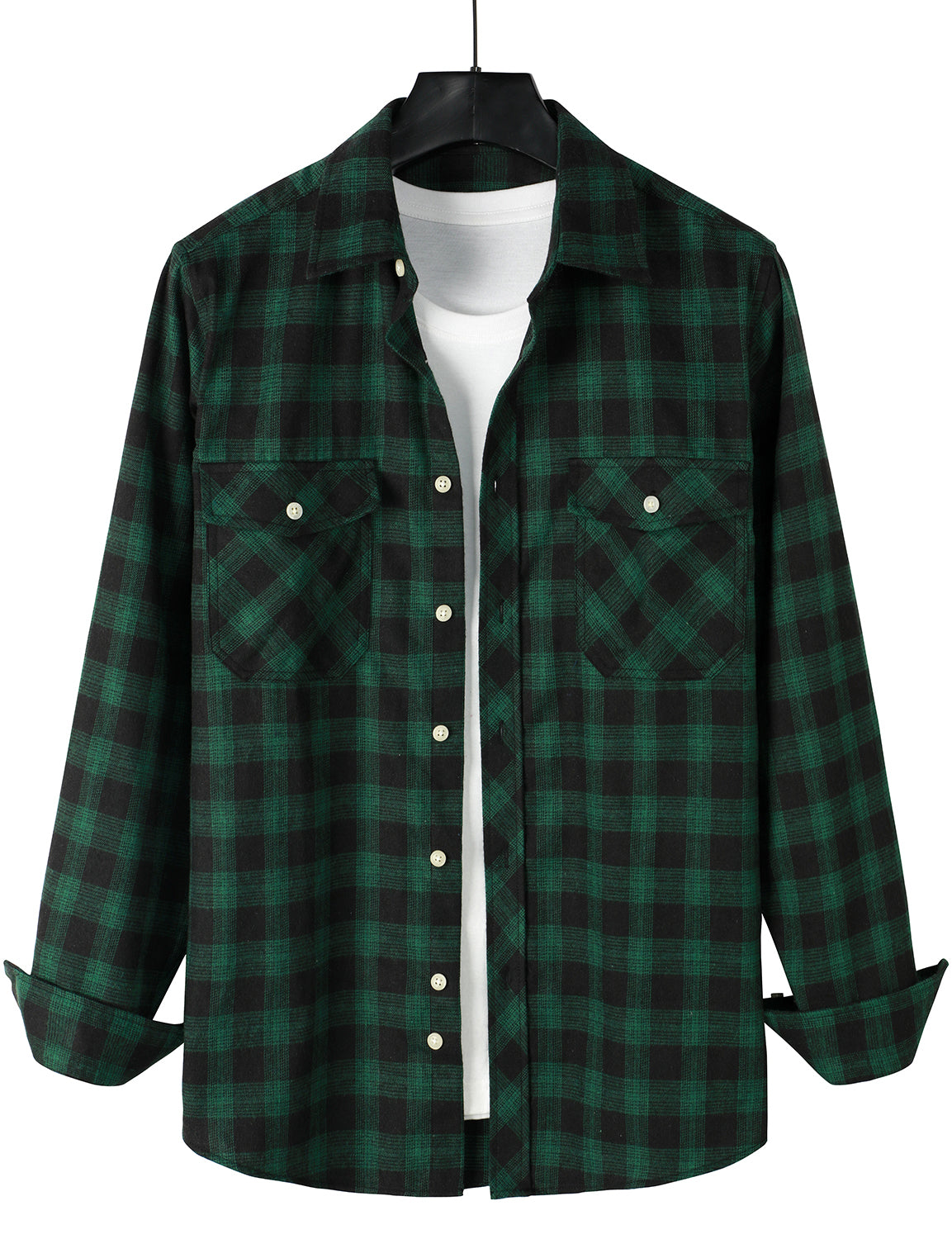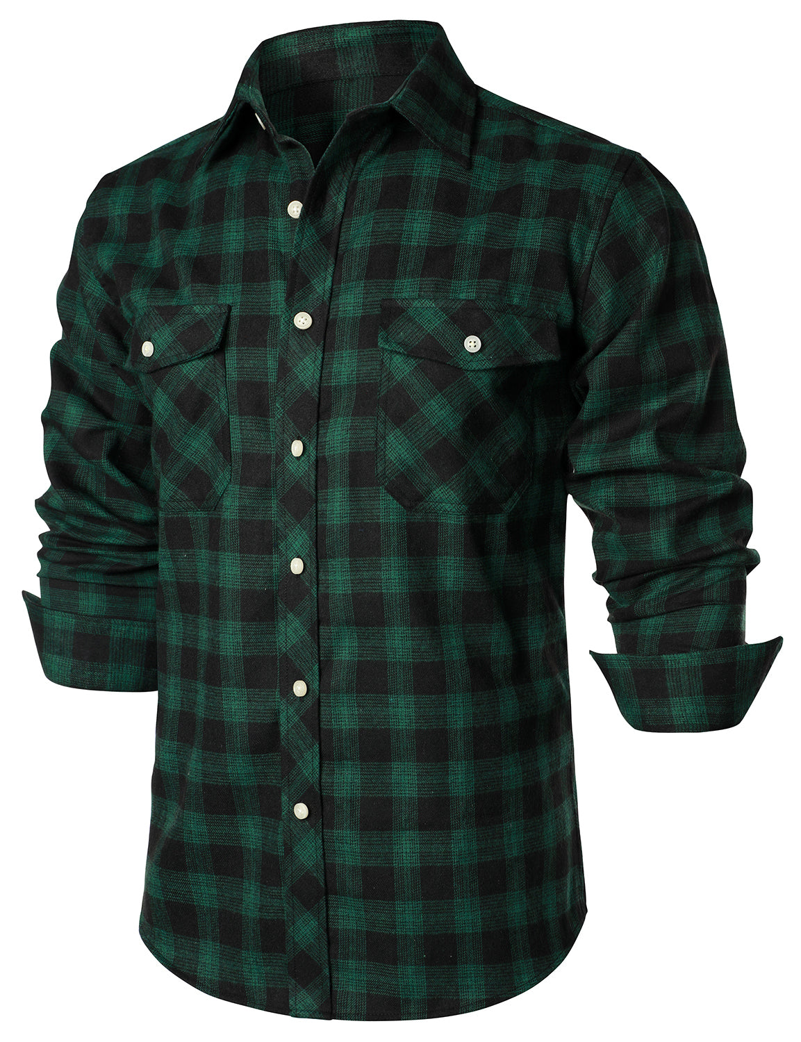 Men's Casual Plaid Double Pocket Flannel Checkered Button Up Long Sleeve Shirt