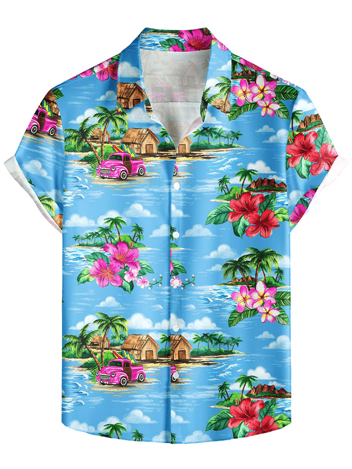 Men's Casual Holiday Short Sleeve Button Up Retro Shirt