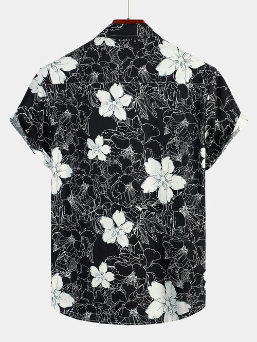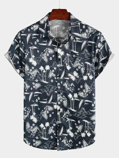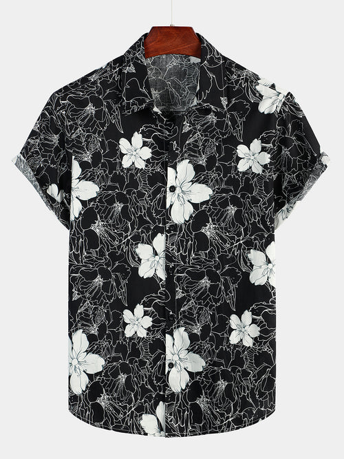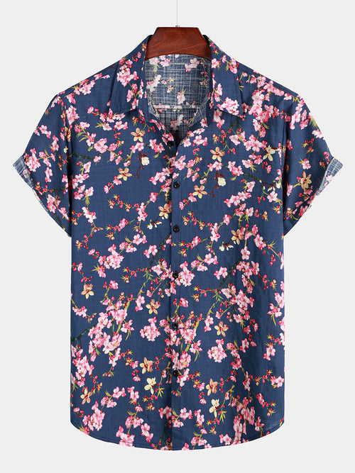 Men's Vintage Floral Print Hawaiian Cotton Short Sleeve Shirt