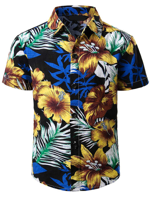 Boy's Floral Beach Casual Vacation Aloha Short Sleeve Hawaiian Shirt
