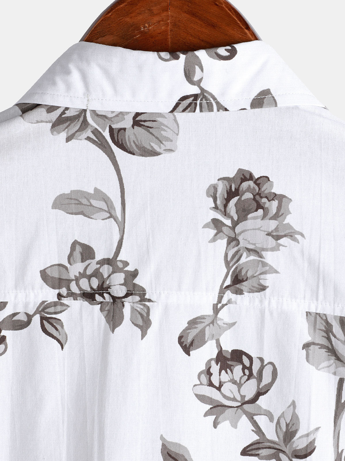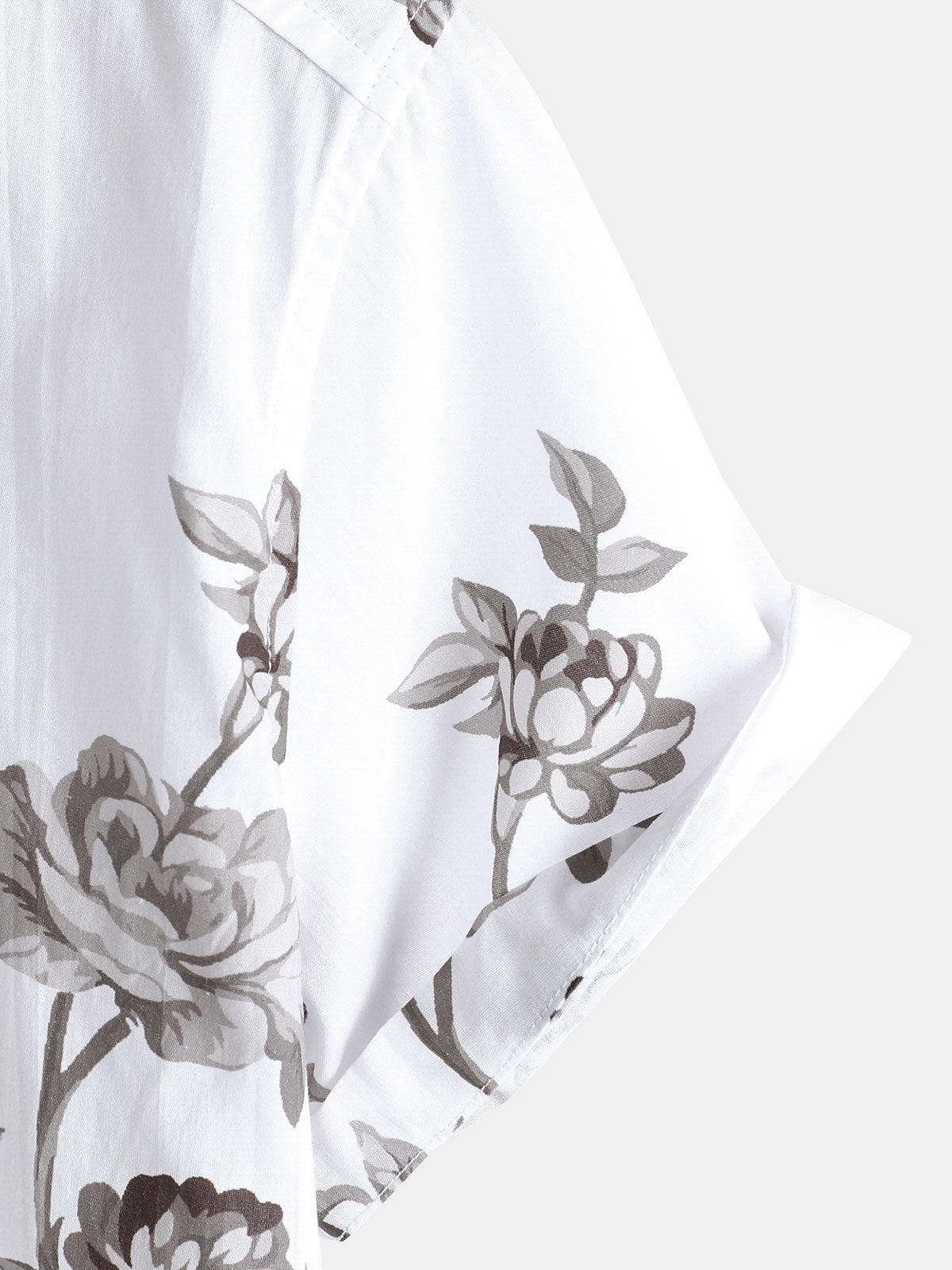 Men's Casual Floral Cotton Holiday Short Sleeve Shirt