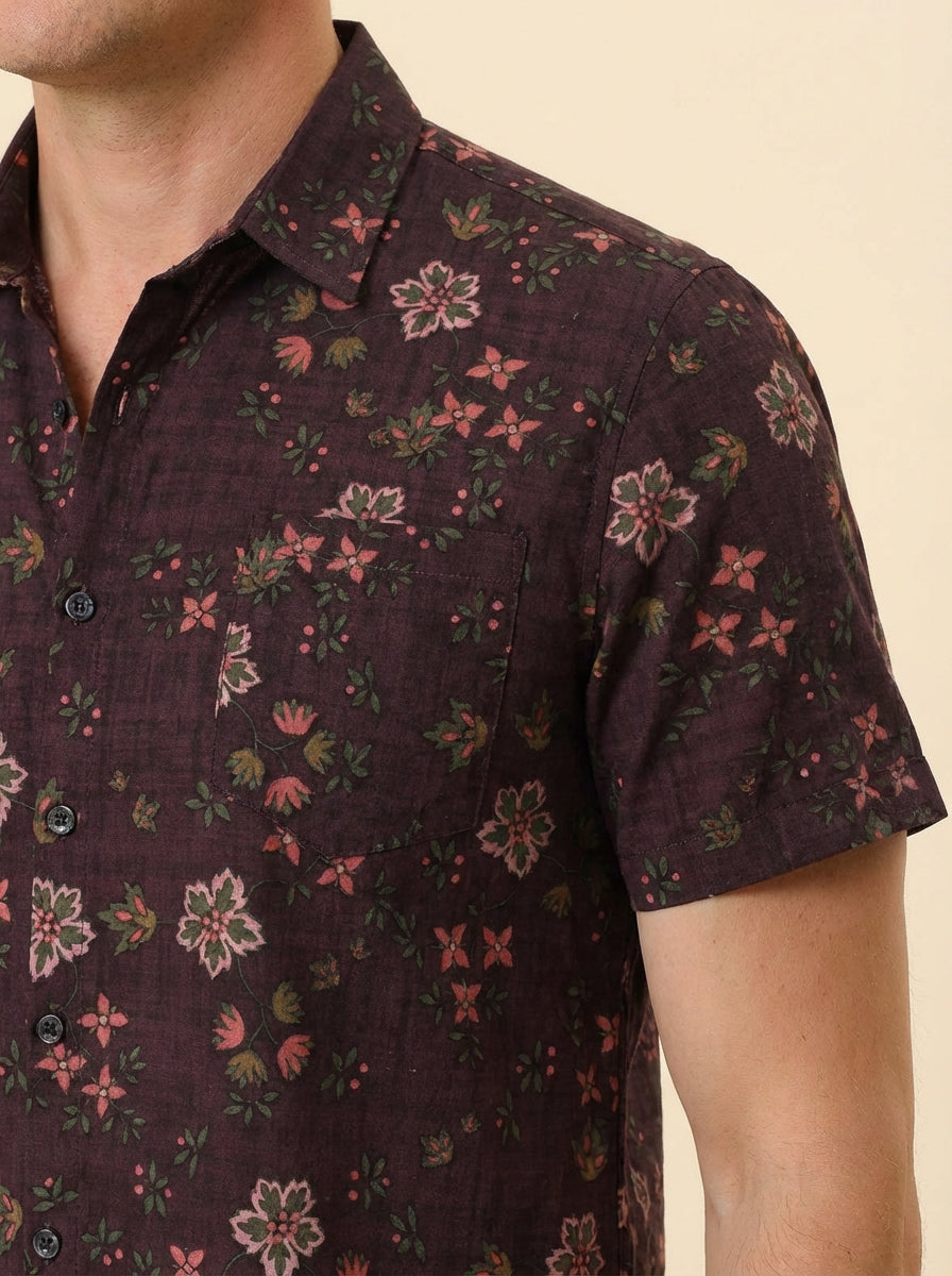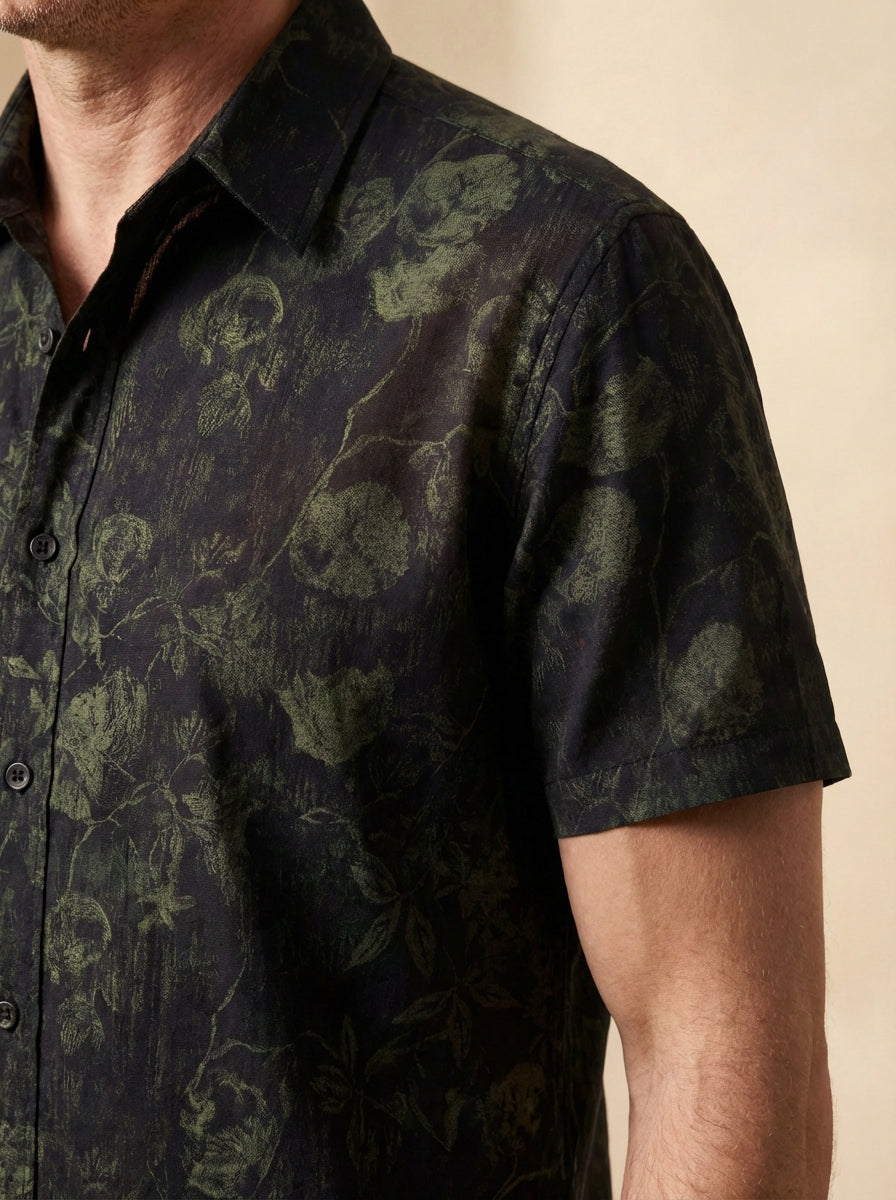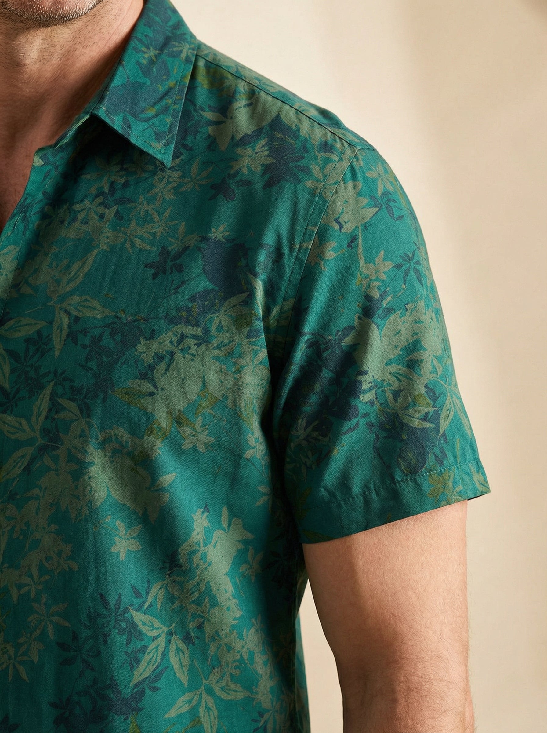 Men's Casual Holiday Summer Floral Print Short Sleeve Cotton Shirt