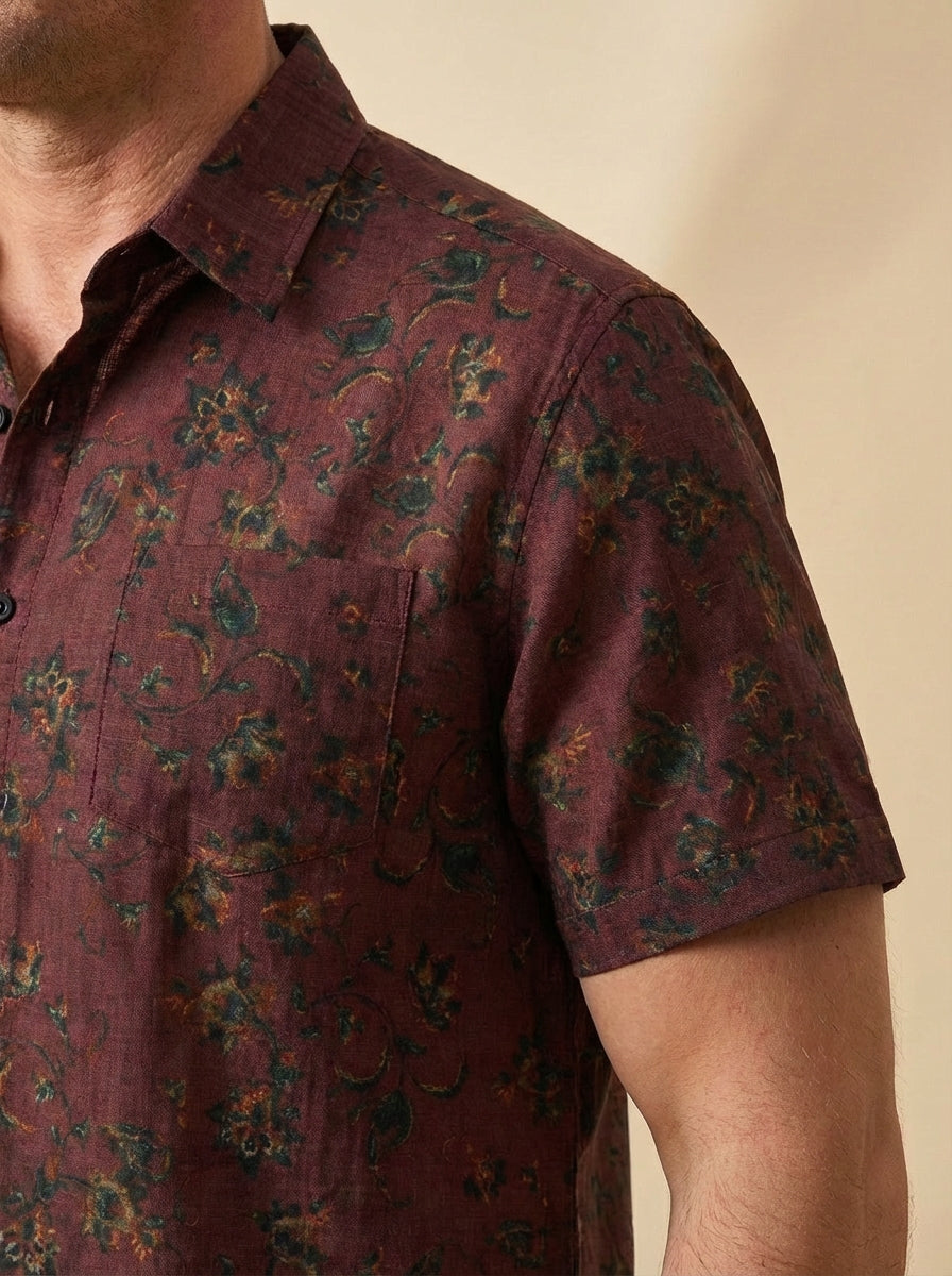 Men's Vintage Floral Breathable Cotton Short Sleeve Shirt