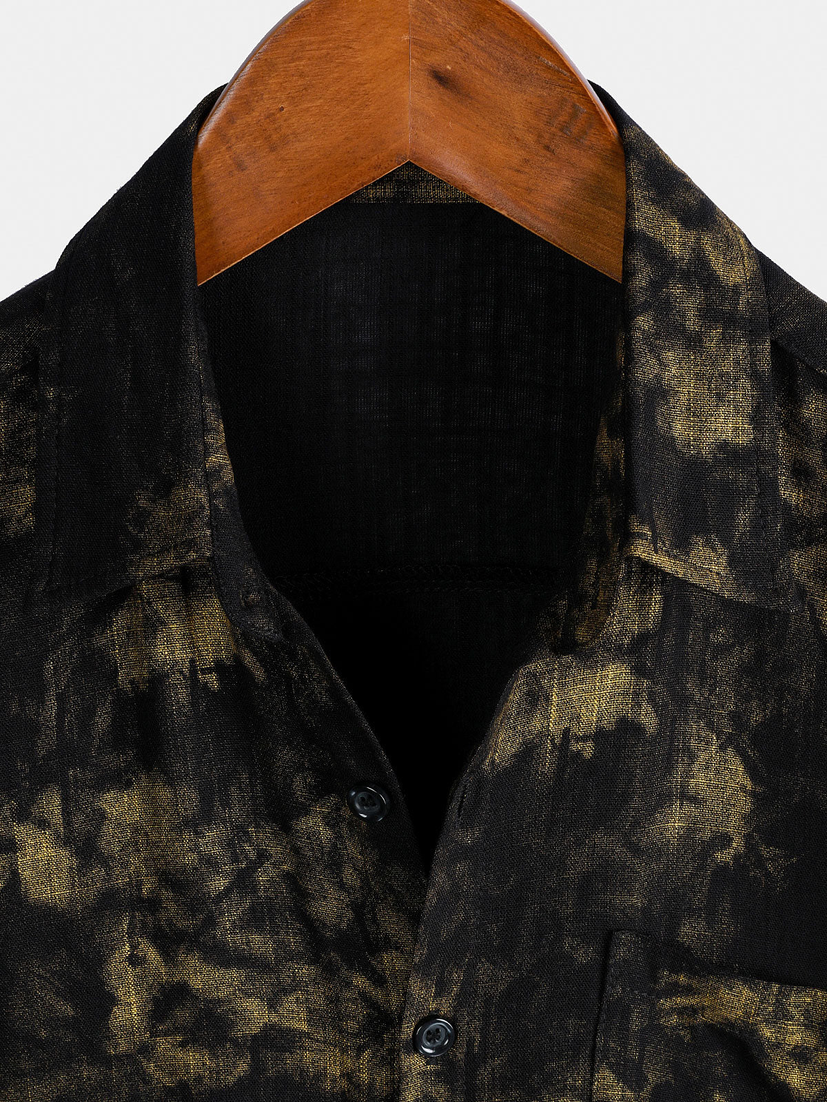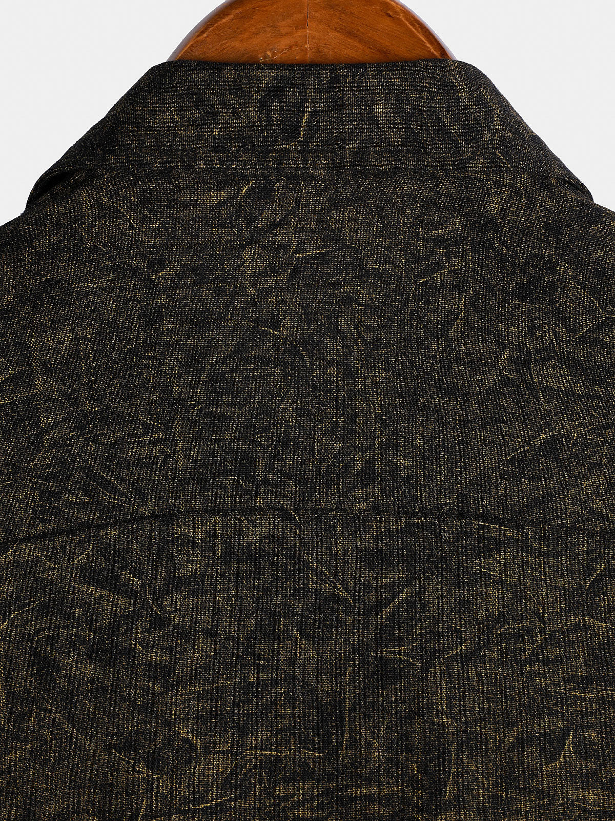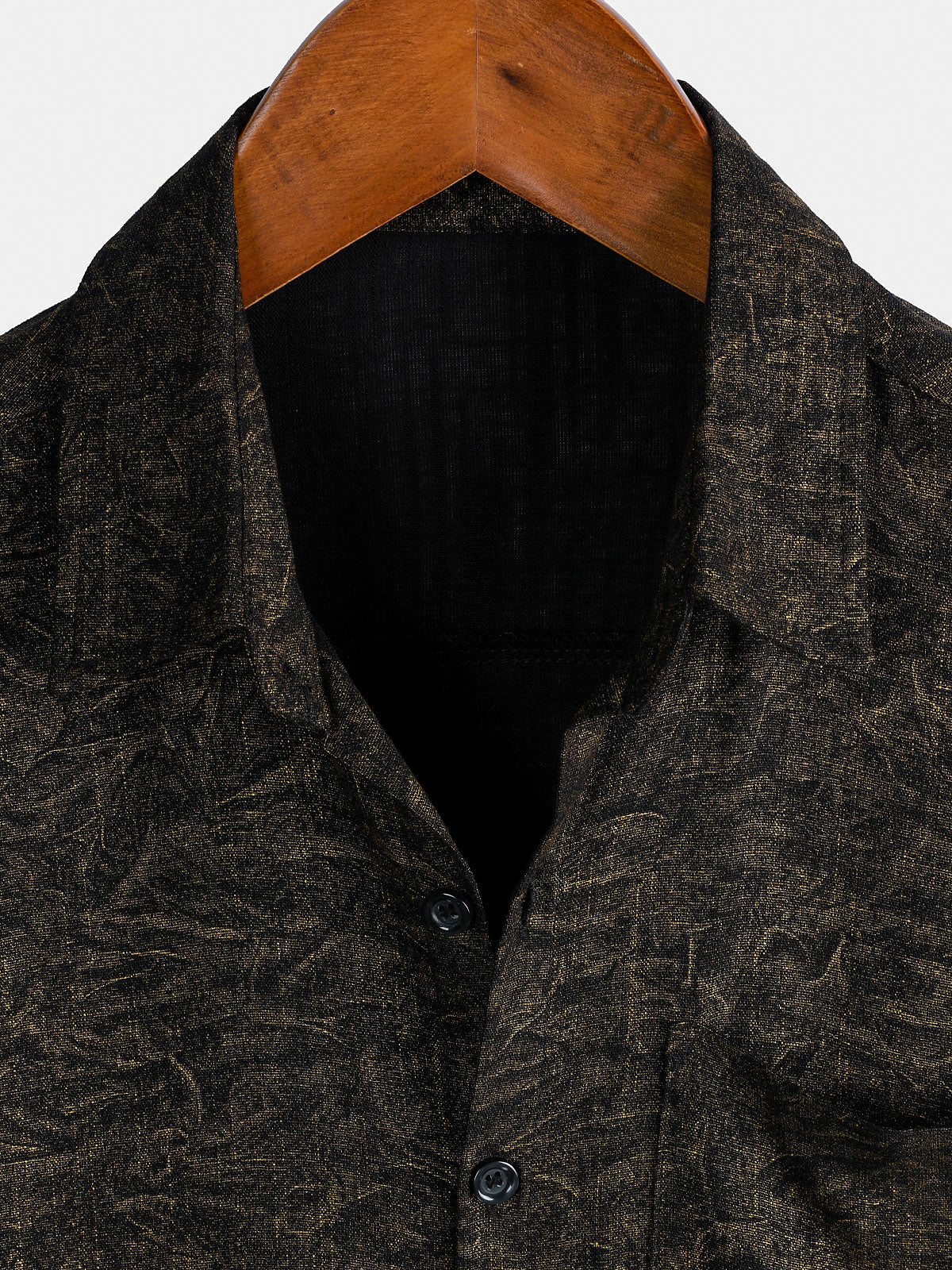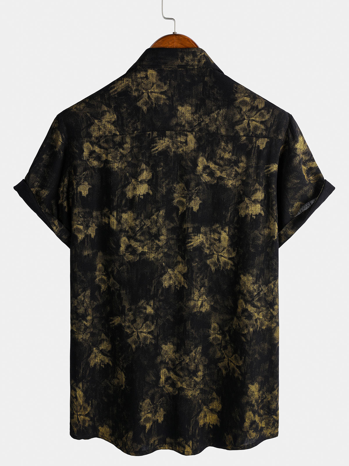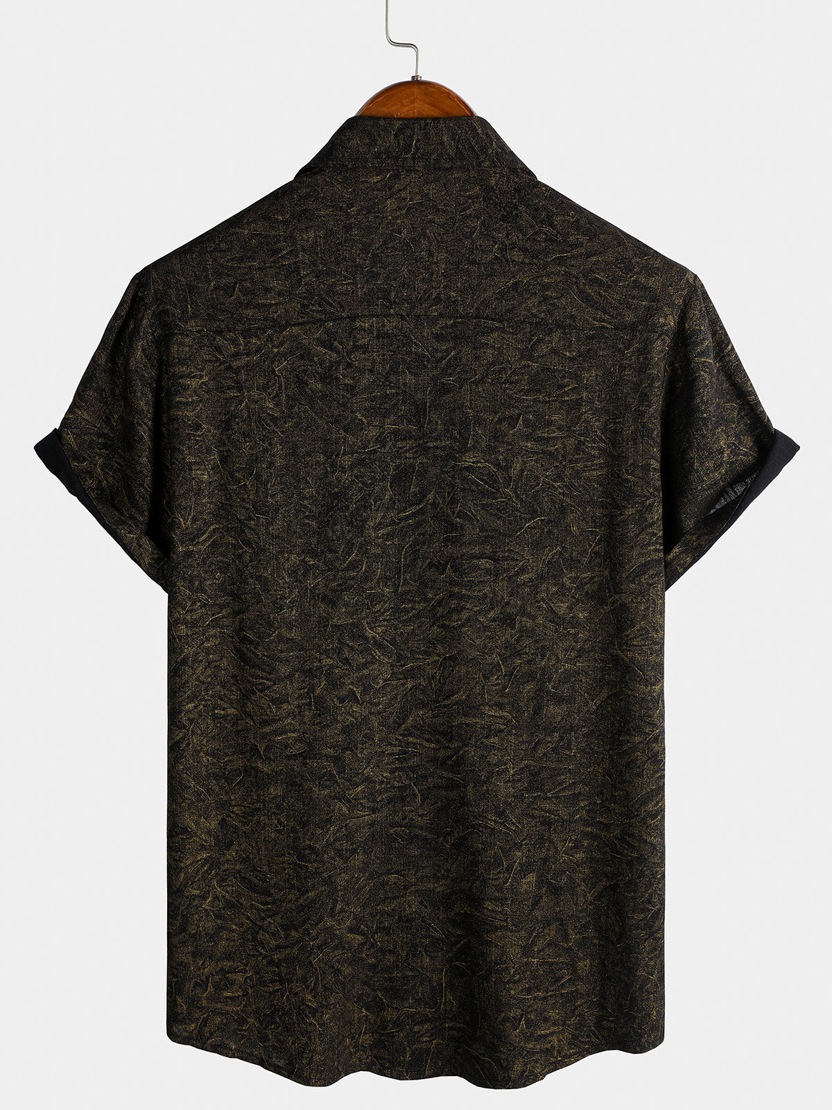 Men's Summer Holiday Black Casual Vintage Short Sleeve Shirt