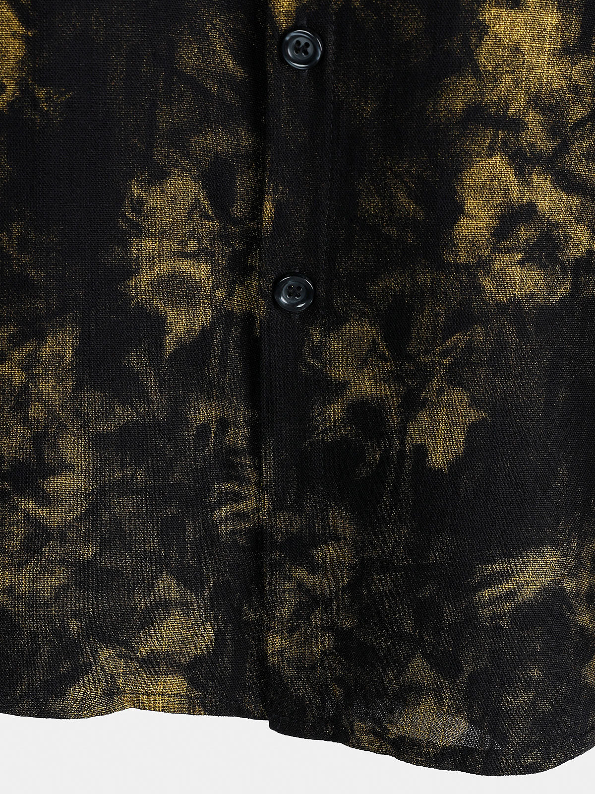 Men's Casual Holiday Summer Floral Print Short Sleeve Cotton Shirt