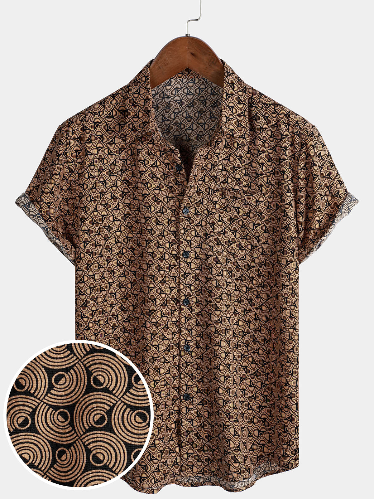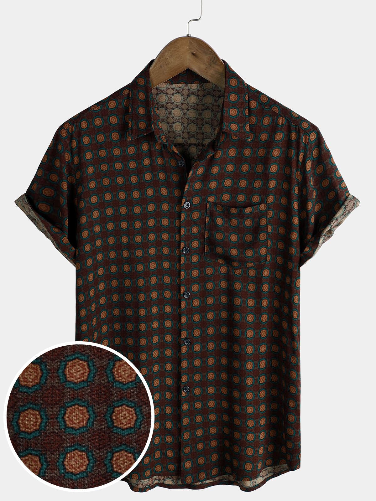 Men's Casual Holiday Short Sleeve Button Up Retro Shirt
