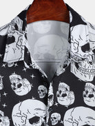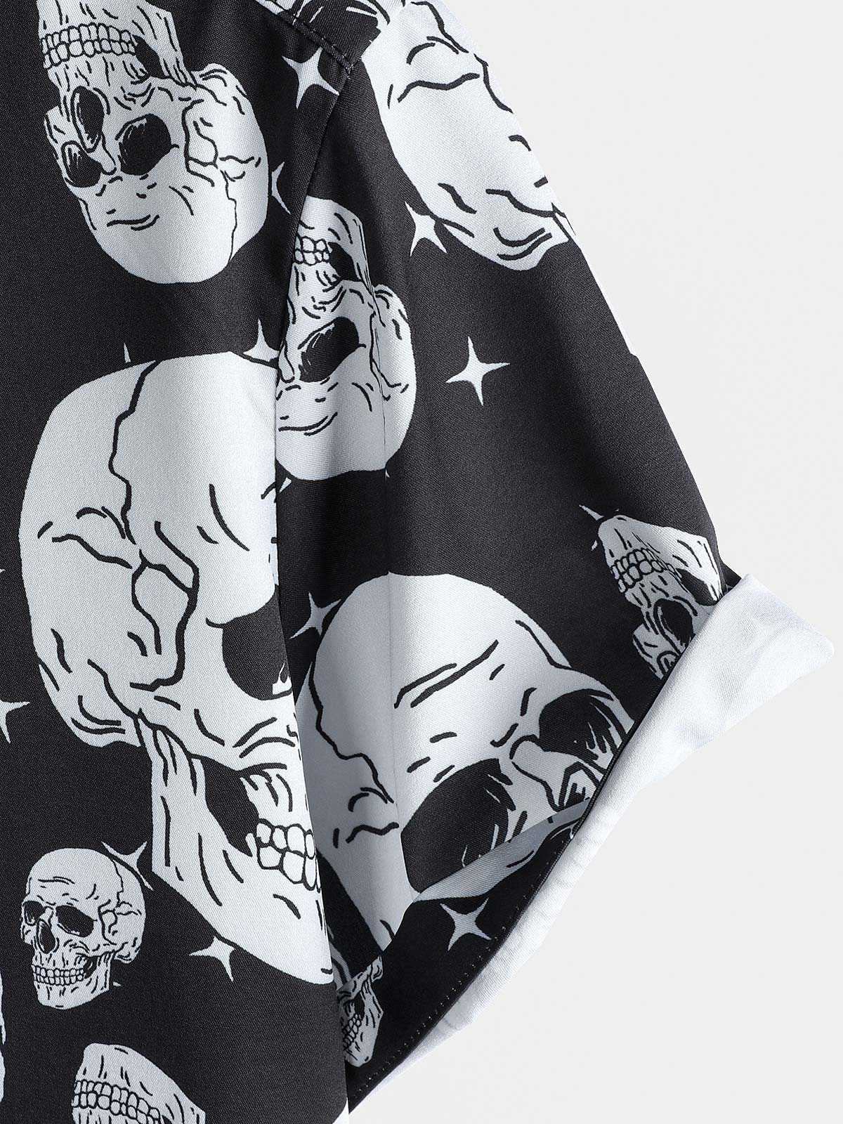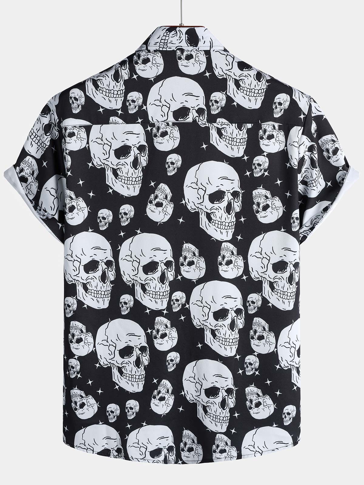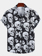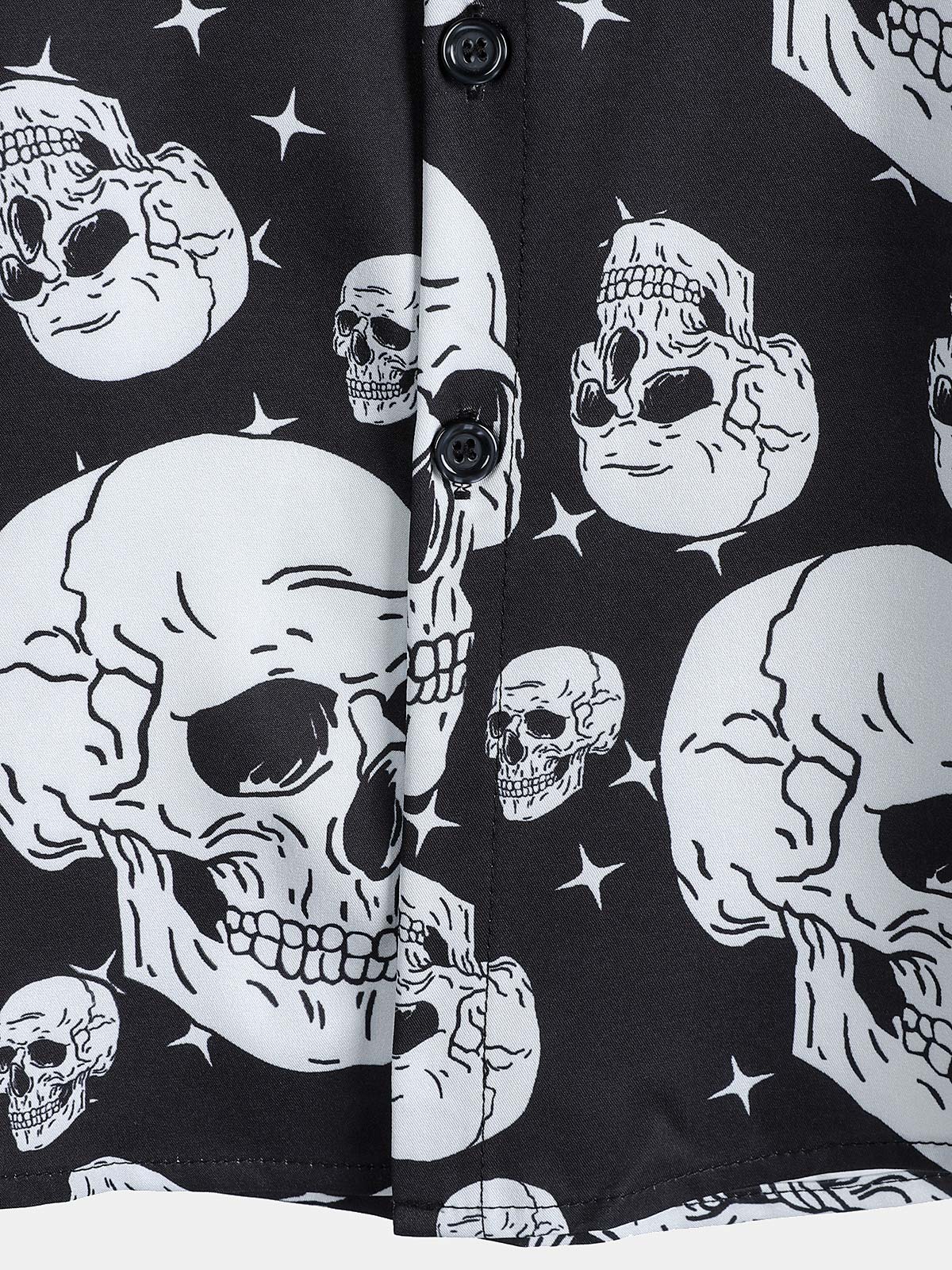 Men's Skull Graphic Button Up Short Sleeve Punk Rock Art Shirt