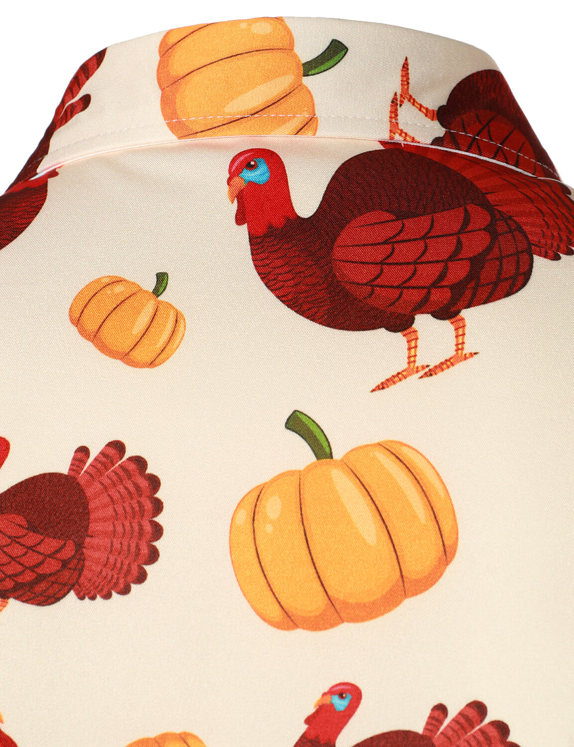 Men's Thanksgiving Holiday Funny Turkey Pumpkin Button Long Sleeve Shirt