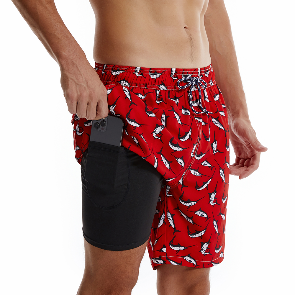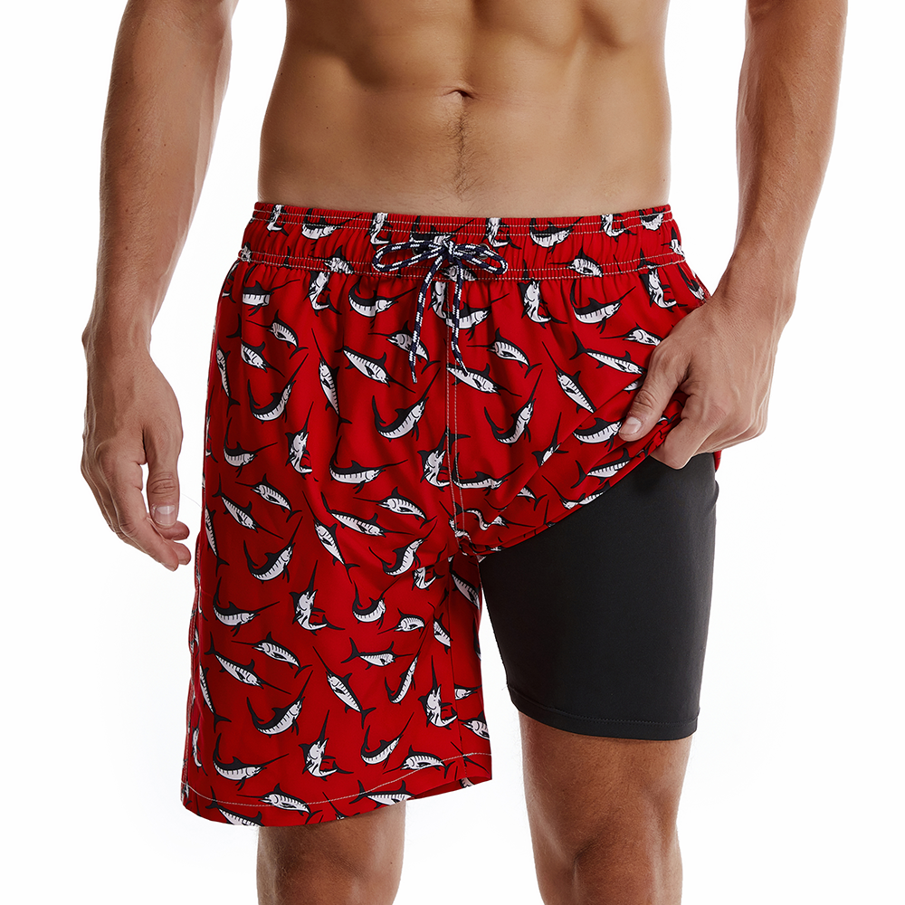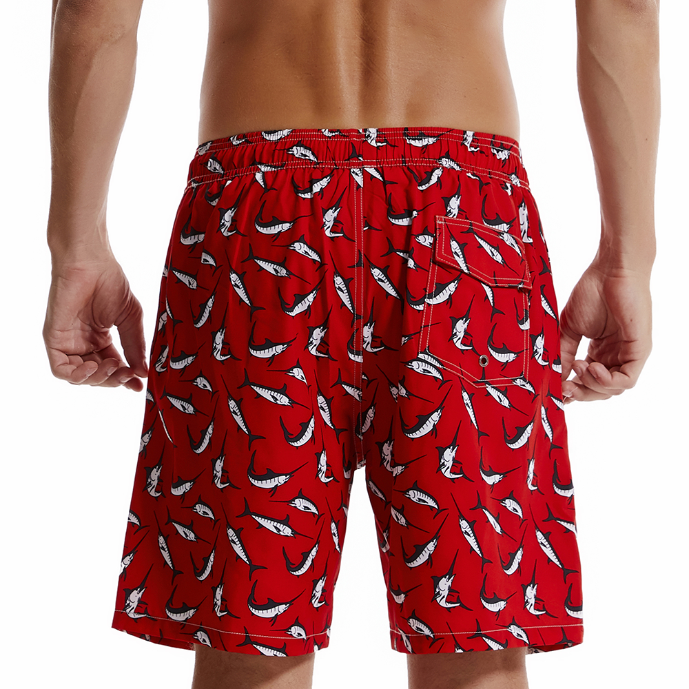Men's Shark Print Red Quick Dry Beach Shorts Swim Trunks