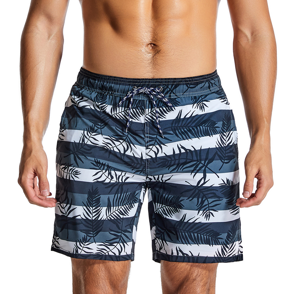 Men's Tropical Leaves And Striped Quick Dry Beach Shorts Swimming Trunks
