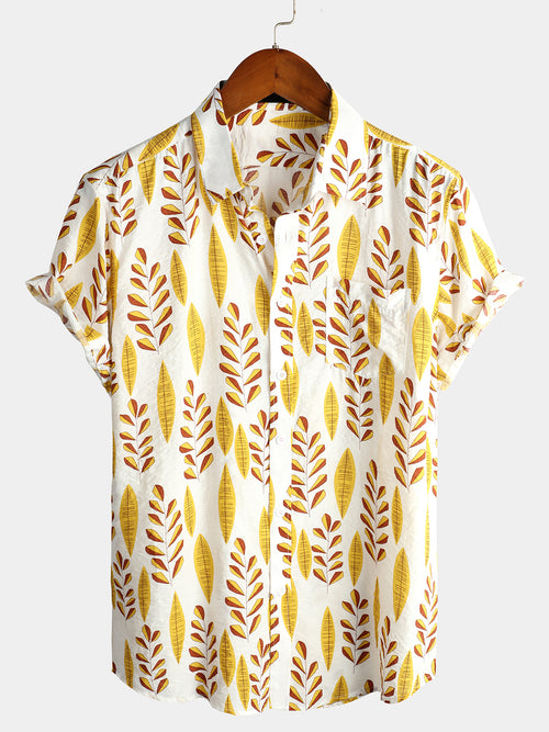 Men's Floral Cotton Tropical Hawaiian Plant Shirt