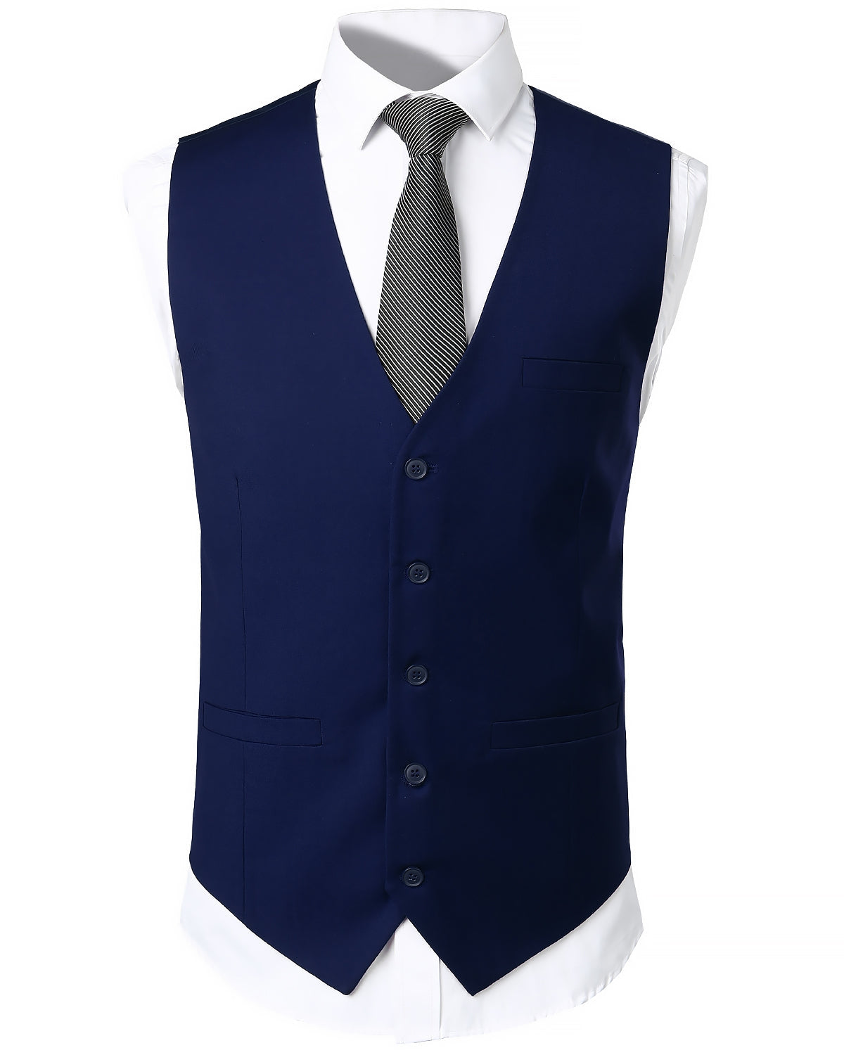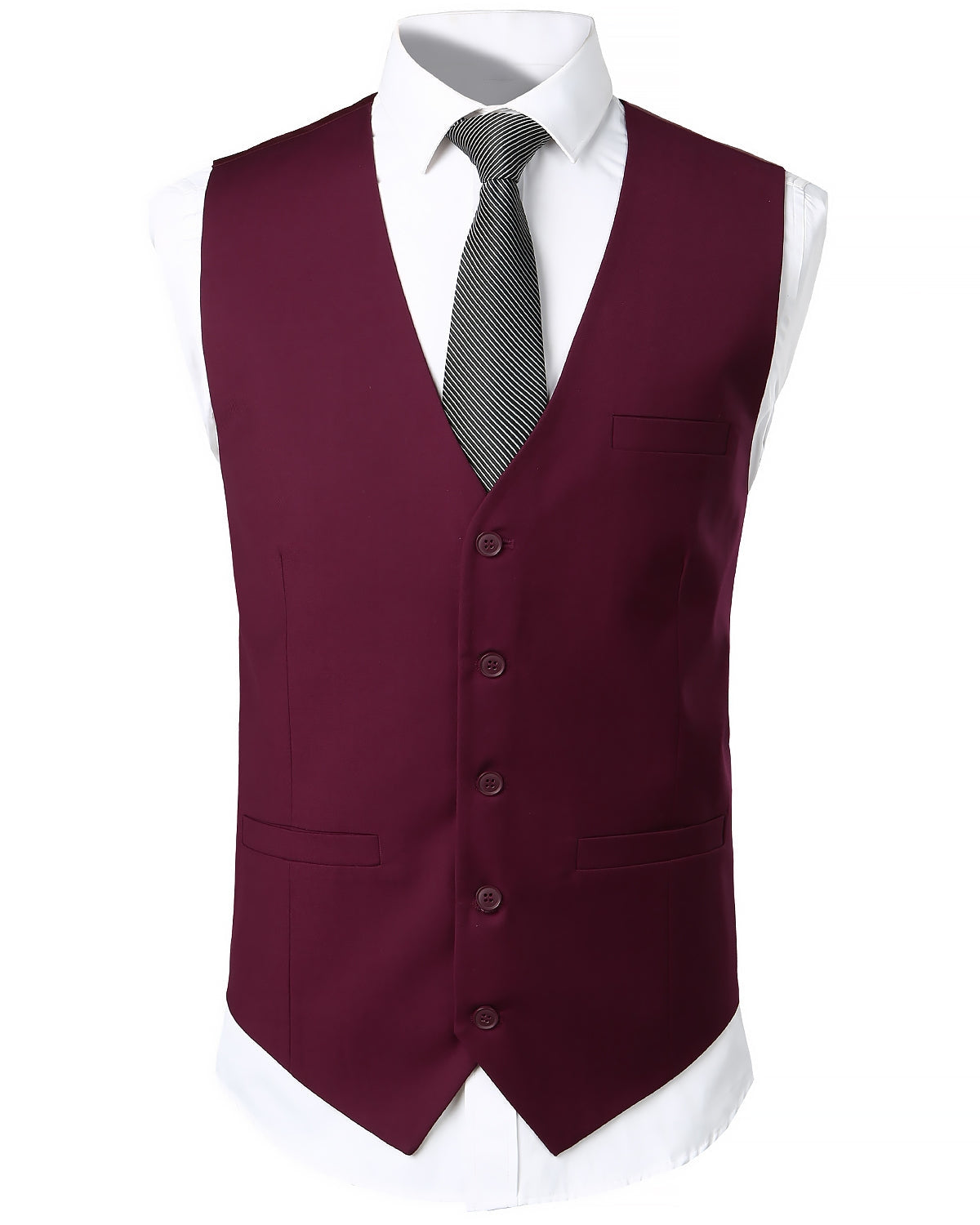 Mens V-Neck Formal Suit Vest Slim Fit Dress Vest Wedding Waistcoat for Tuxedo