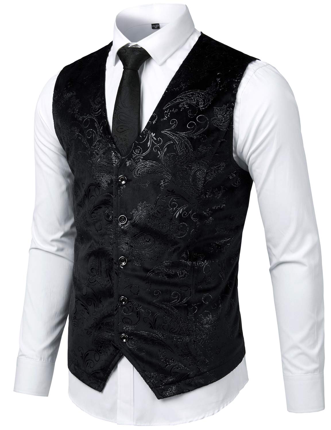 Mens Hipster Metallic Paisley Printed Single Breasted V-Neck Suit Vest/Tuxedo Waistcoat