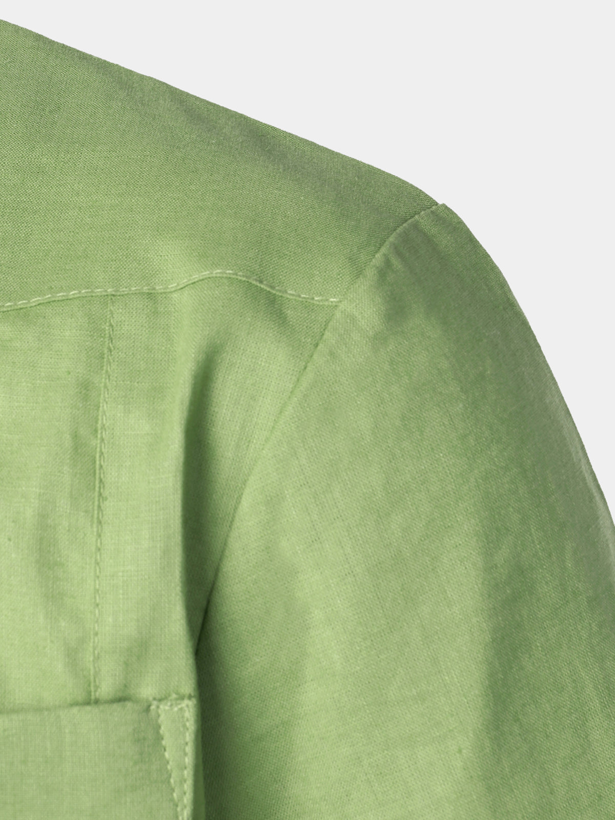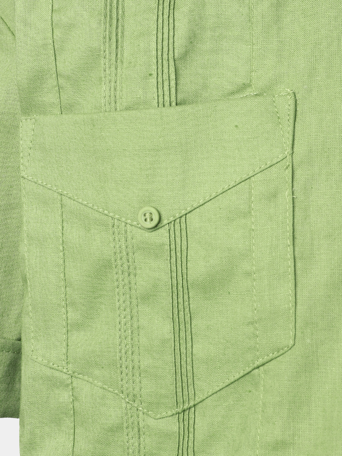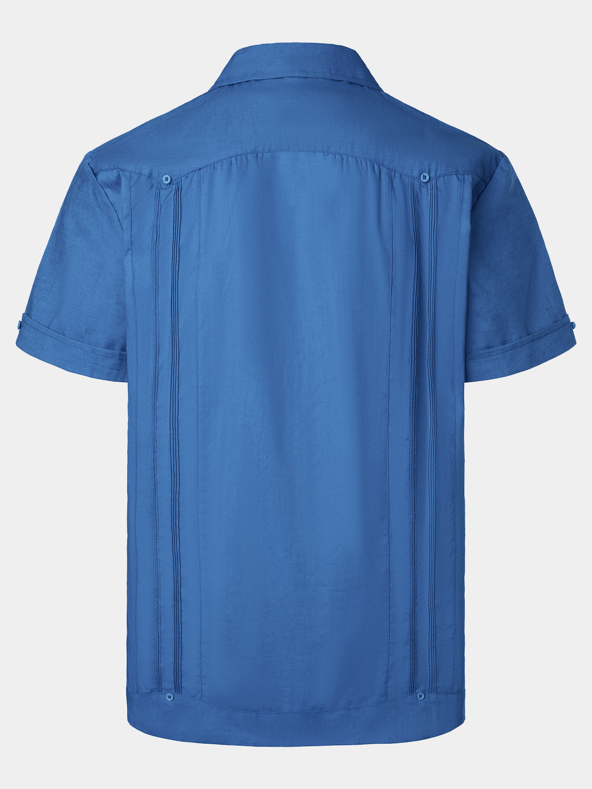 Men’s Pocket Linen Cuban Guayabera Summer Camp Button Up Short Sleeve Casual Shirt