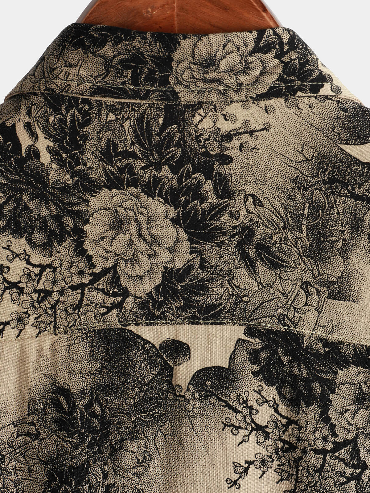 Men's Bamboo Floral Vintage Summer Hawaiian Rayon Holiday Button Up Short Sleeve Shirt