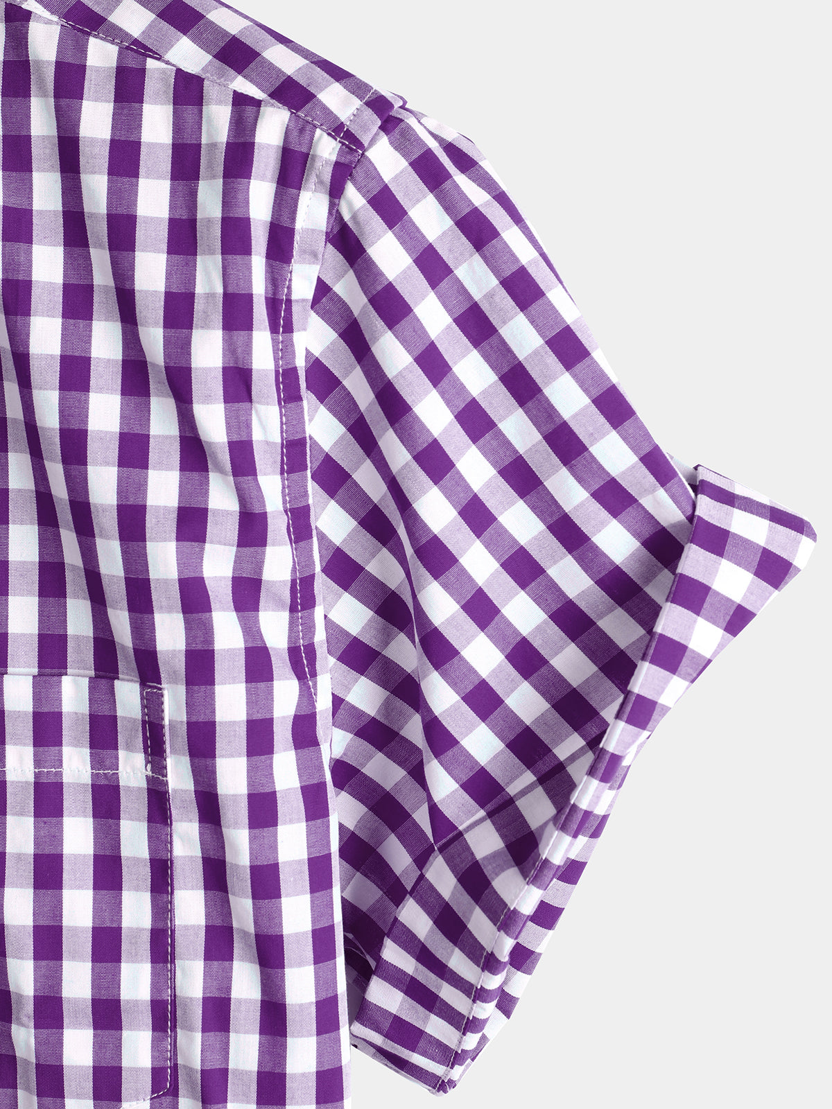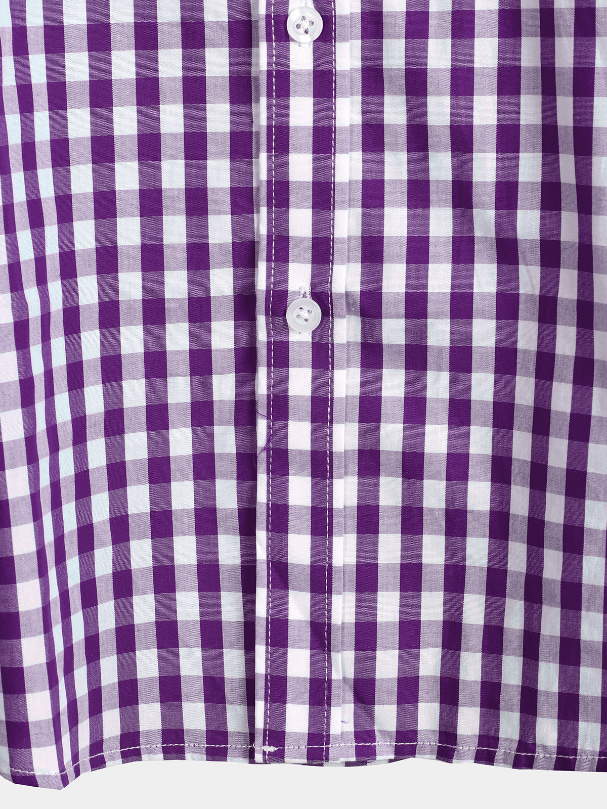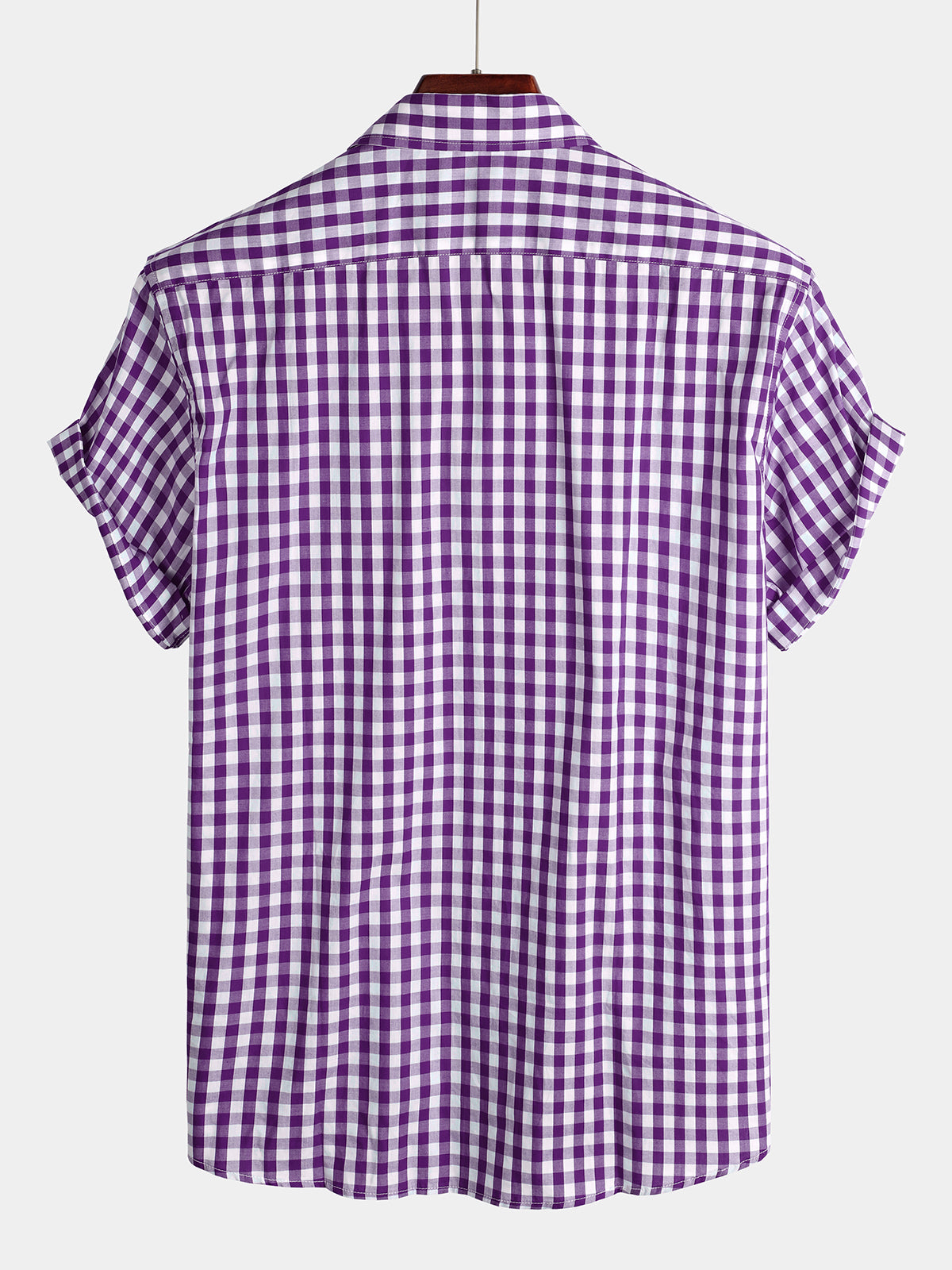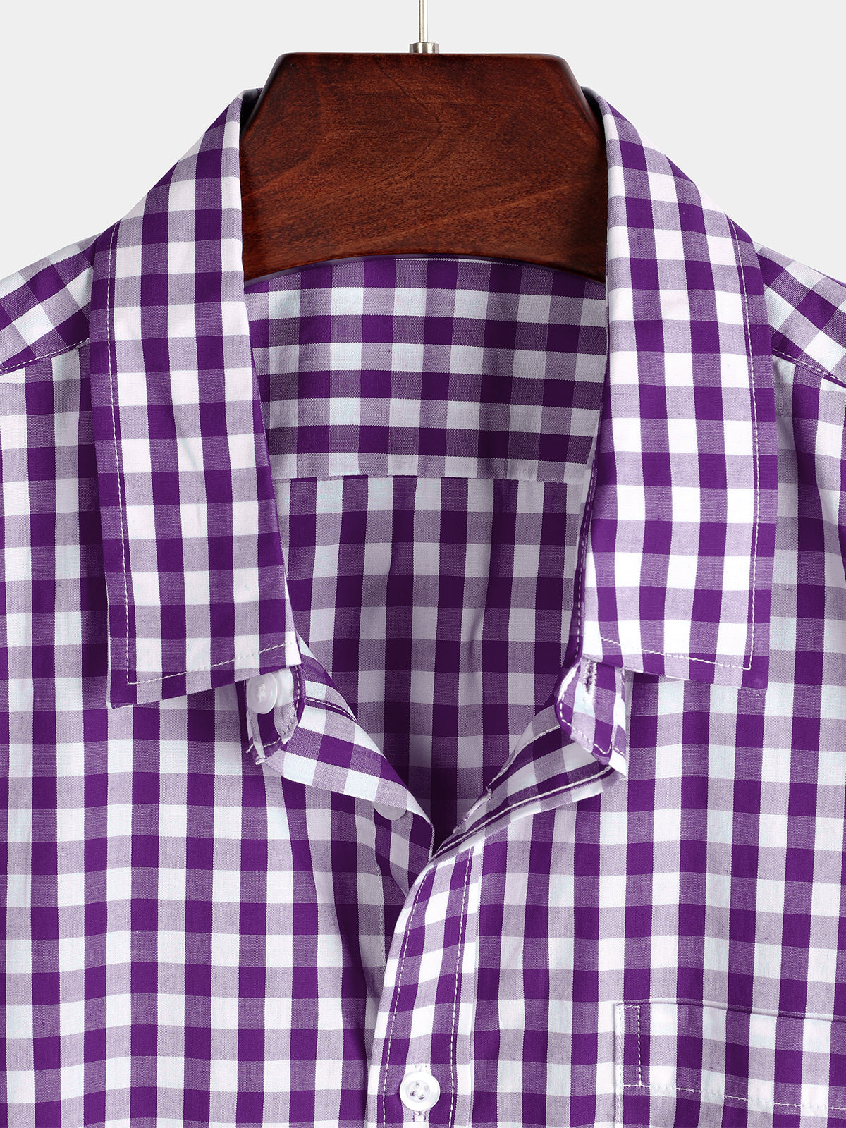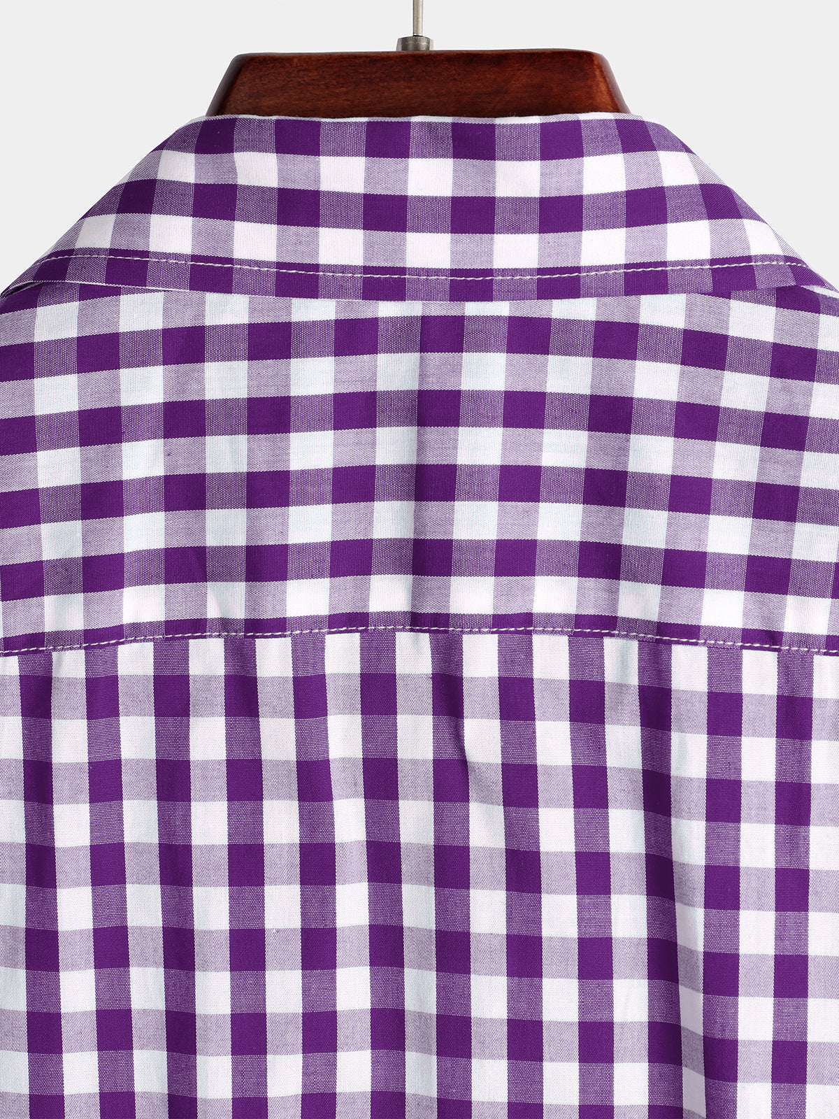 Men's Solid Color Plaid Cotton Casual Pocket Shirt