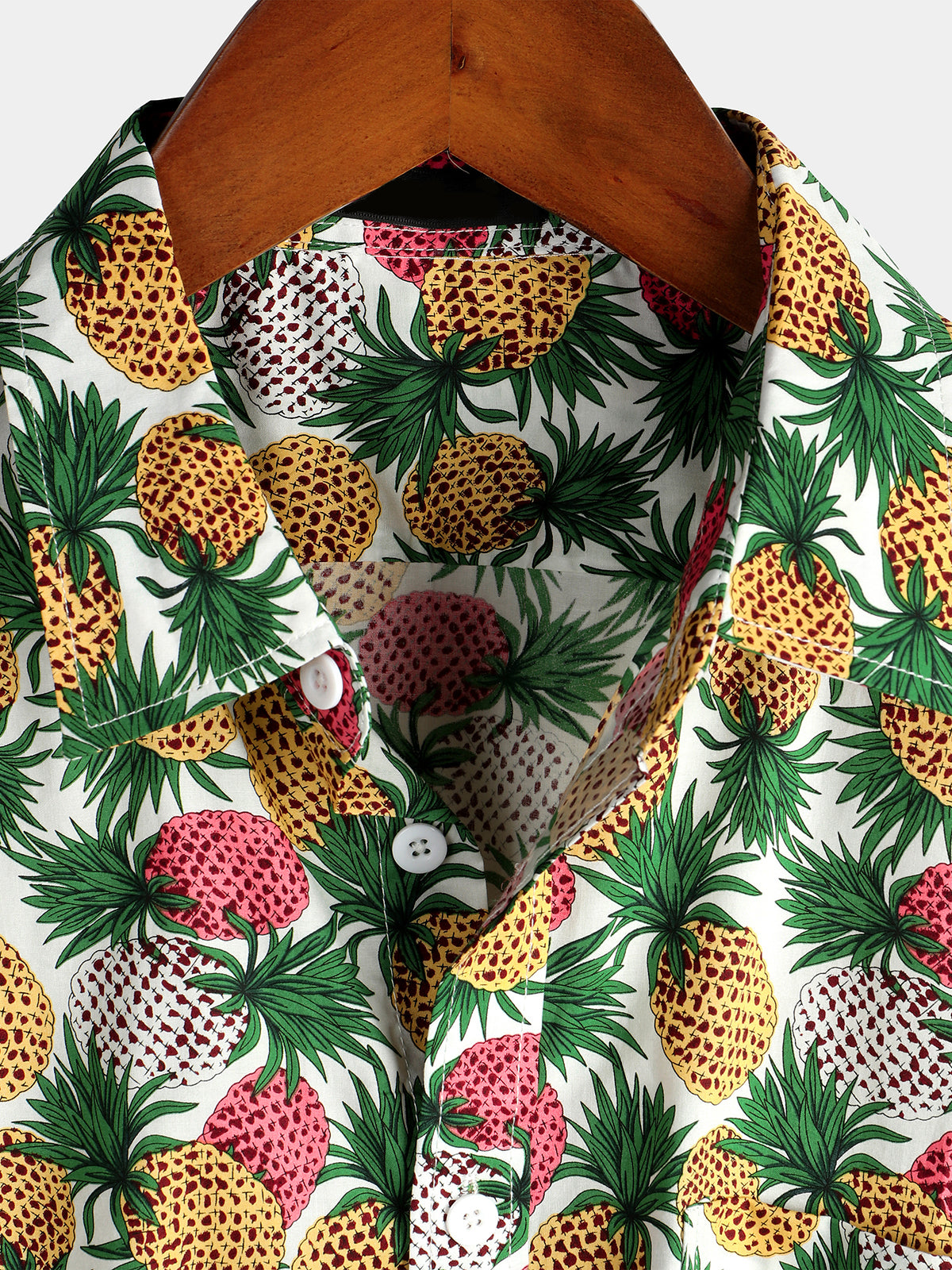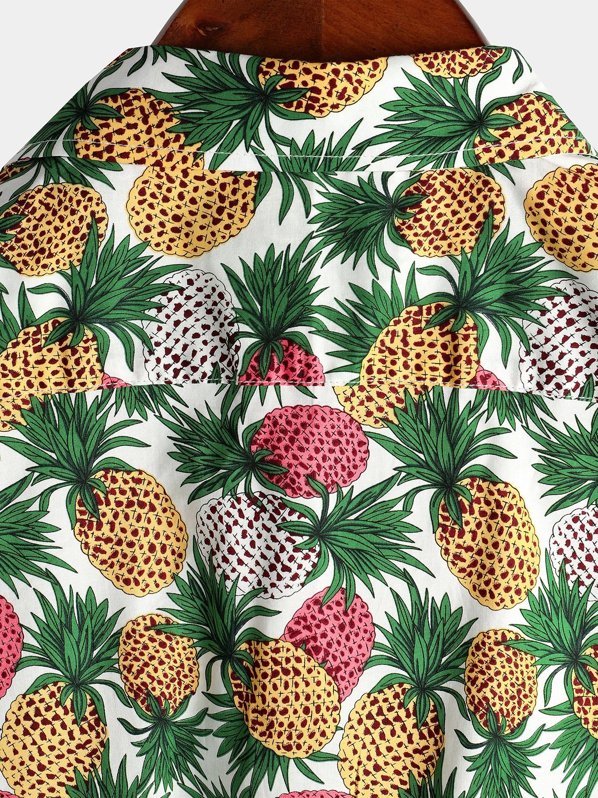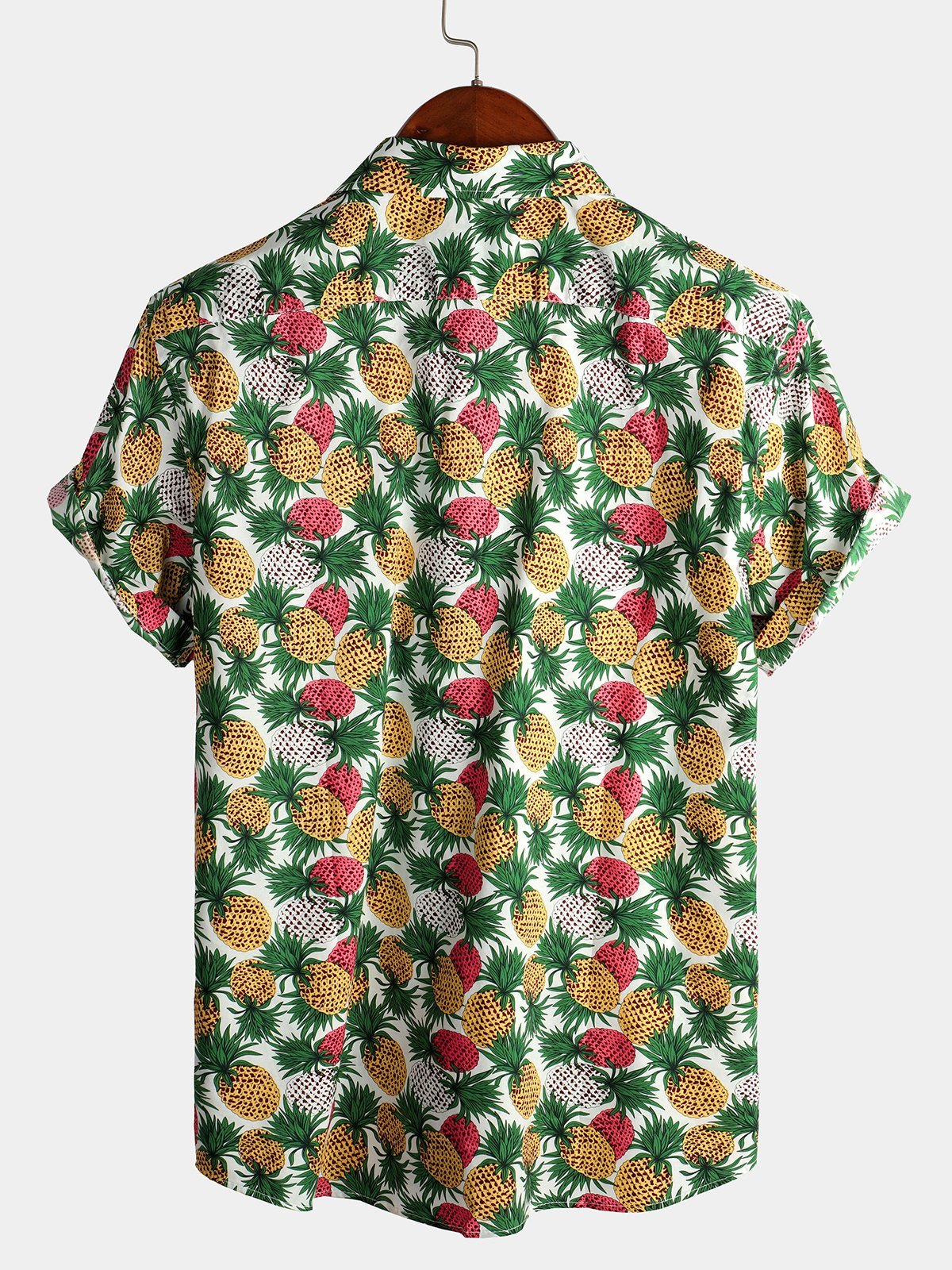 Men's Holiday Tropical Pineapple Pocket Cotton Short Sleeve Shirt