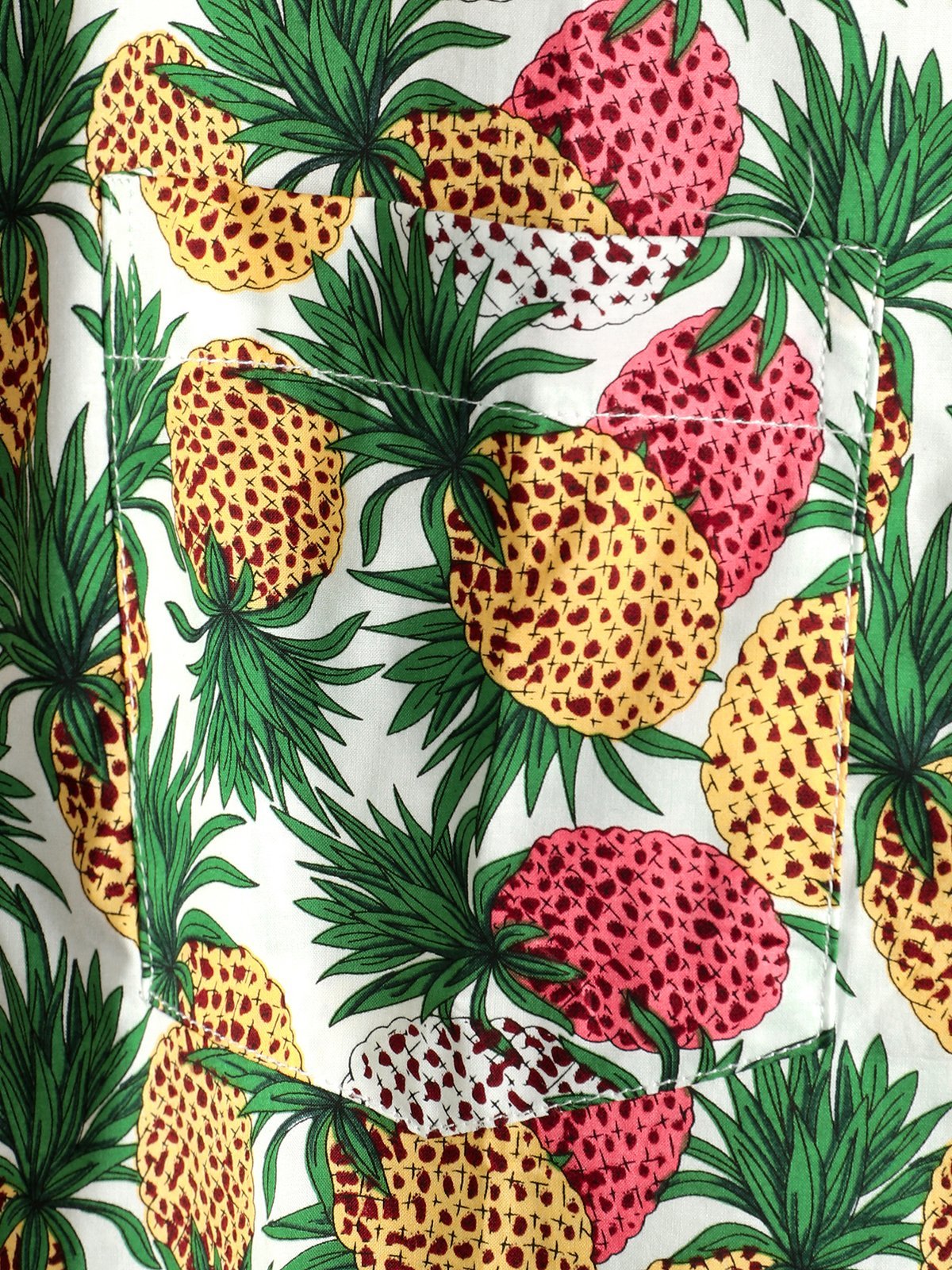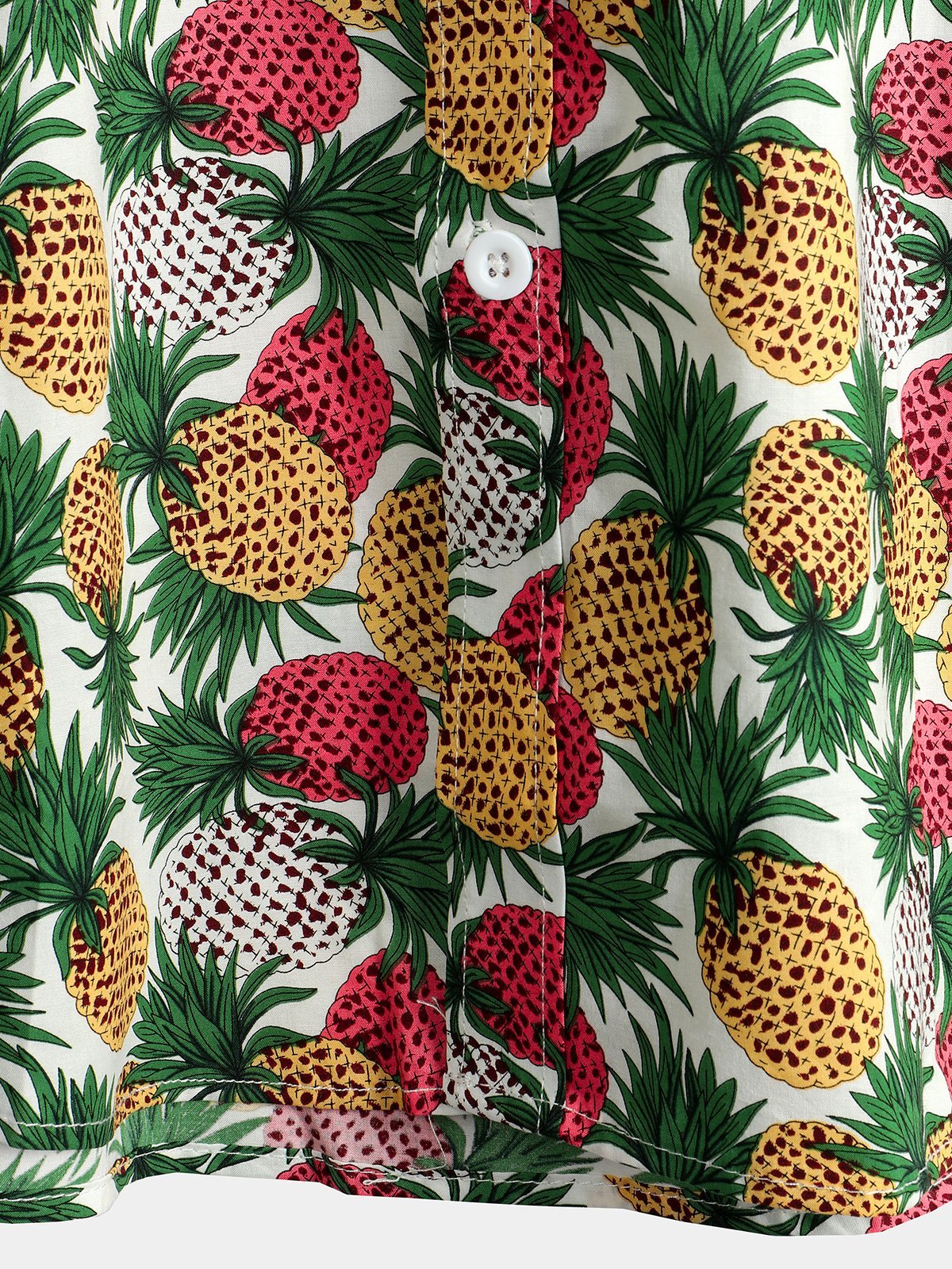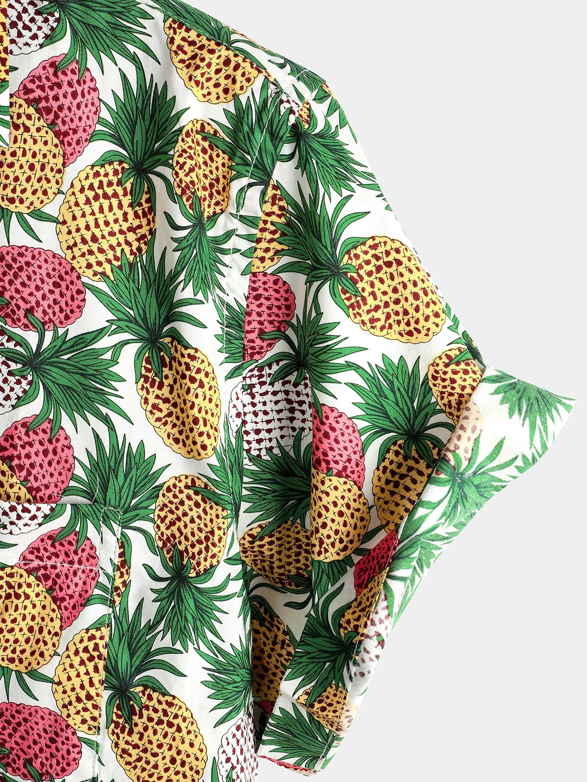Men's Holiday Tropical Pineapple Pocket Cotton Short Sleeve Shirt
