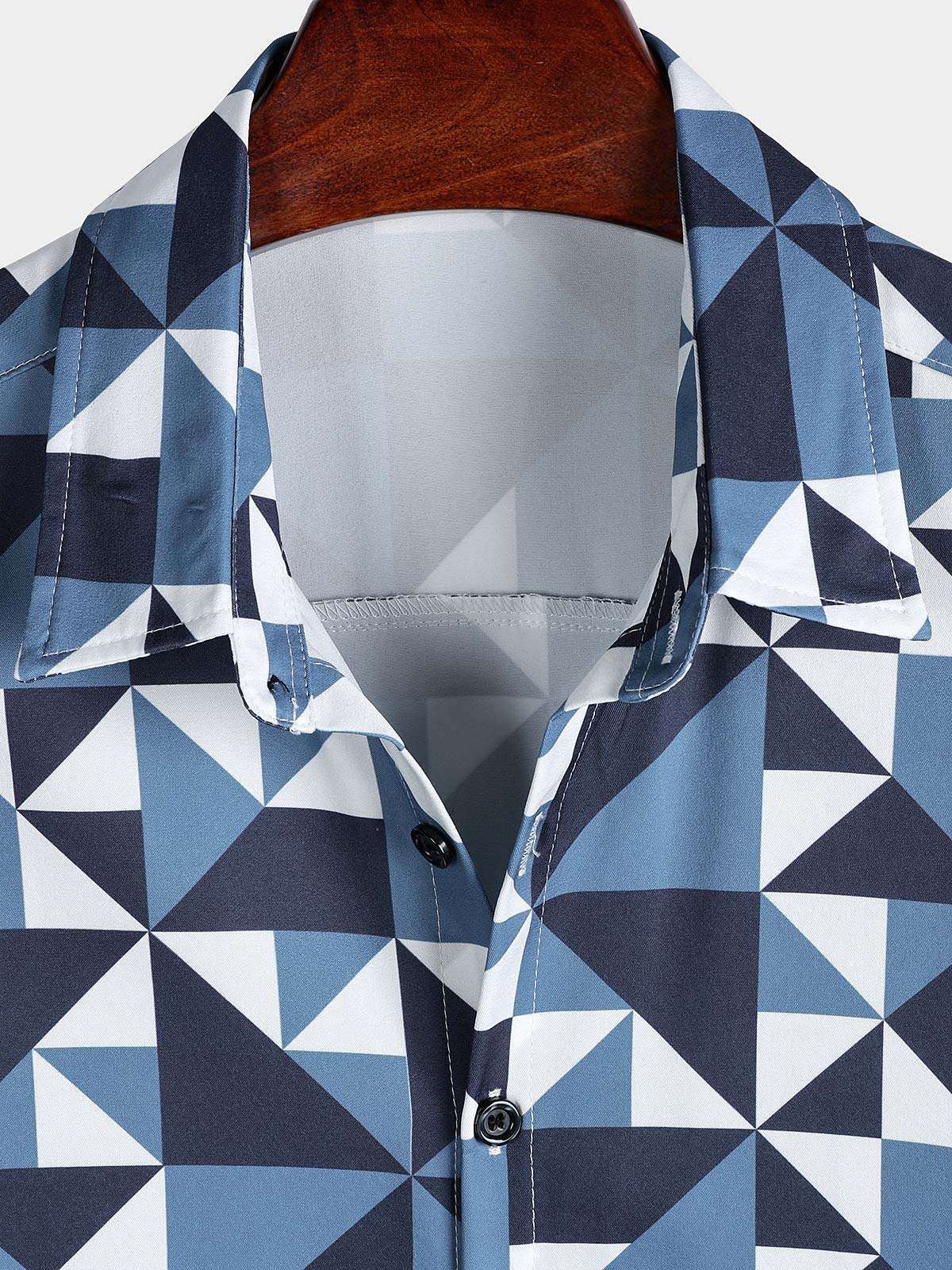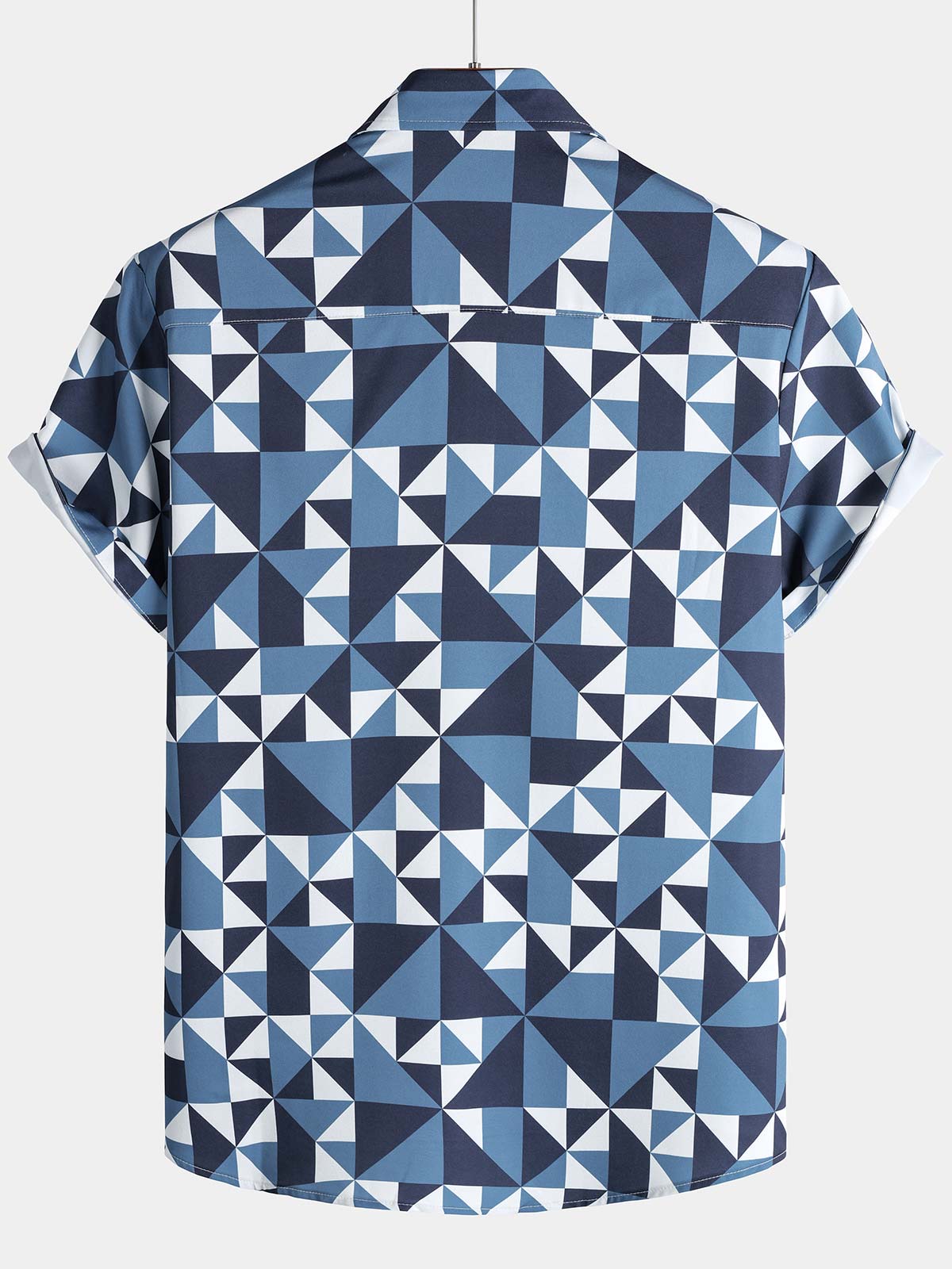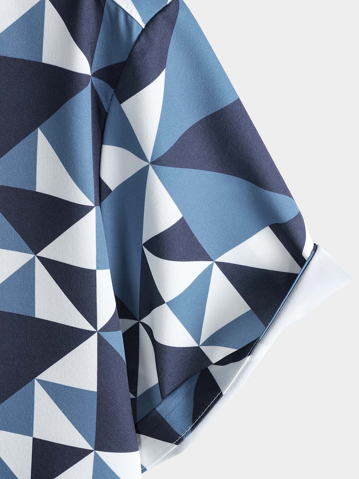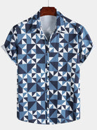 Men's Navy Blue Abstract Graphic Island Cruise Summer Holiday Resort Shirt