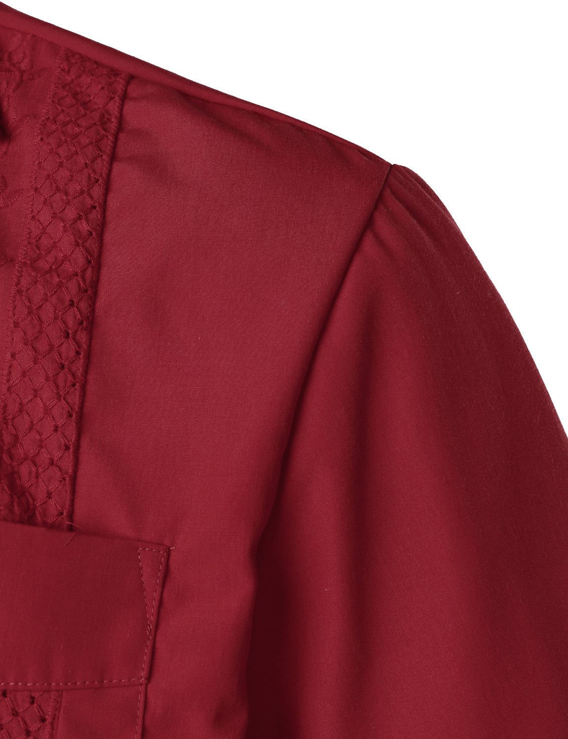 Men's Red Short Sleeve Pocket Cuban Guayabera Shirt