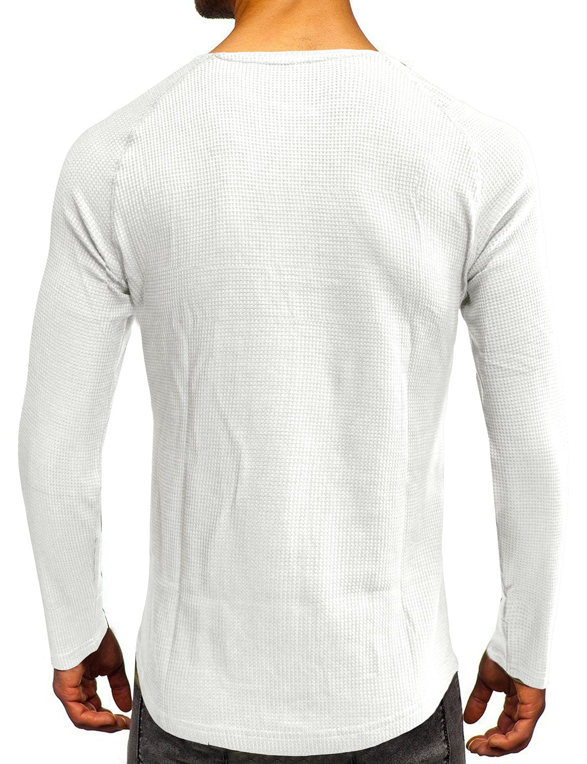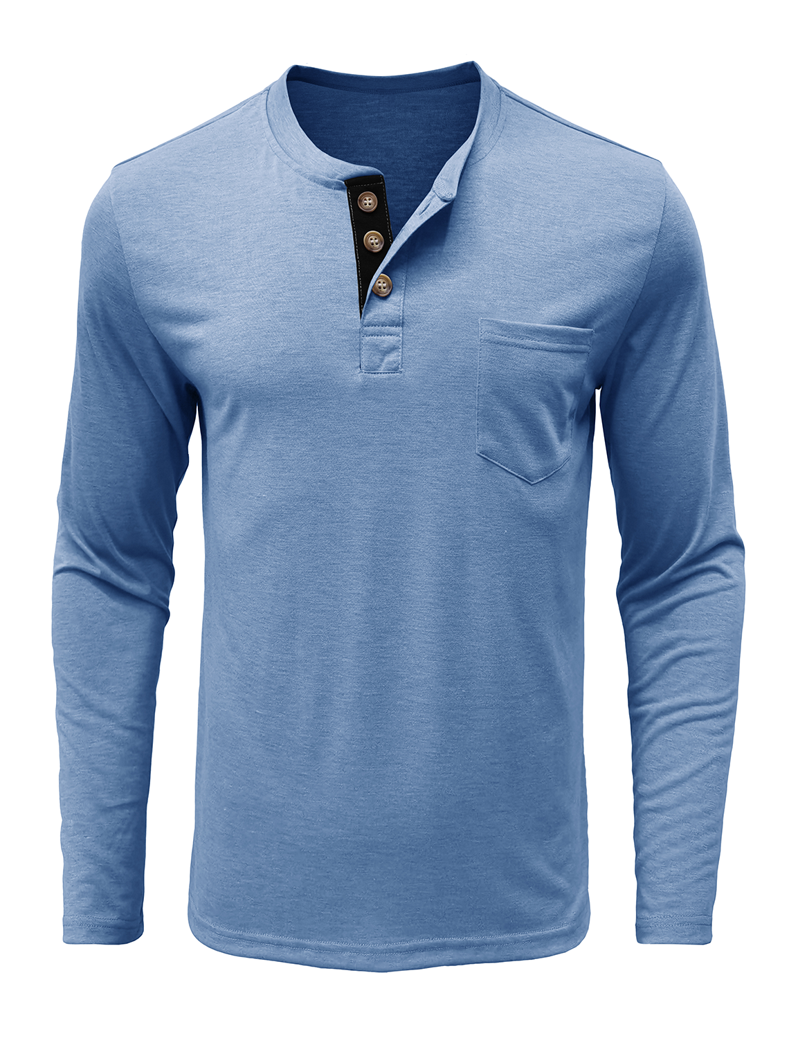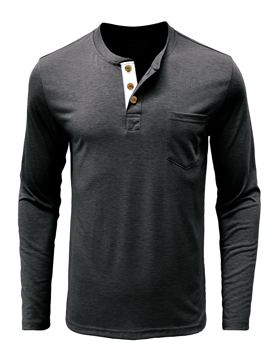 Men's Solid Color Cotton Casual Henry Collar Pocket Long Sleeve T-Shirt