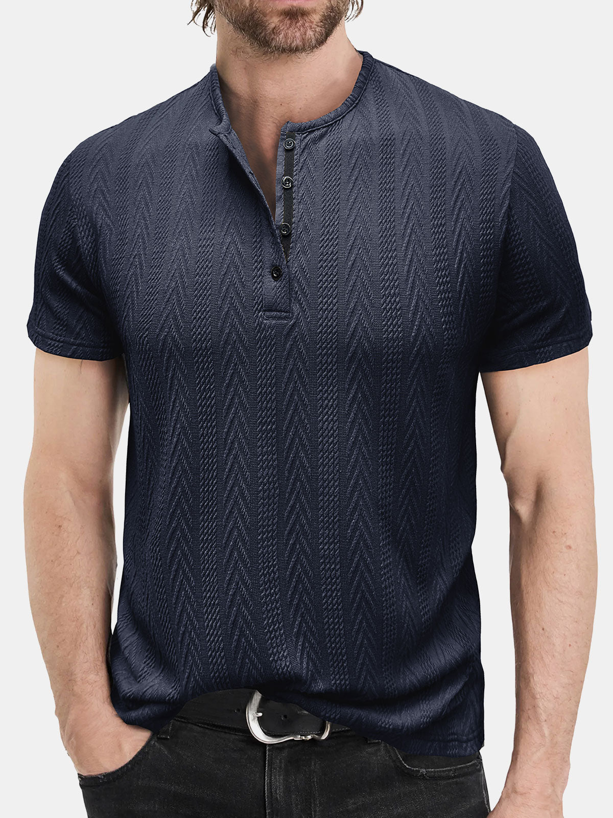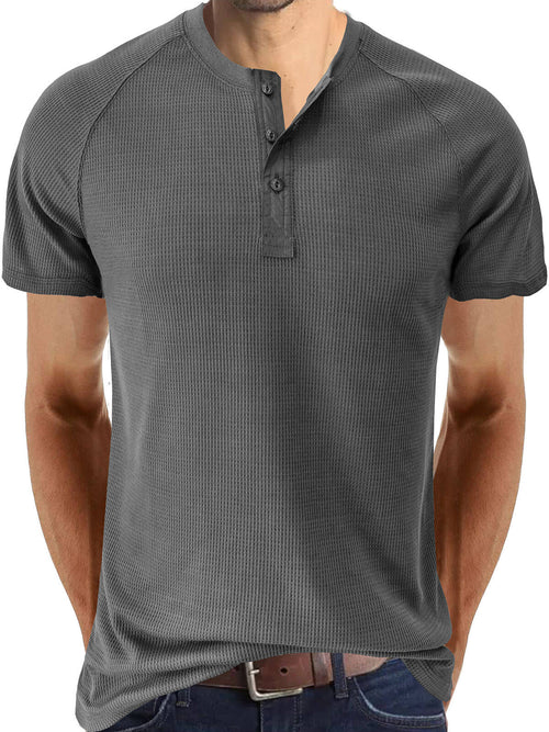 Men's Casual Solid Color Short Sleeve Henley T-shirt