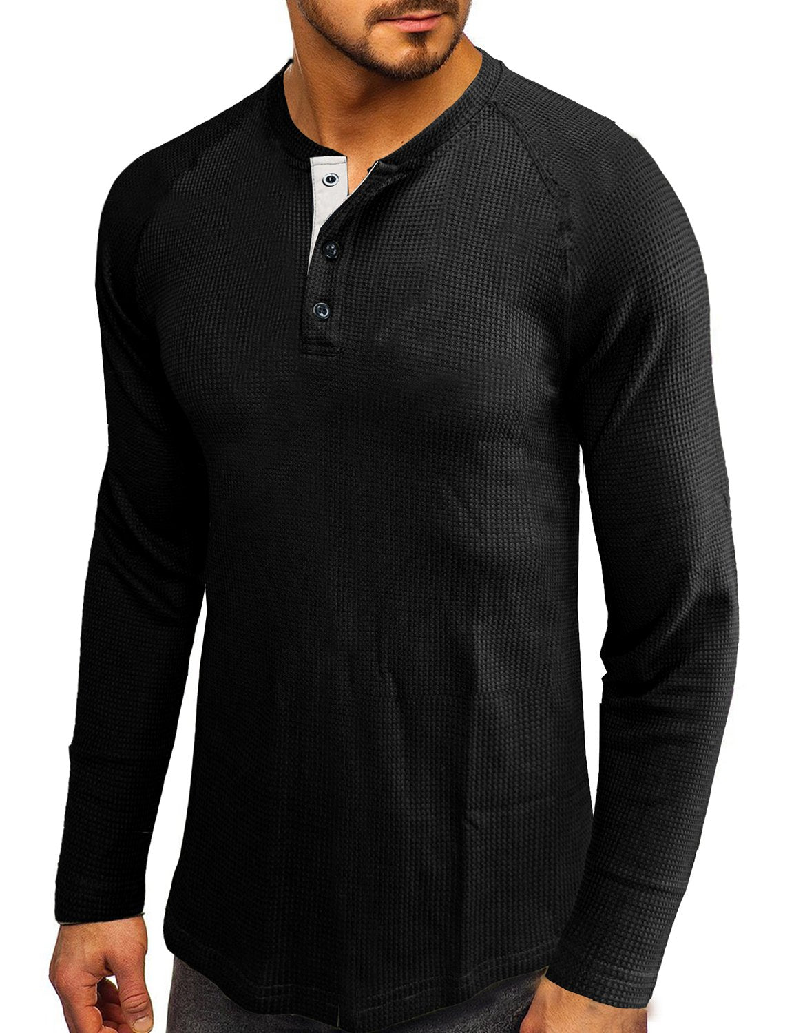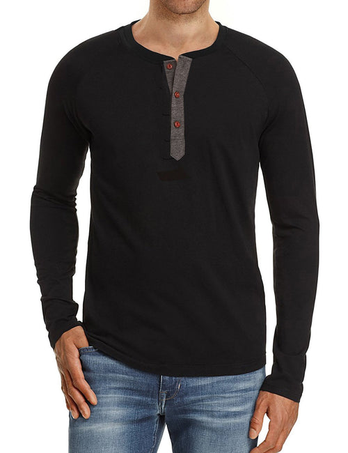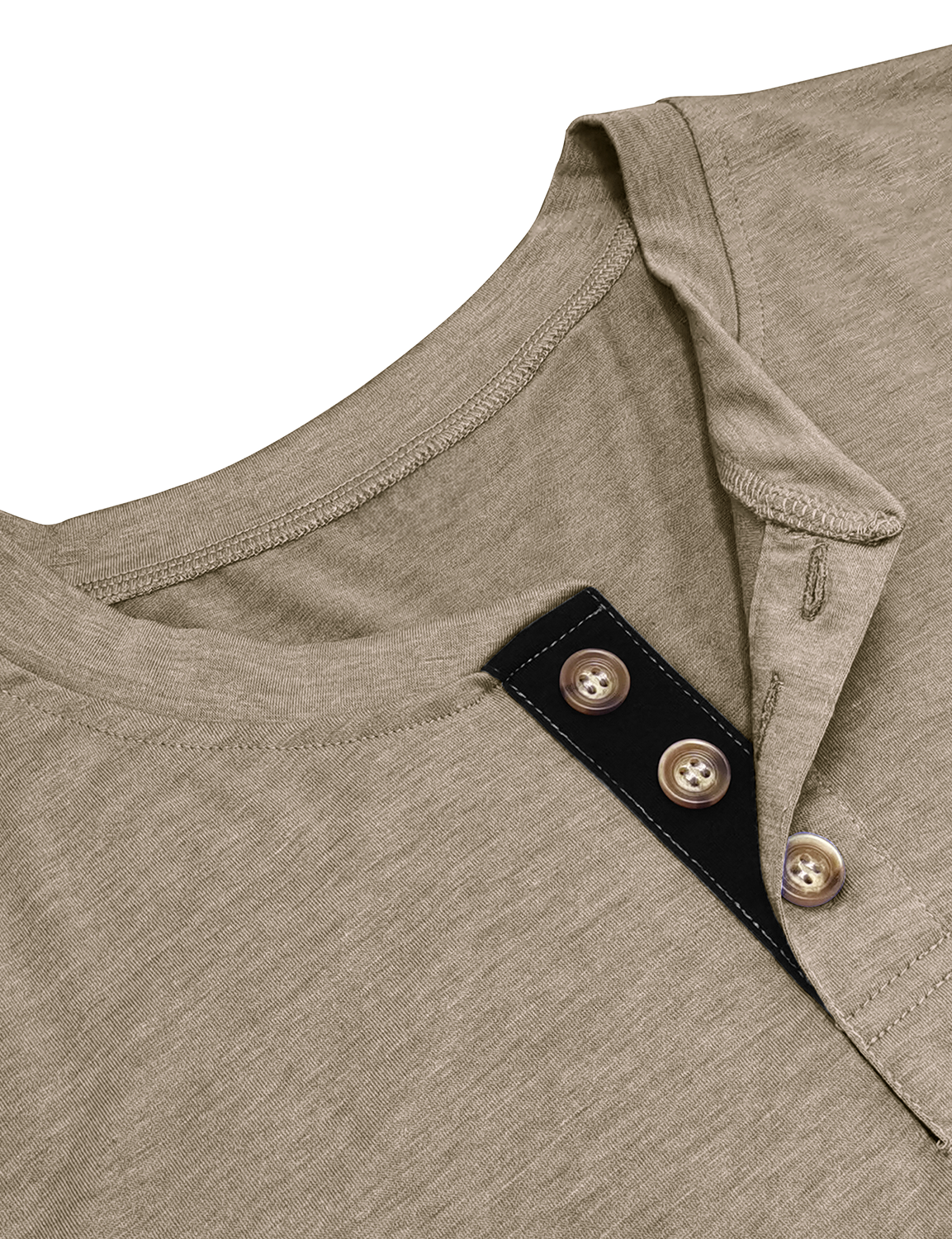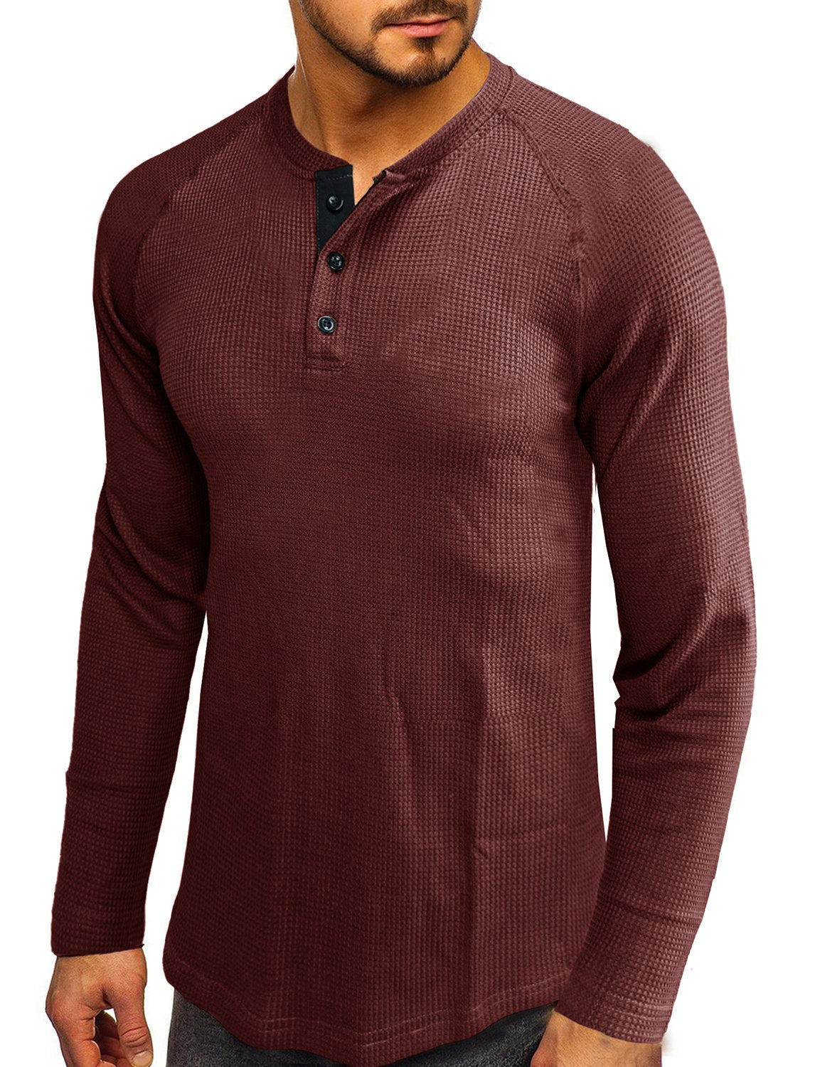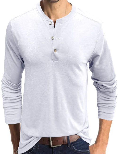 Men's Henley Collar Casual Tee Solid Color T-Shirt