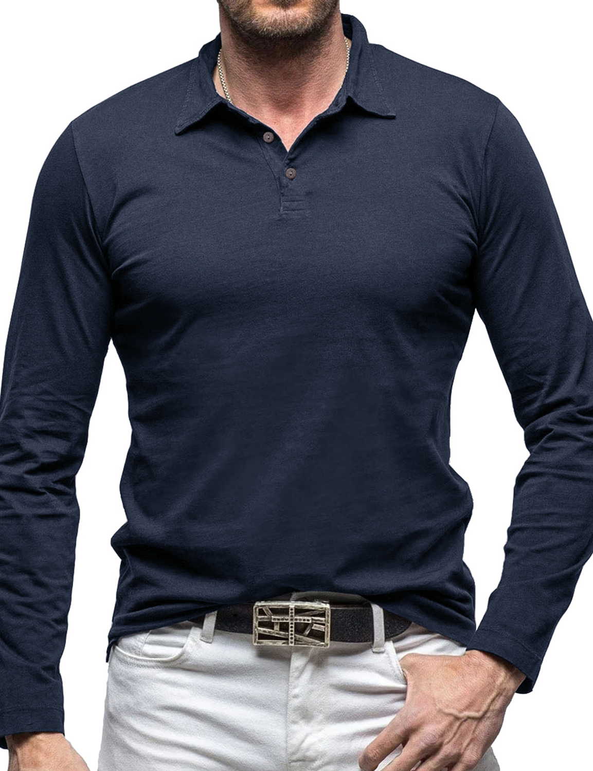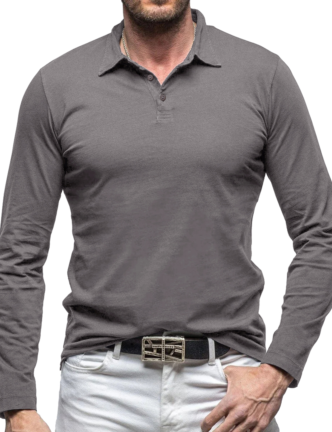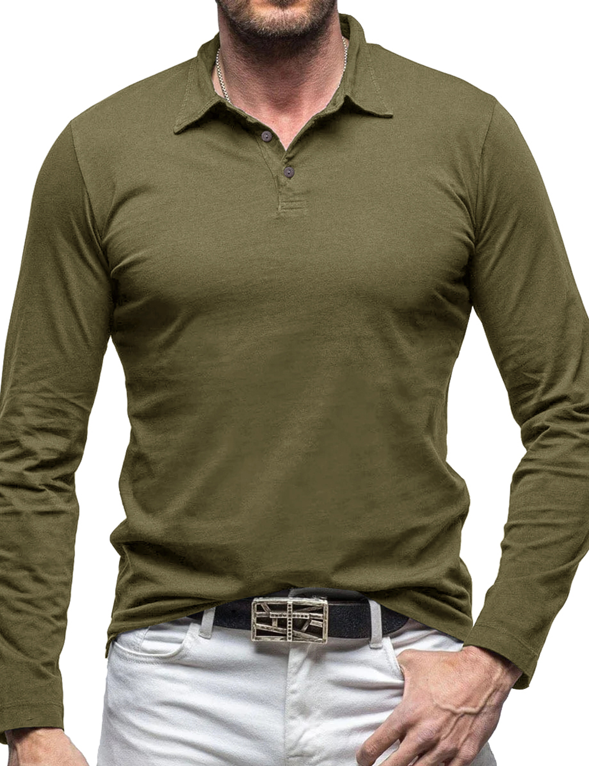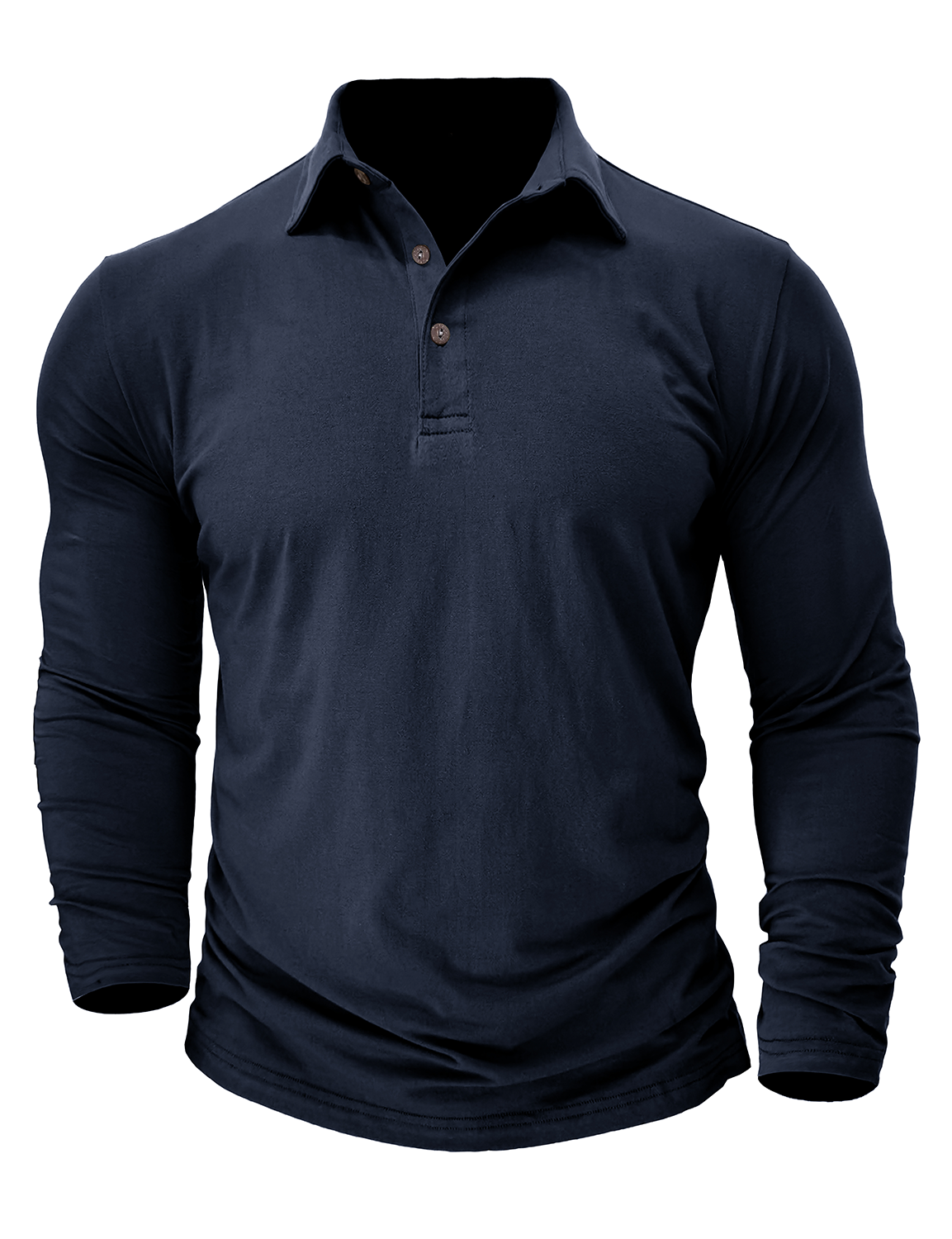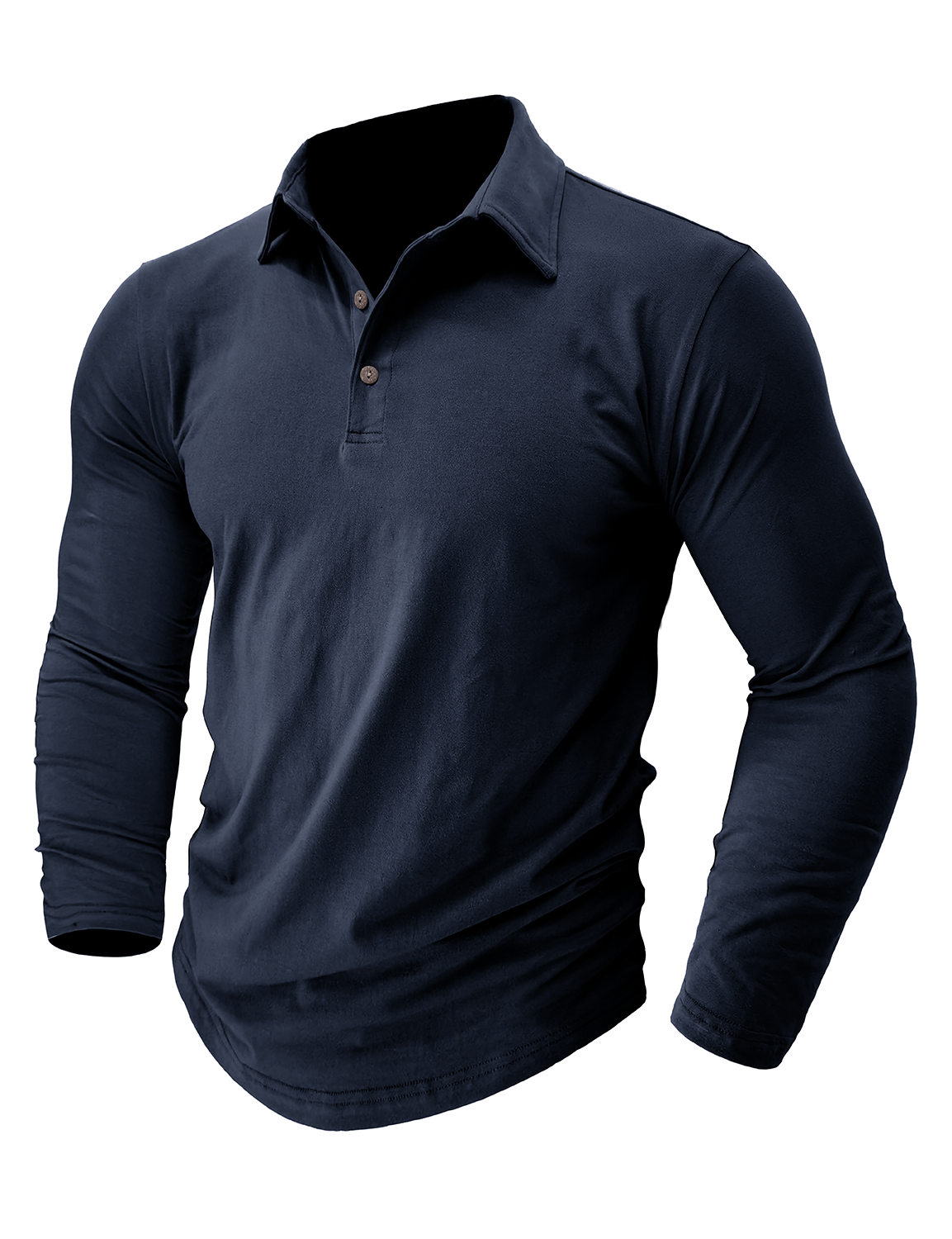 Men's Cotton Casual Solid Color Pocket Long Polo Shirt