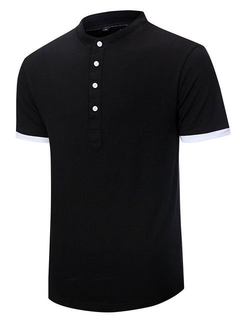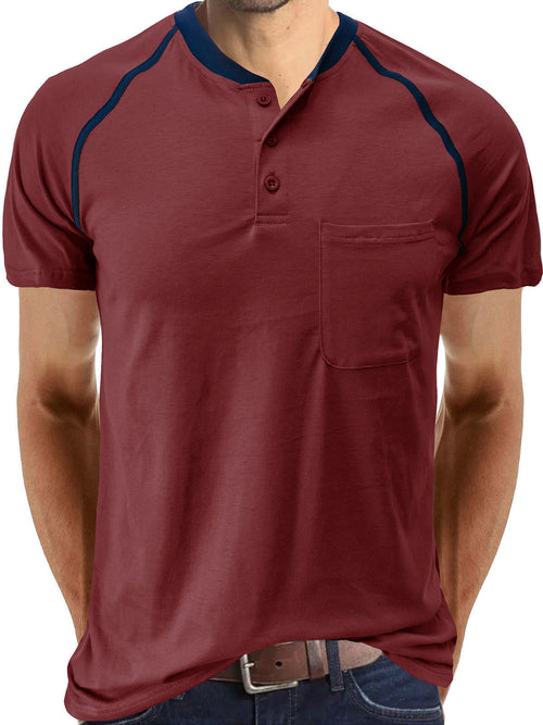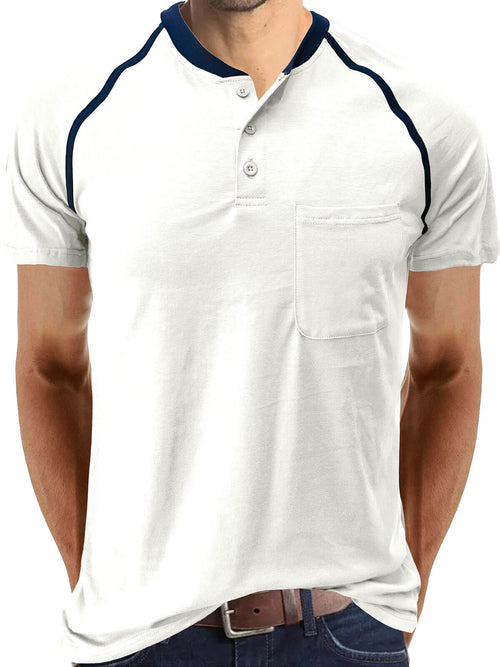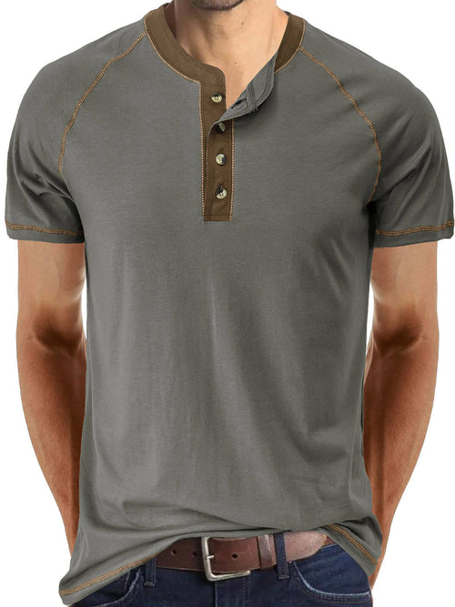 Men's Casual Henley Two-tone Short Sleeve T-Shirt
