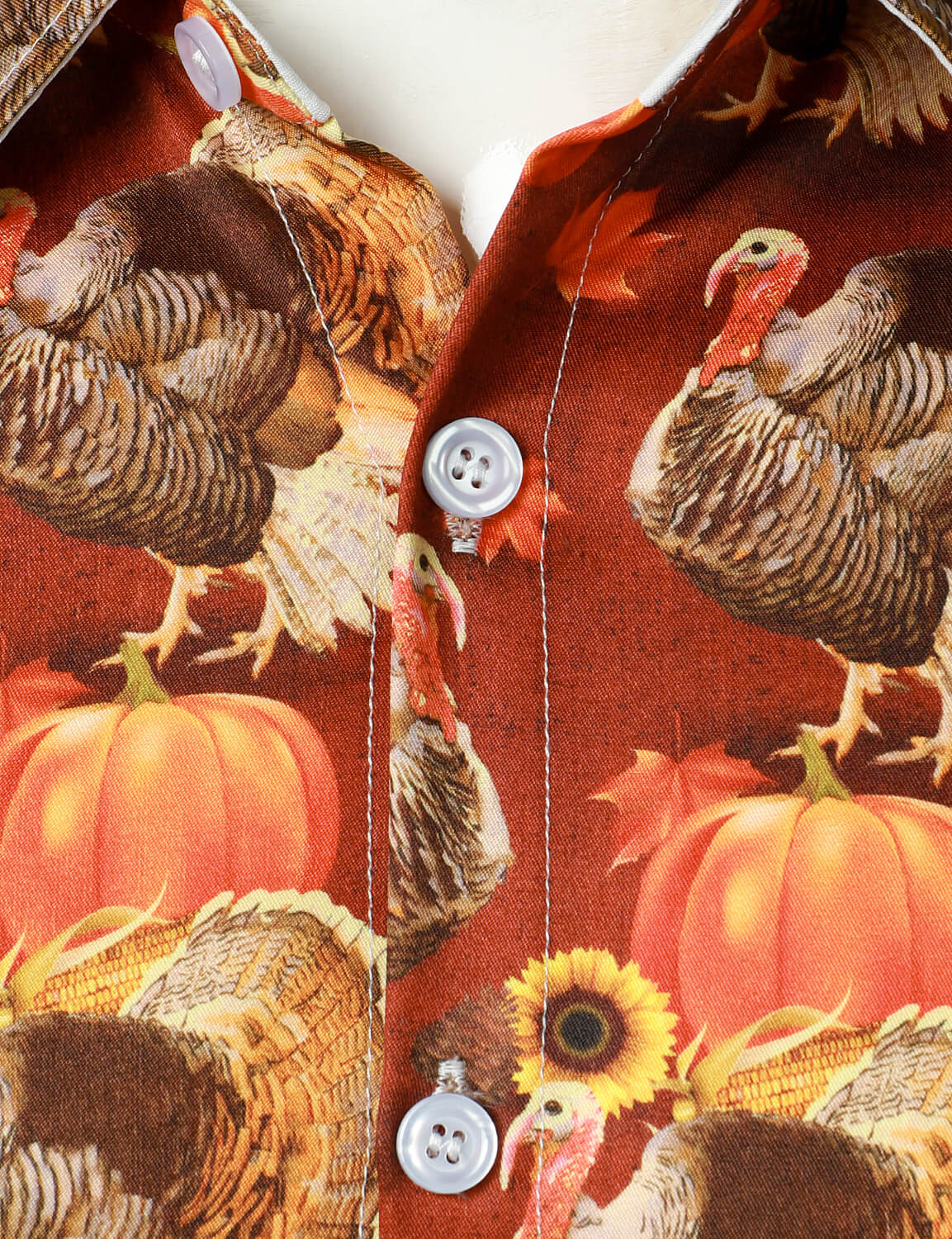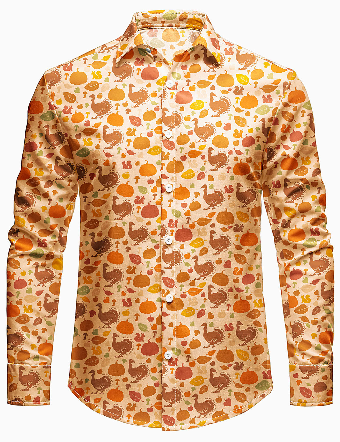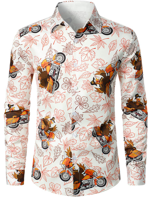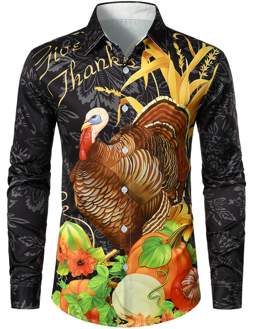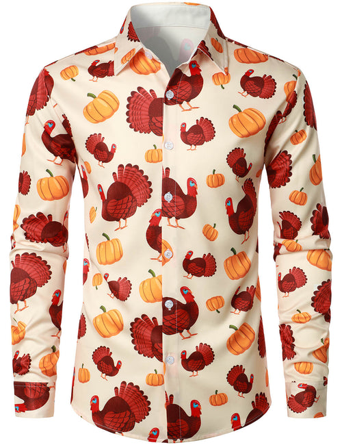 Men's Thanksgiving Holiday Funny Turkey Pumpkin Button Long Sleeve Shirt